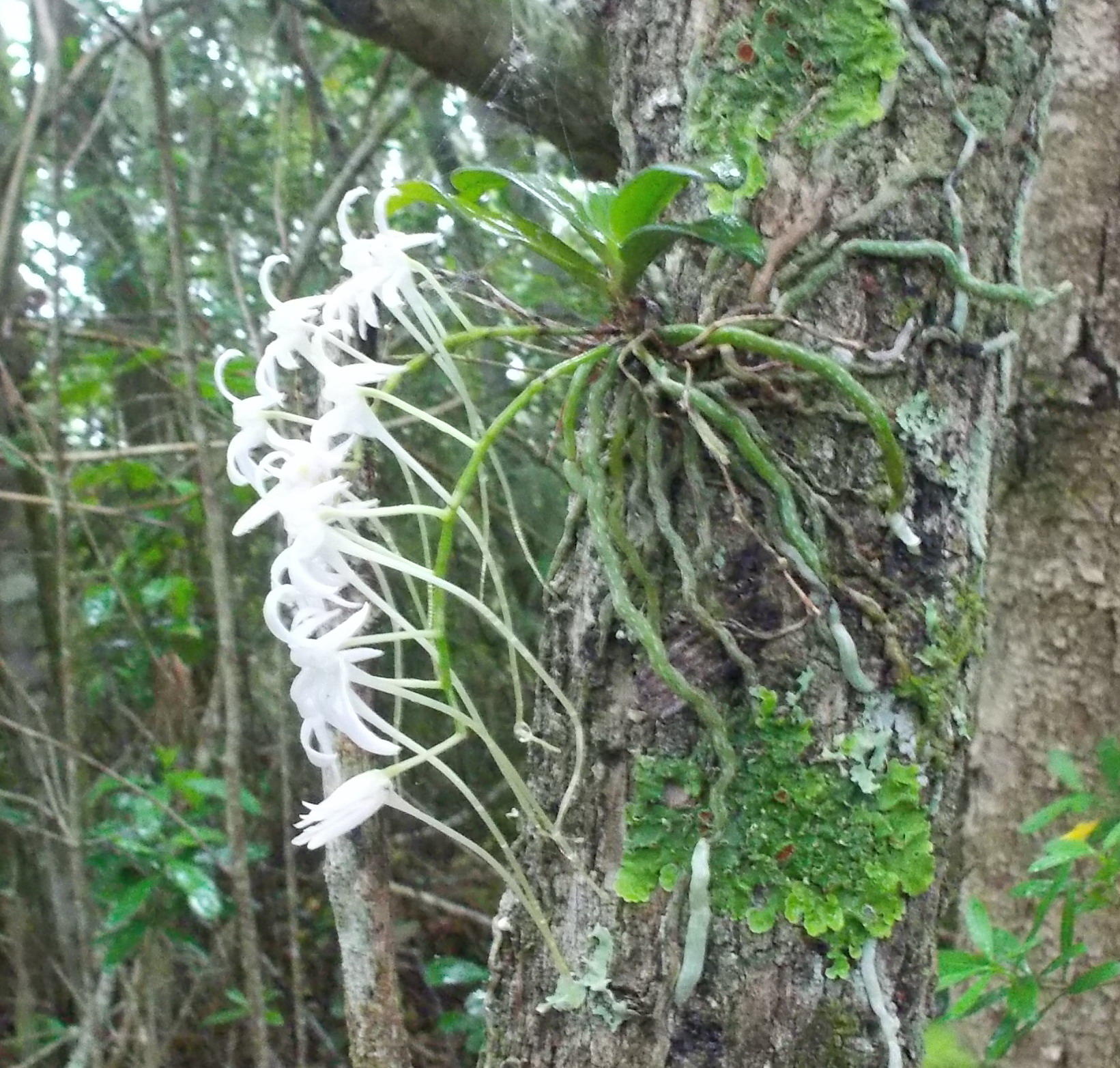 General notes: Edge of streamside forest. White. Epiphyte. On Euphorhia trangularis and various shrubs.
