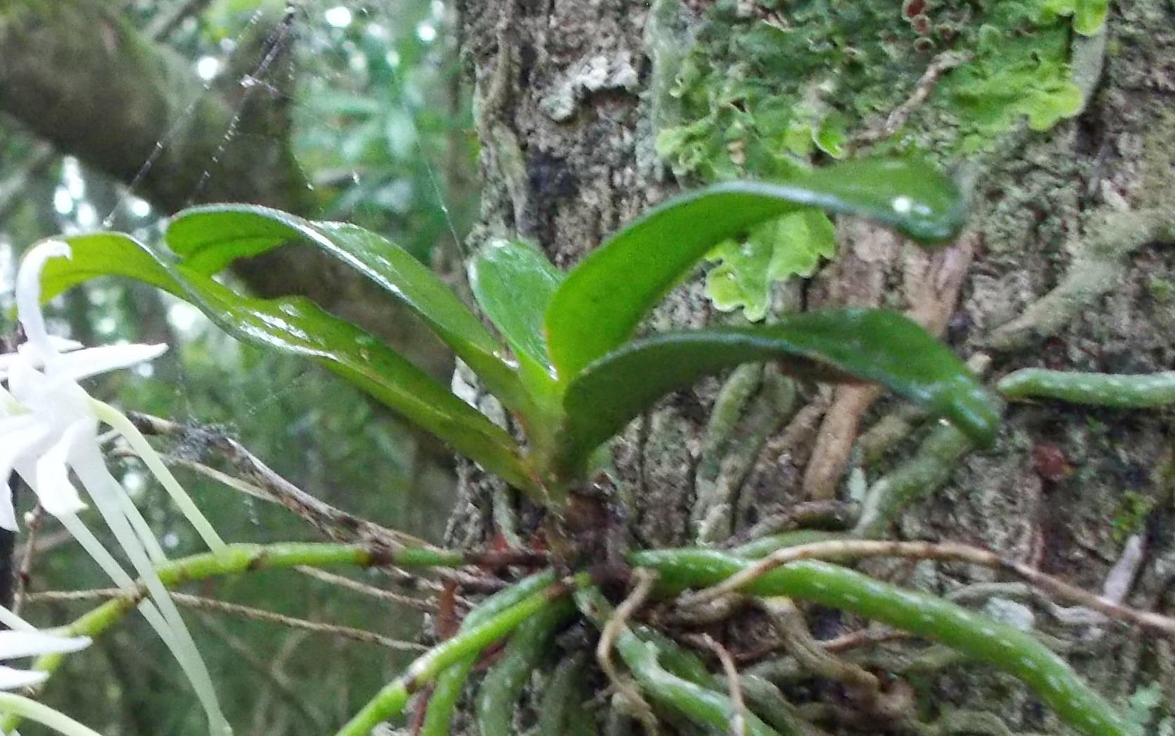 General notes: Biome: forest. Vegetation type: forest. Habitat: hill slope. Substrate: bark. Moisture regime: well-drained. Exposure: partial shade. Aspect: southwest. Slope: steep. Life form: epiphyte, ca. 0.07m high. Flowers white. Notes: occasional.