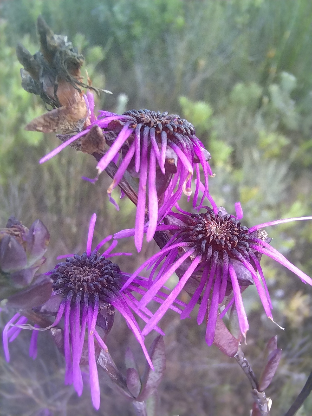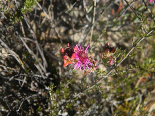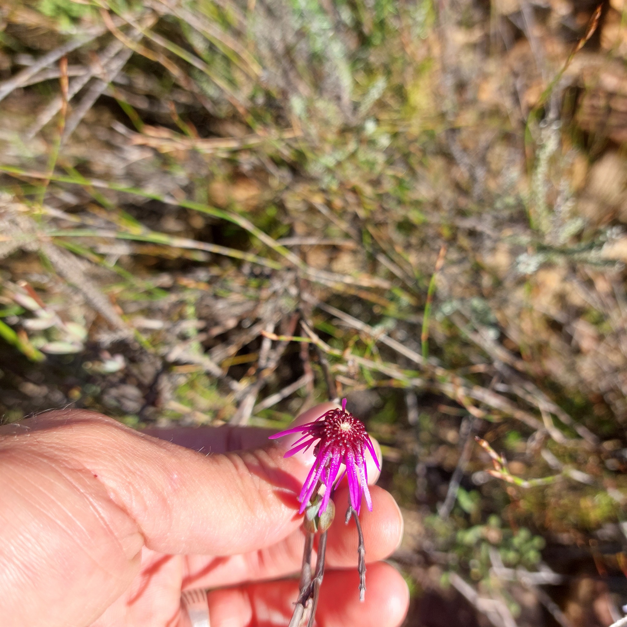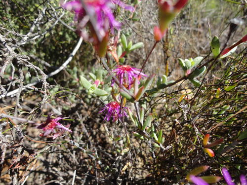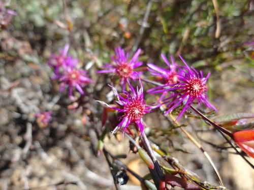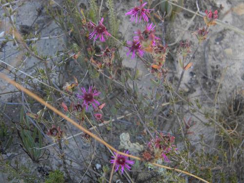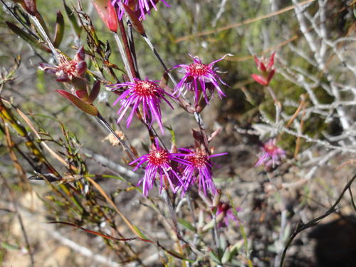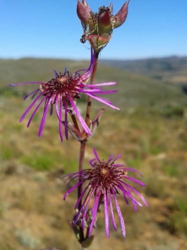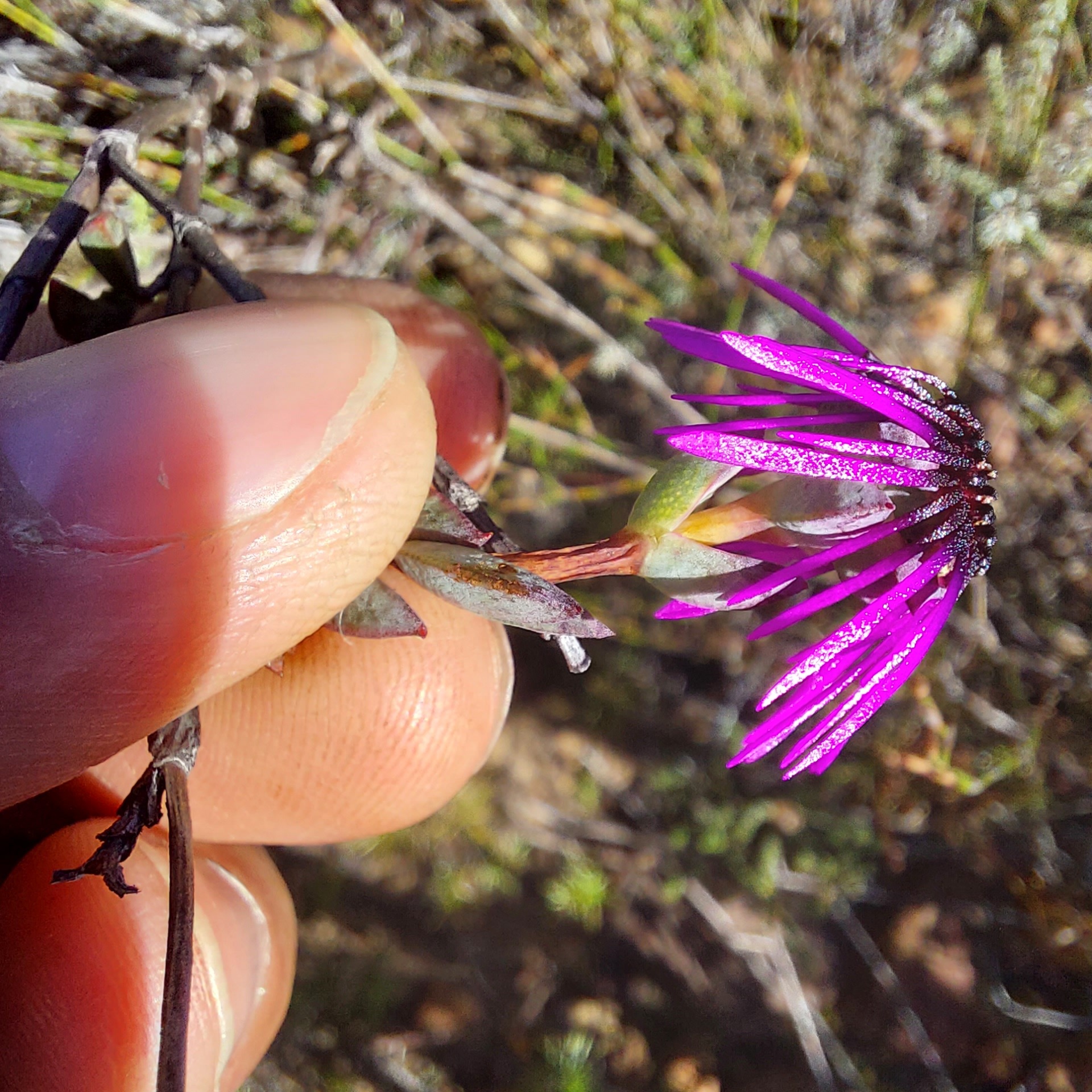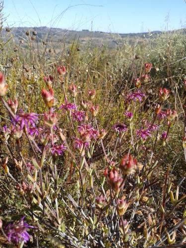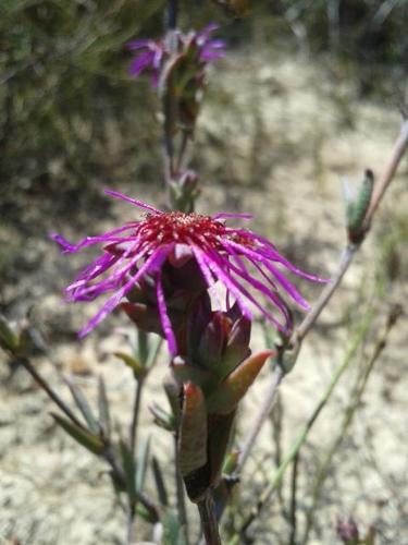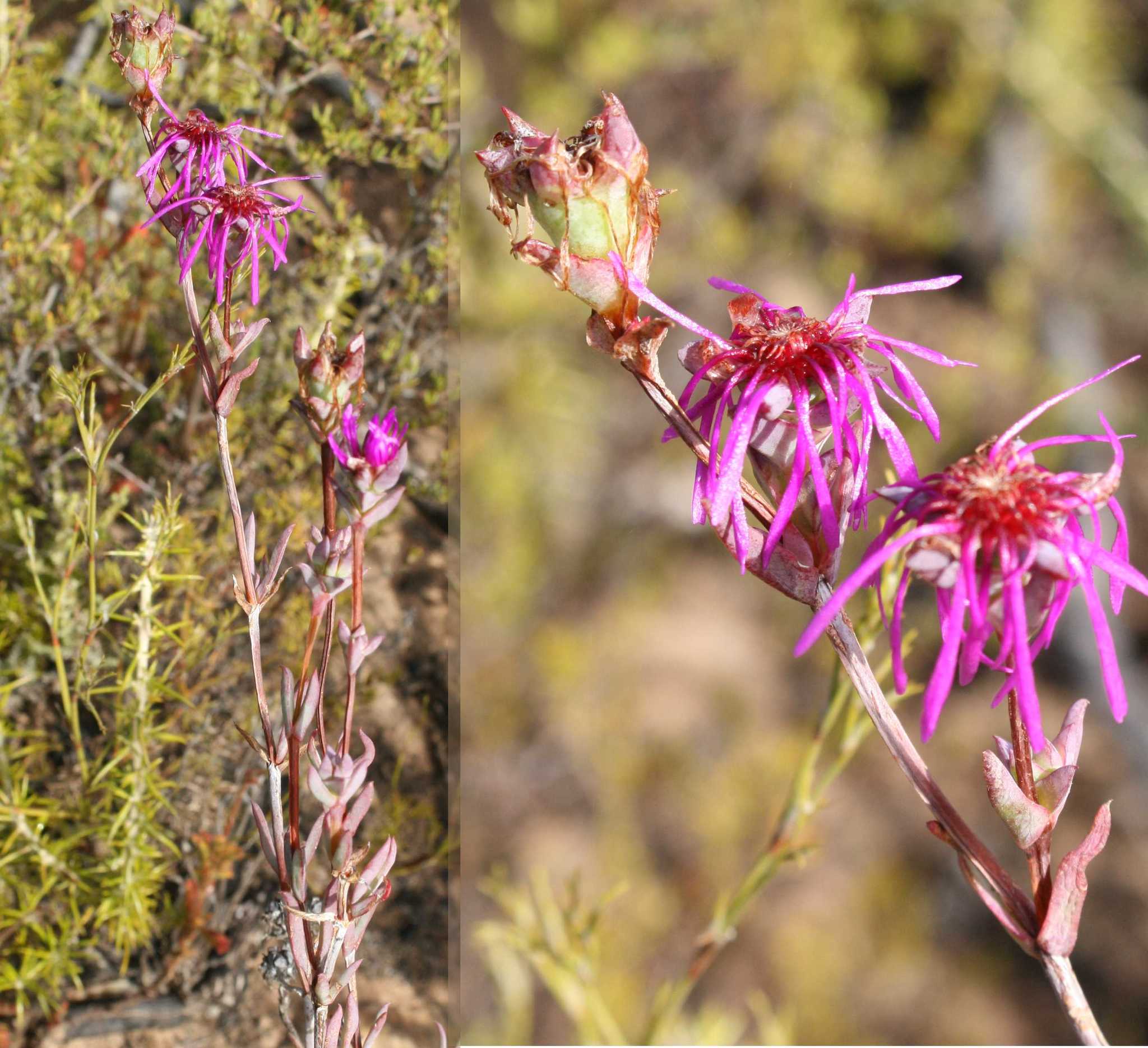 General notes: Granite Renosterveld. Remnant patch of natural habitat. Uncommon. In well-drained stony soil on a hill top, with full sun exposure and a SW aspect. Erect, laxly branched. Petals magenta with filamentous staminodes.