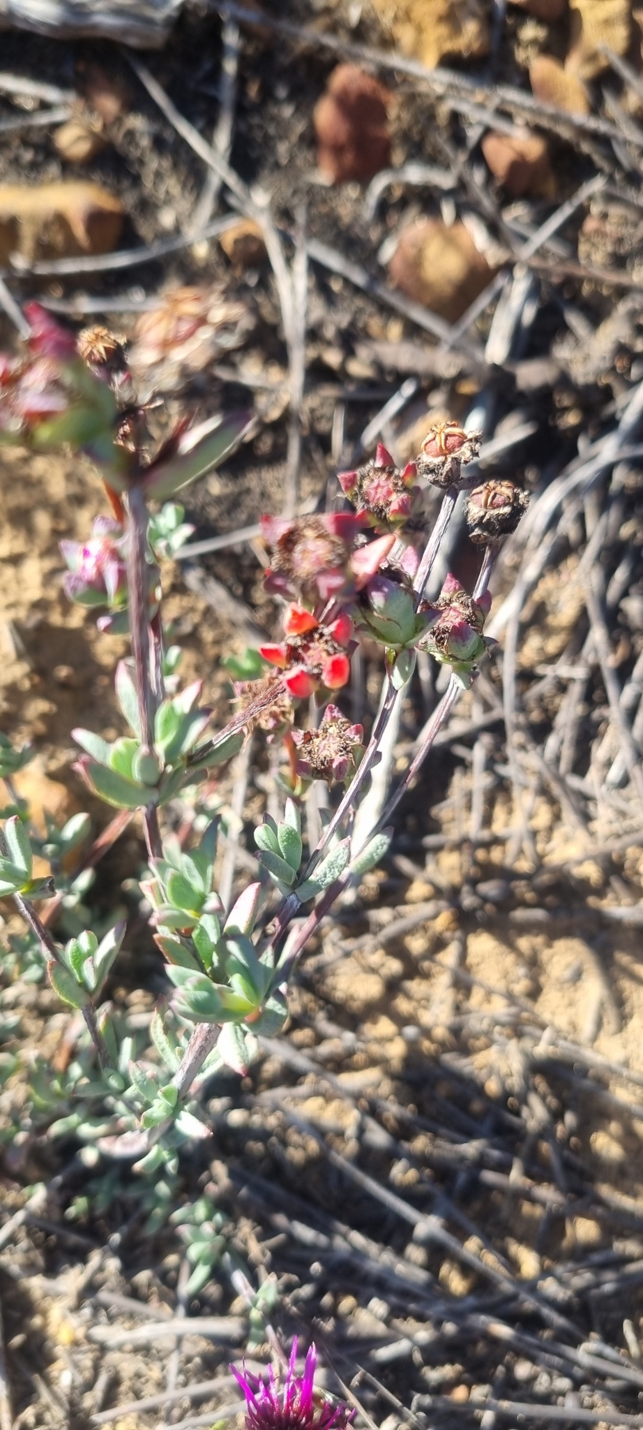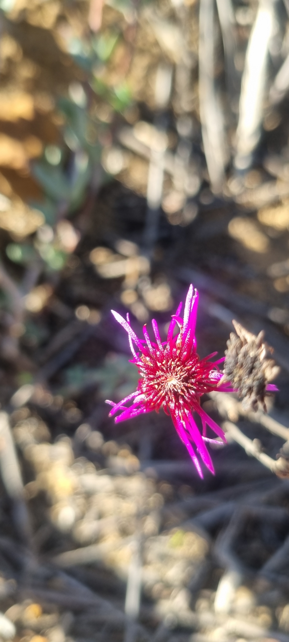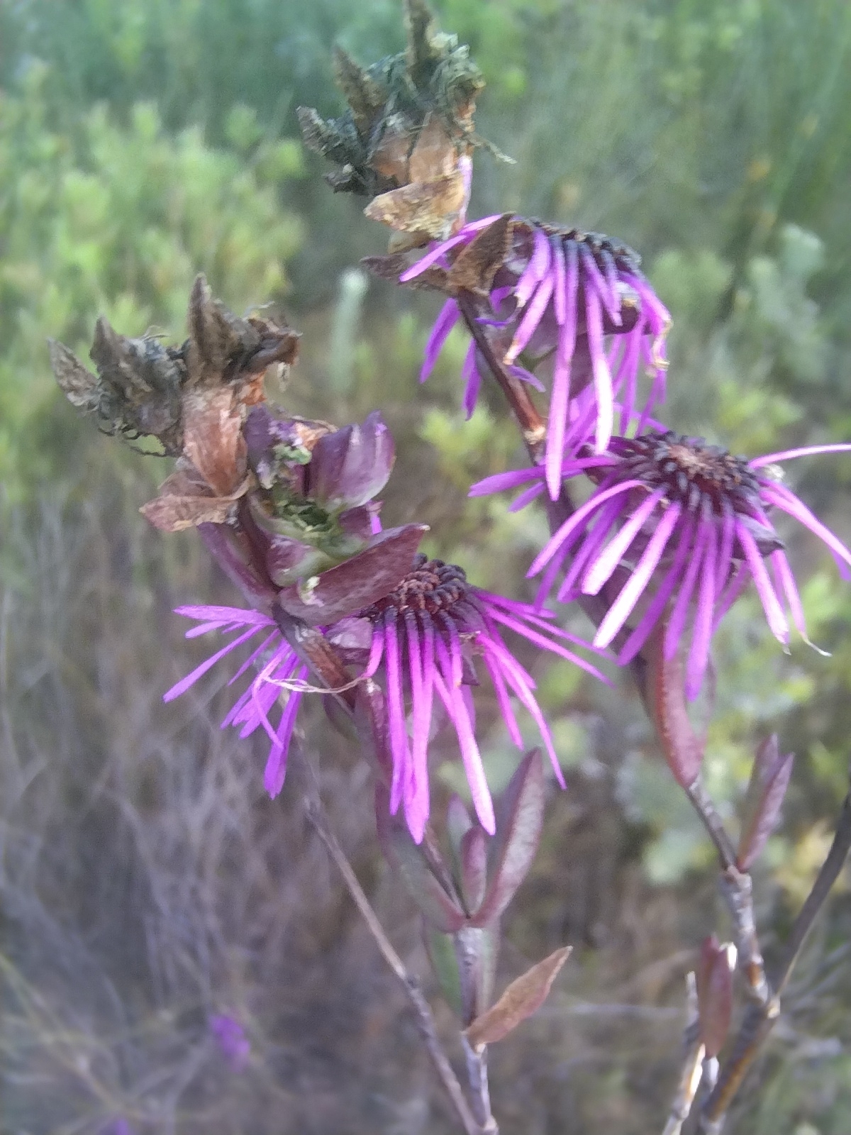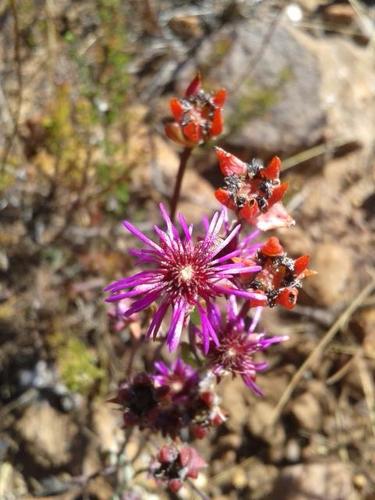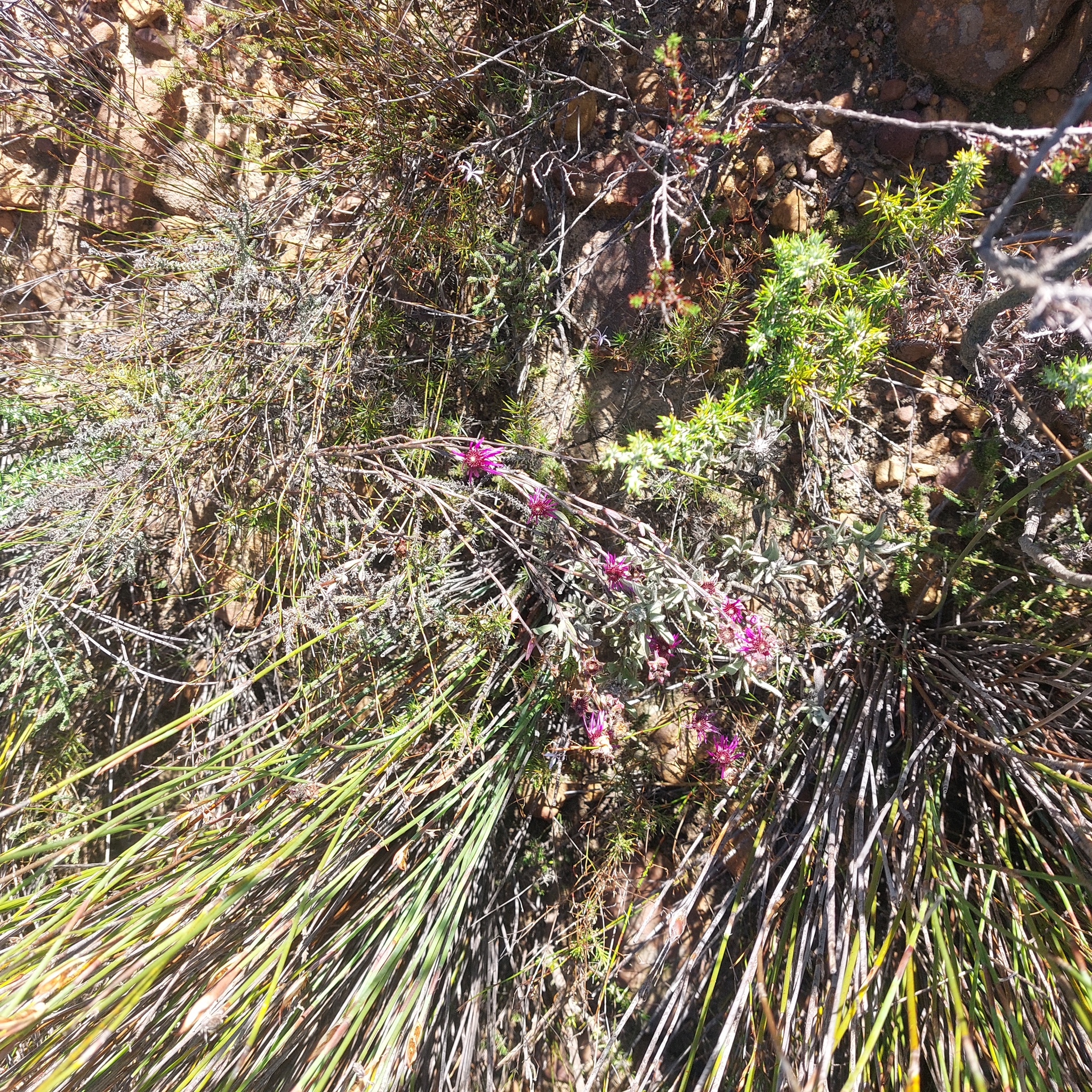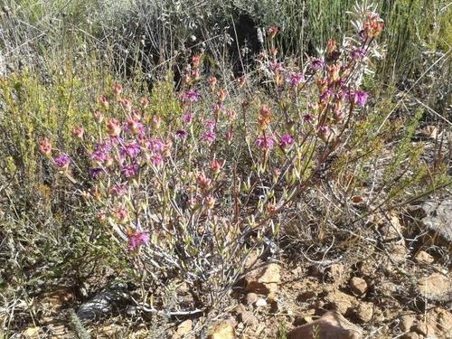 General notes: Granite Renosterveld. Remnant patch of natural habitat. Uncommon. In well-drained stony soil on a hill top, with full sun exposure and a SW aspect. Erect, laxly branched. Petals magenta with filamentous staminodes.