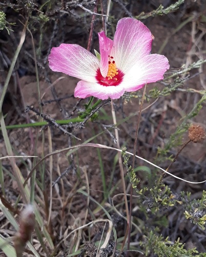 Stony flats and slopes in bush and grasslands. From: Manning, JC; Goldblatt, P. 2012. Malvaceae. In: J Manning & P Goldblatt (eds), Plants of the Greater Cape Floristic Region 1: The Core Cape flora. Strelitzia 29: 613-621. South African National Biodiversity Institute, Pretoria. [CC BY]