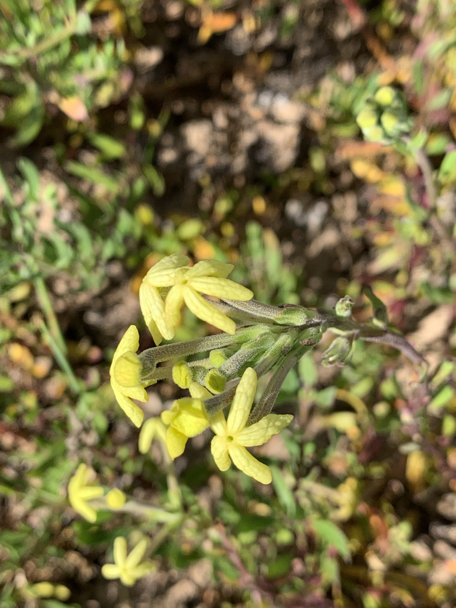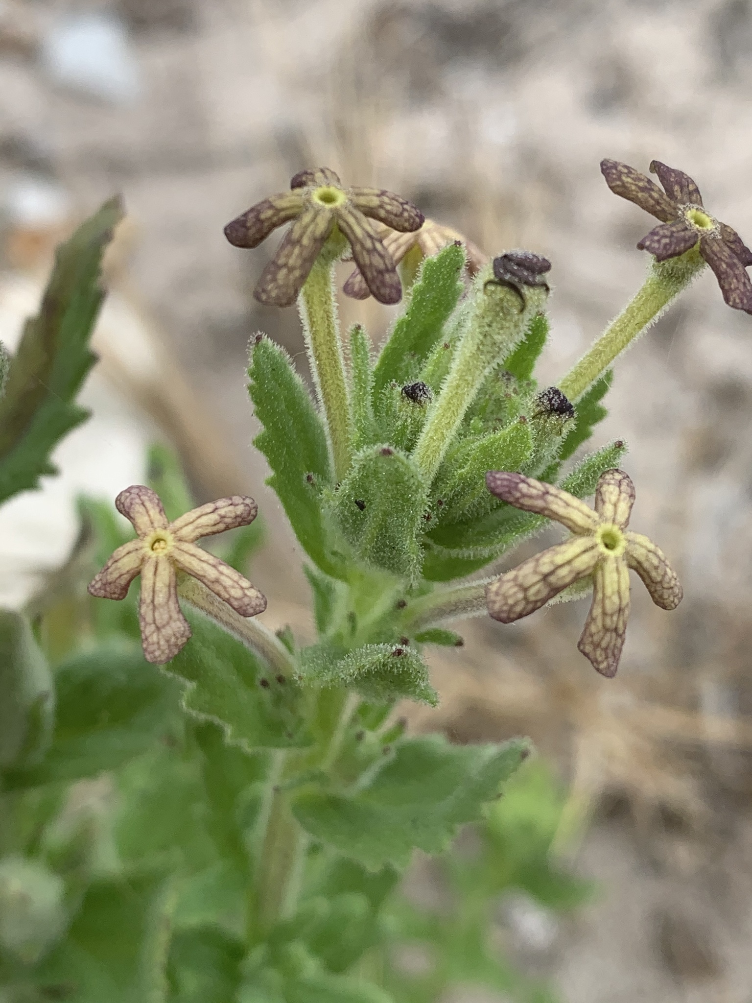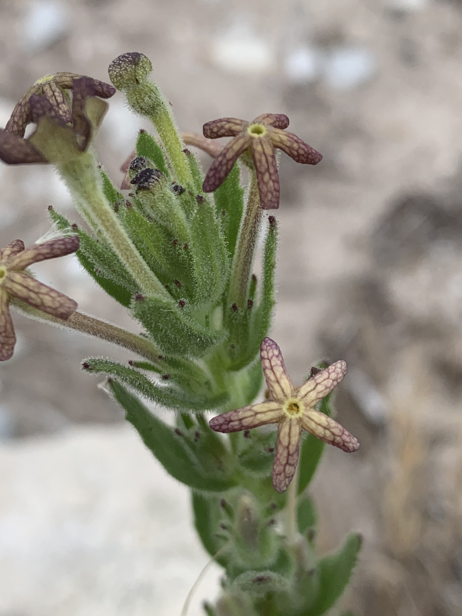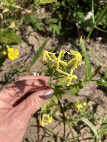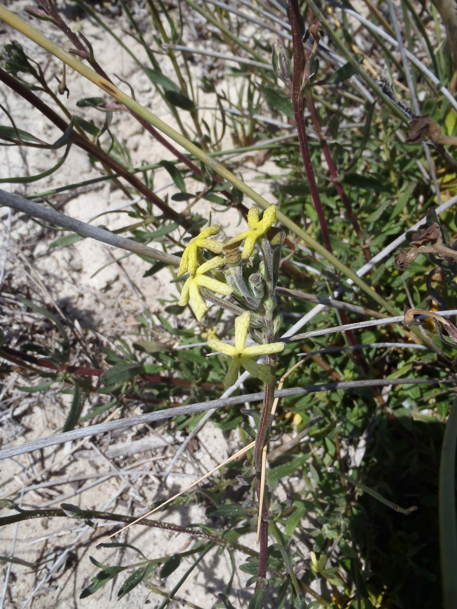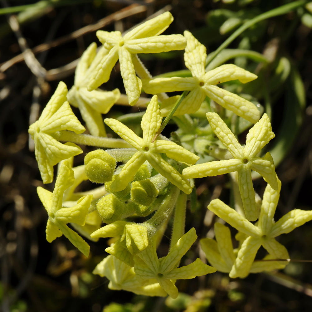 Leafy, glandular-hairy, glistening perennial to 1 m. Leaves mostly in axillary tufts, shortly toothed above. Flowers in racemes, ±15-20 mm diam., tube abruptly inflated above, 23-28 mm long, lobes narrow, greenish to yellow, clove-scented at night, fertile stamens 4. From: Manning, JC; Goldblatt, P. 2012. Scrophulariaceae: Lyperia Benth. In: J Manning & P Goldblatt (eds), Plants of the Greater Cape Floristic Region 1: The Core Cape flora. Strelitzia 29: 744-745. South African National Biodiversity Institute, Pretoria. [CC BY]