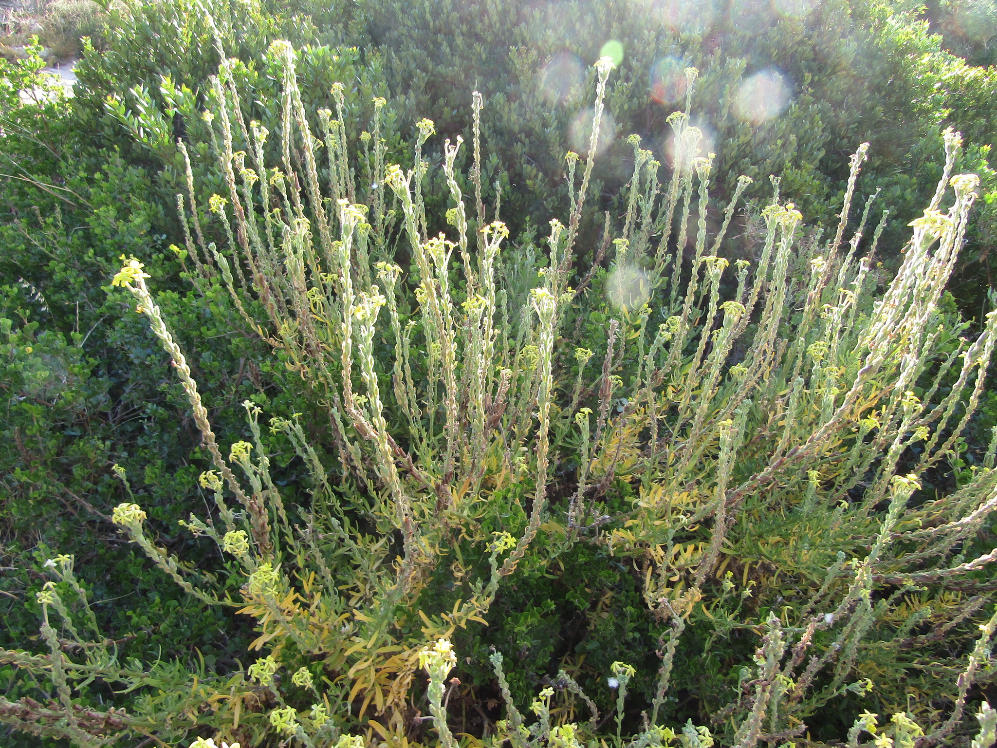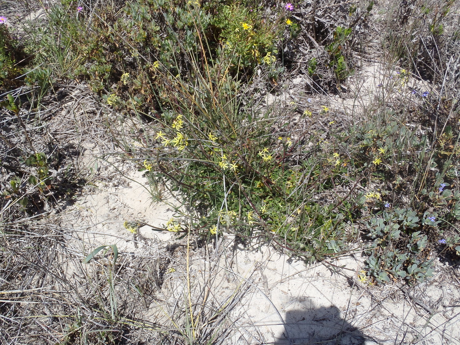General notes: Close shrubland. Acocks Veld Type: 47 Coastal Fynbos. Plain. Dry, sandy soil. Level slope. Creamy, white flowers. Occasional. Plant height: 0.2 m.