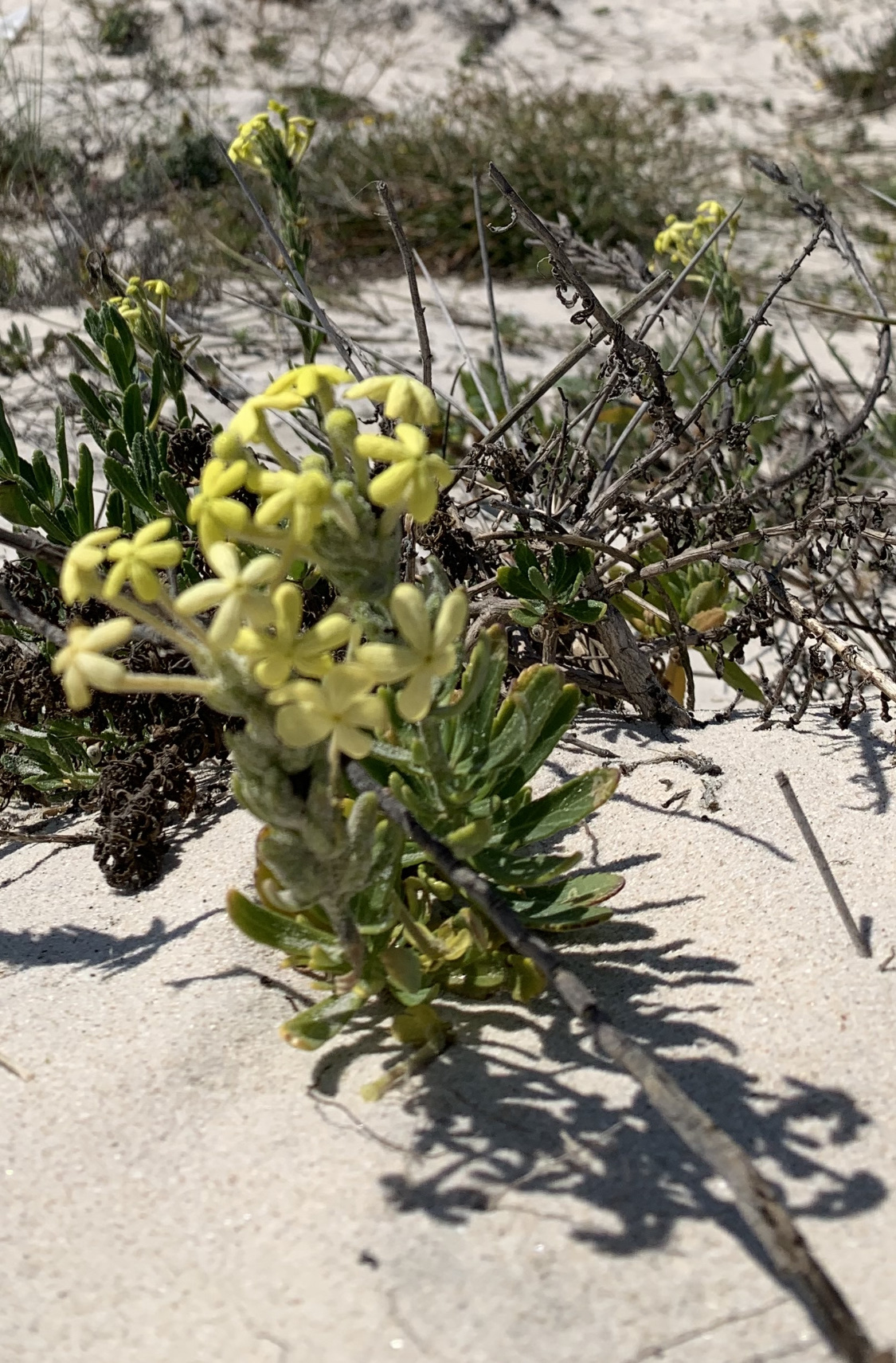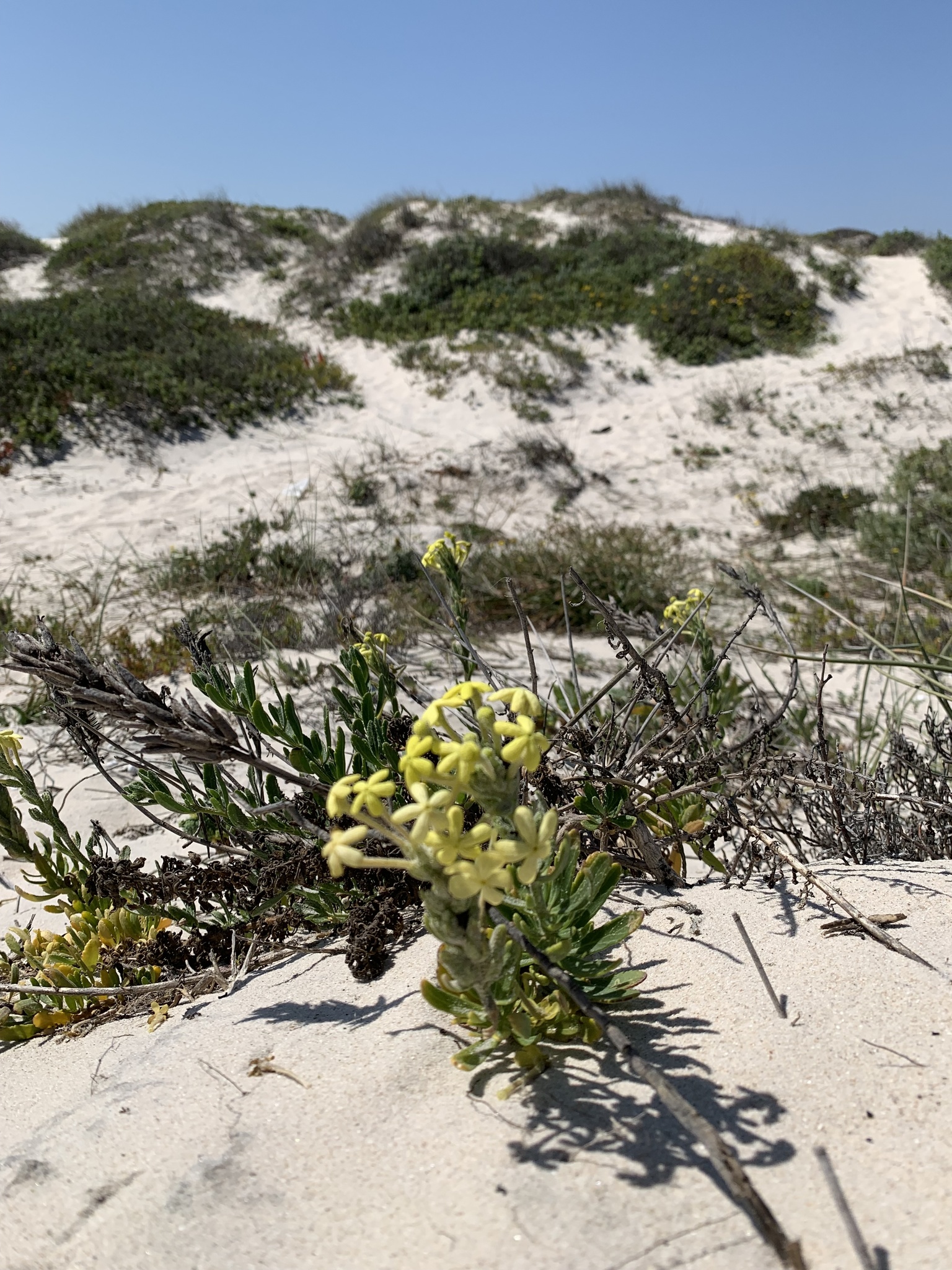 General notes: Kusstruike. Kusduine. Goeie dreinering. Sand. Vol son. Aspek: geen. Slope: gelyk. Biotiese effek: langs voetpad.