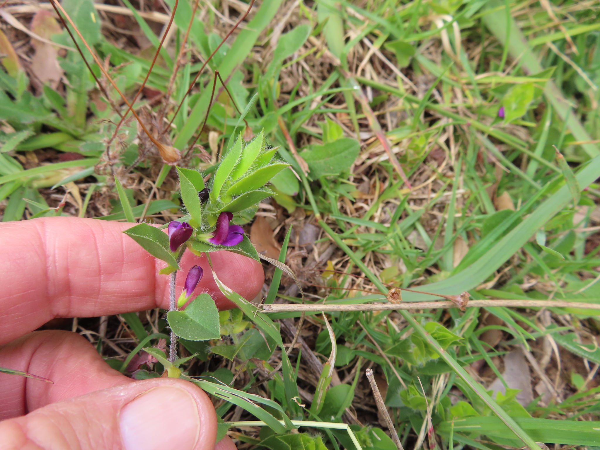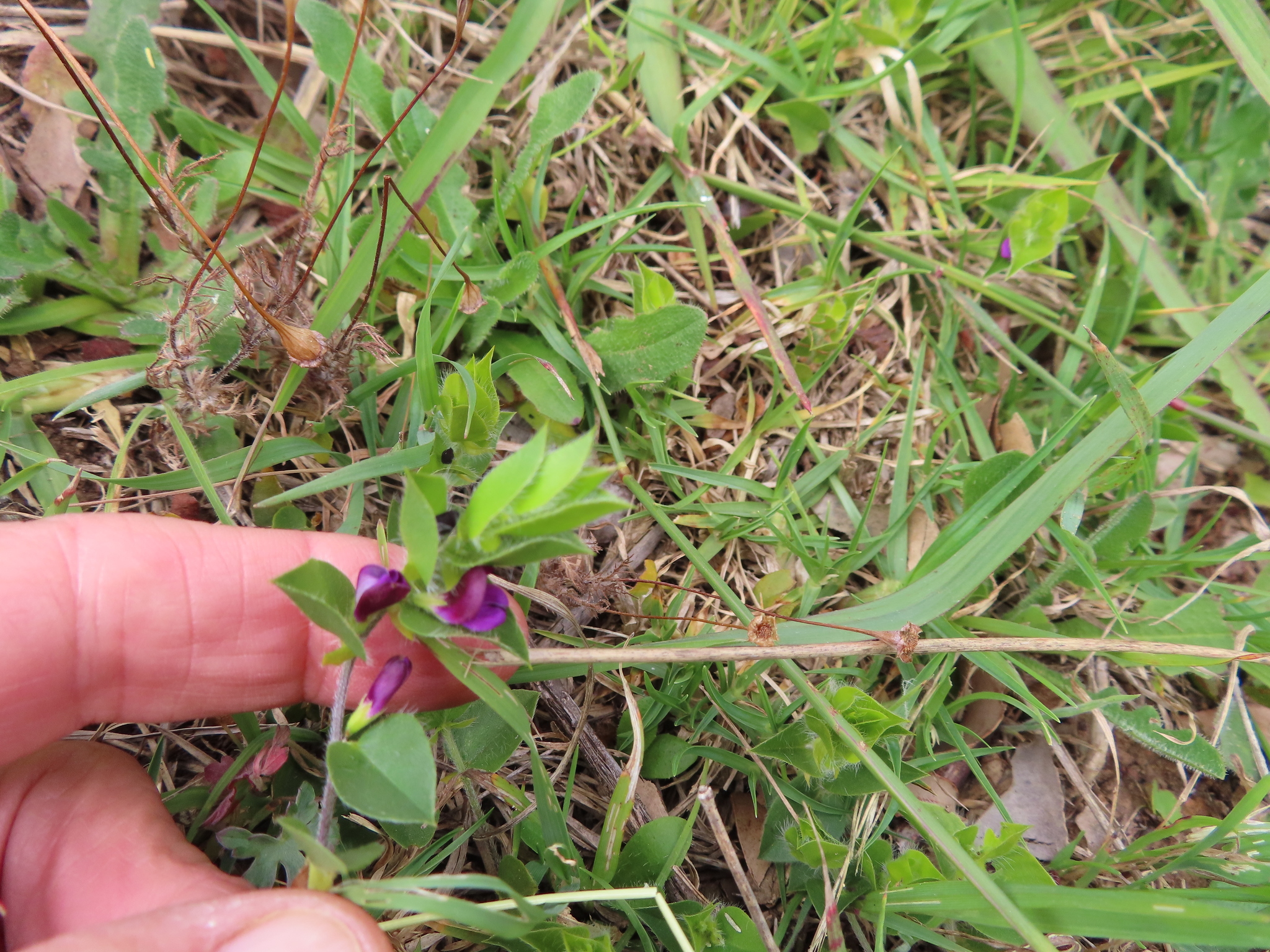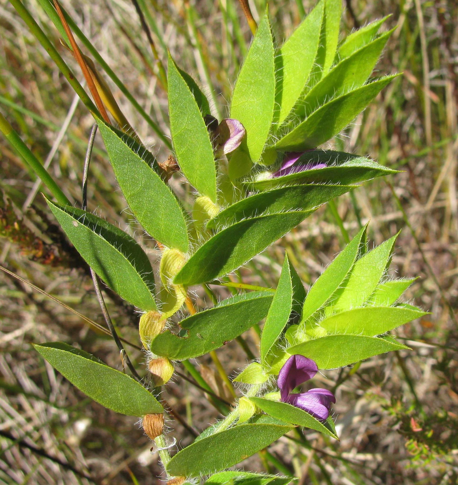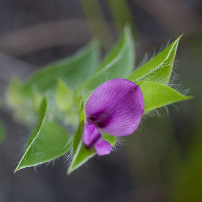 General notes: Acocks veld type. Fynbos. Aspect: E. Slope: gentle. Well-drained; sandy loam soil. Wet mountain fynbos; TMG-sandstone; full sunlight; 7 months after fire. Disturbance none. Local abundant. Perennial. Flower colour: purple. No fruit. Plant height: 0.28m. Plant hairy, stem branched from base, leaves alternate, ovate, 0.6-2cm long and 0.5-2cm broad.