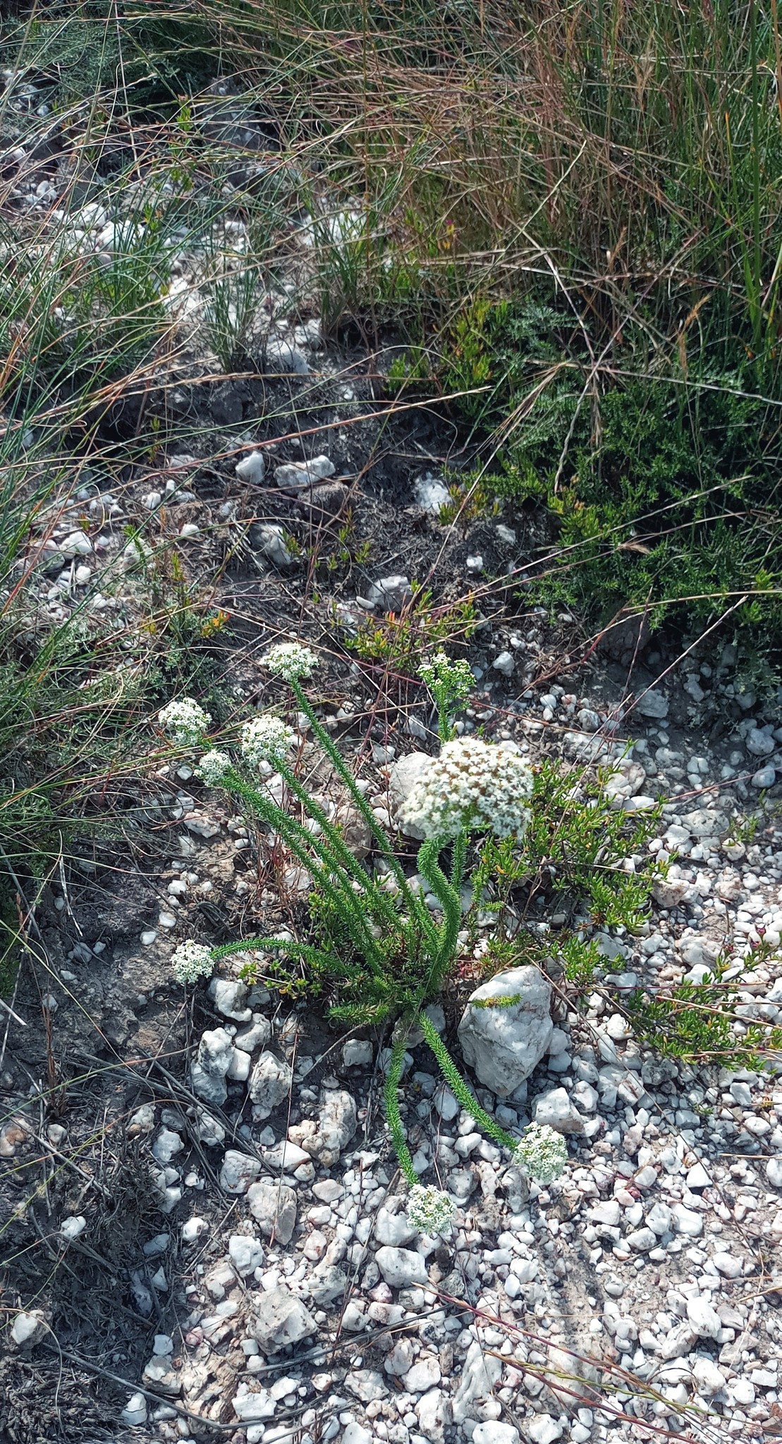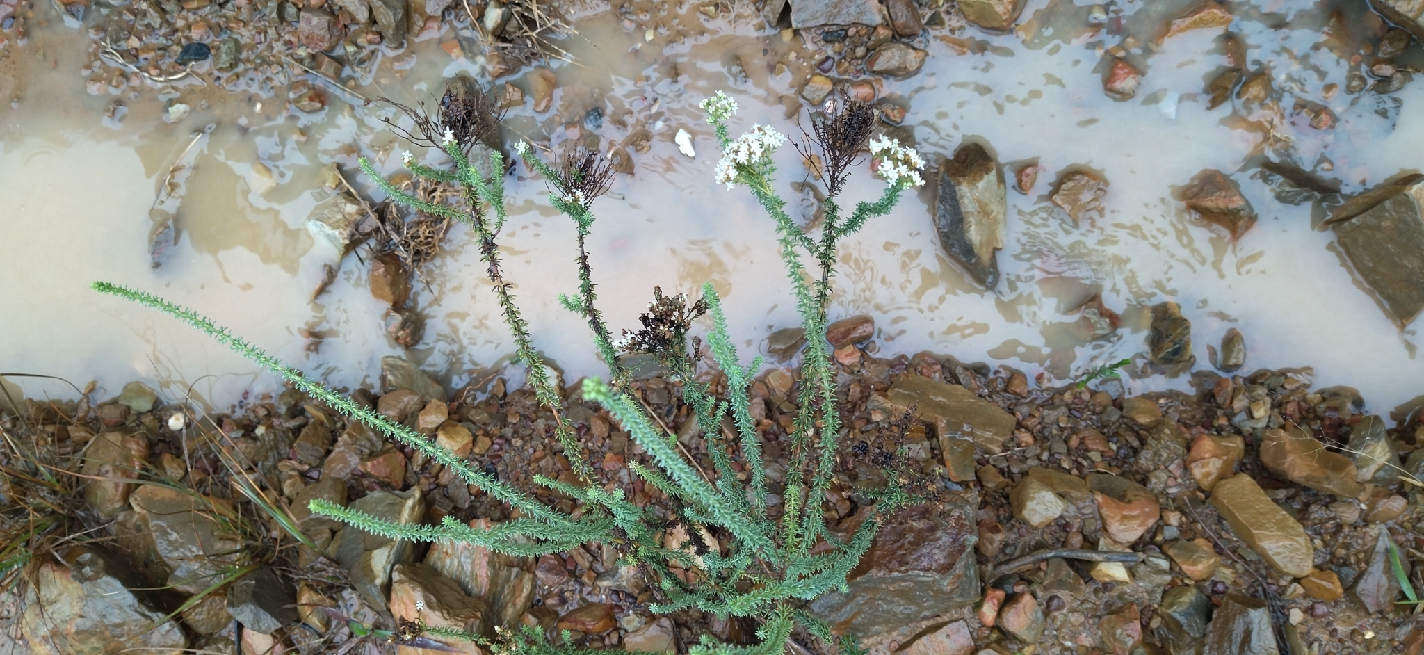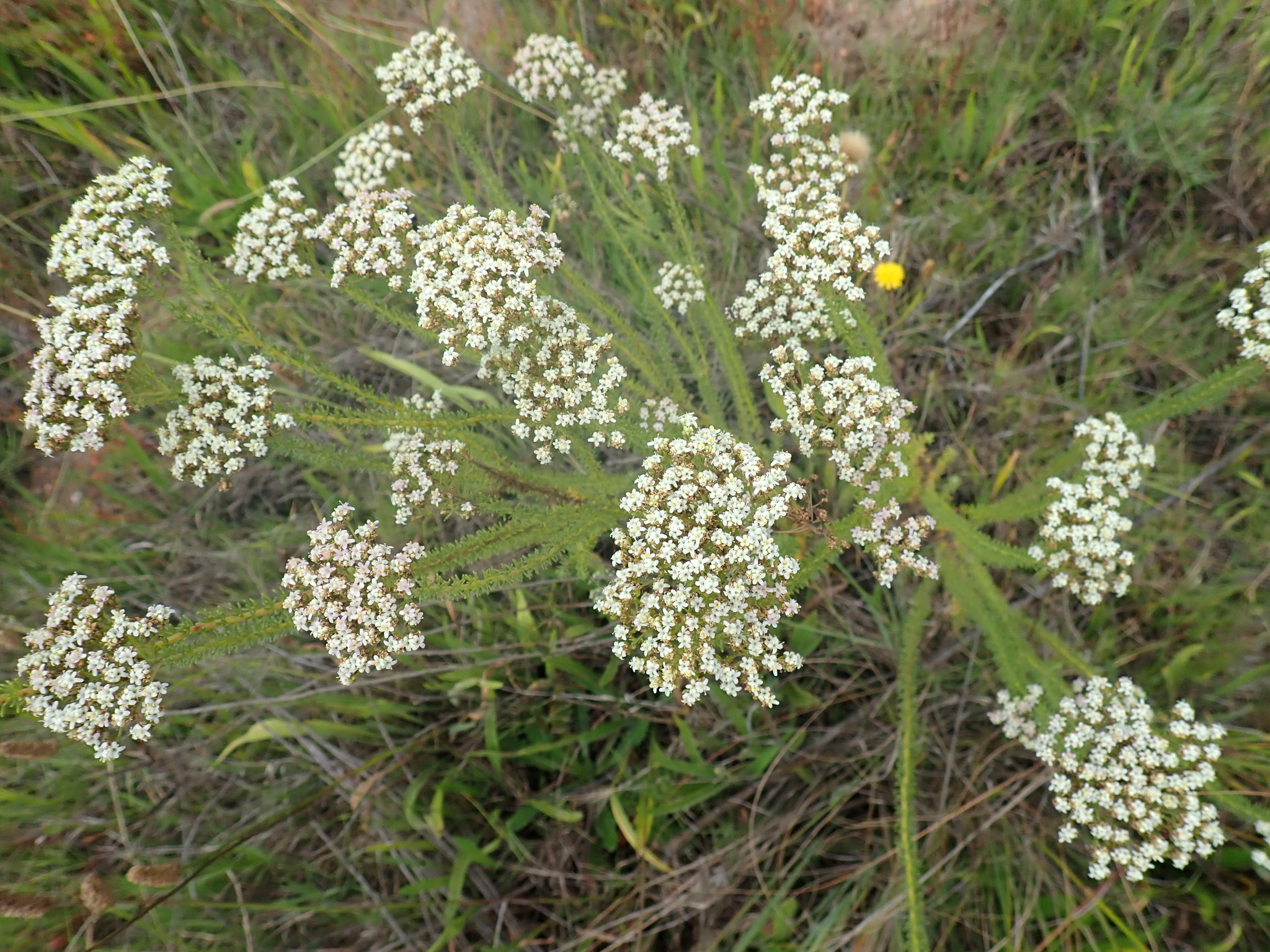 General notes: East Coast Bushveld. Gentle slope. Herb. Plant height: 45 cm. Fyn wit blommetjies.
