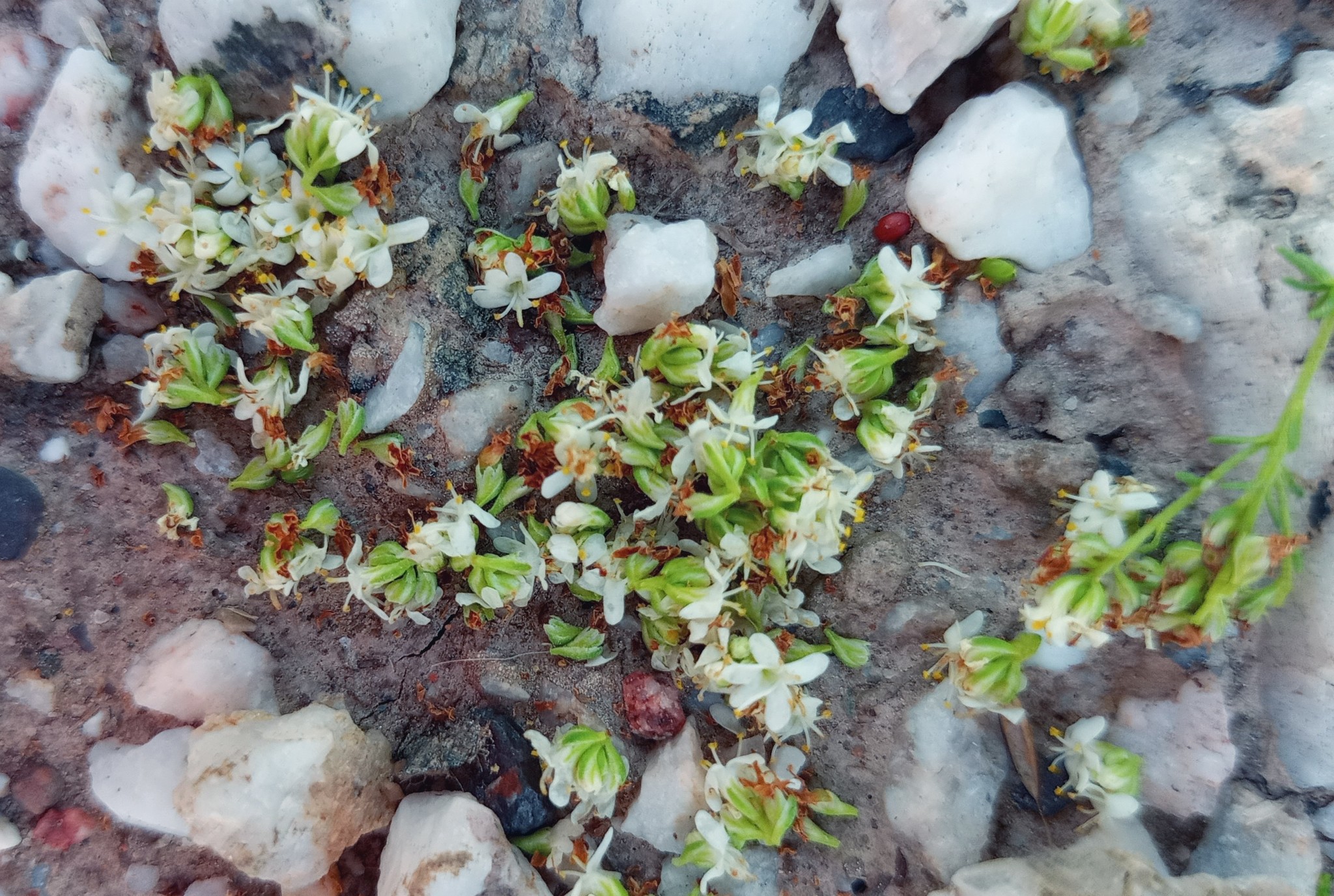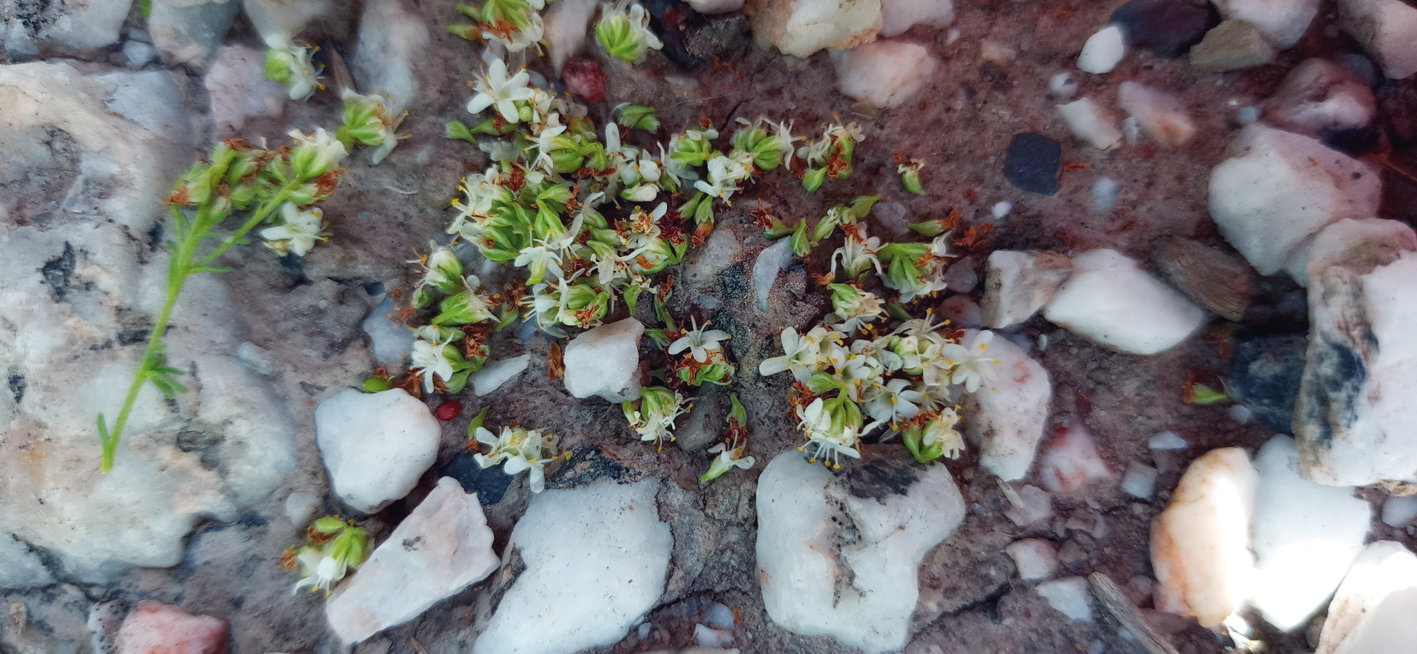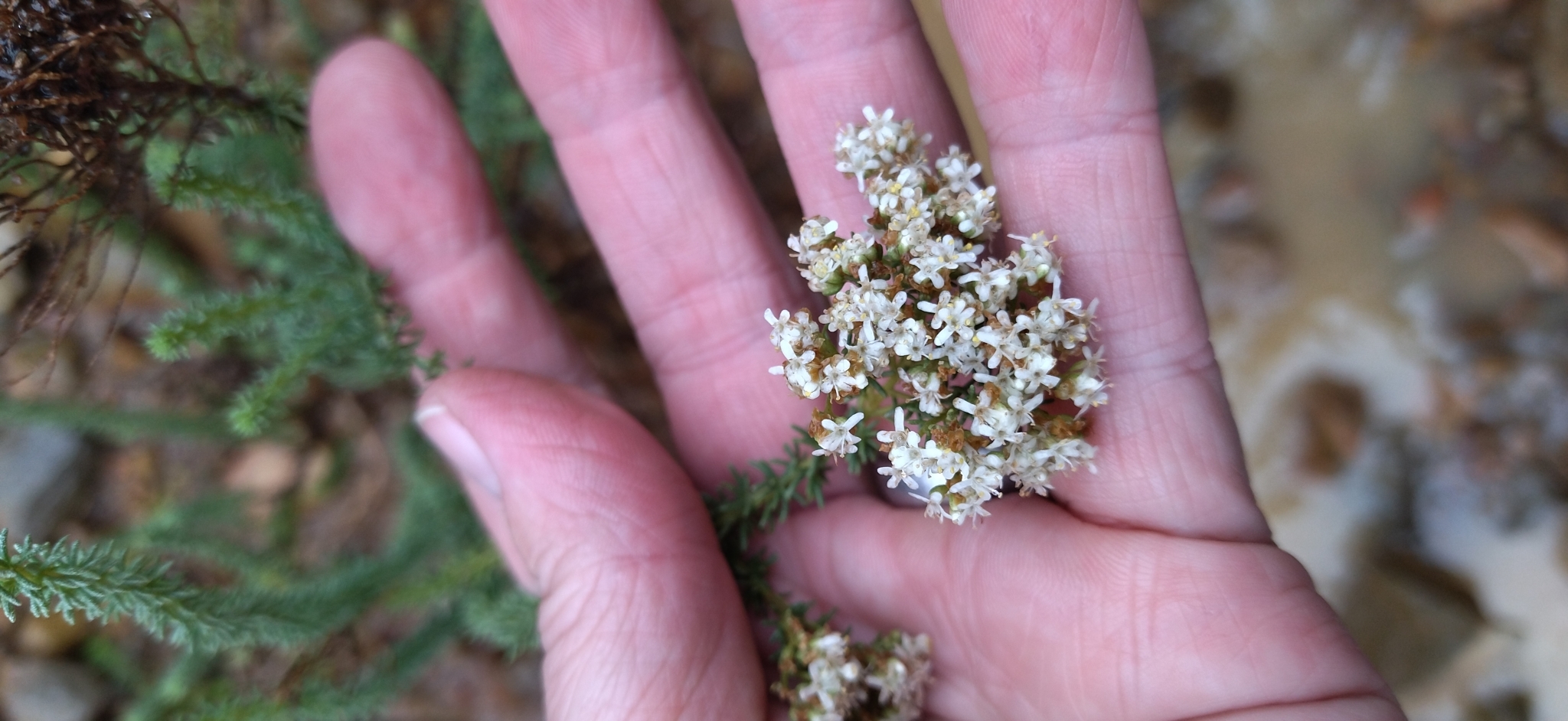 General notes: East Coast Bushveld. Gentle slope. Herb. Plant height: 45 cm. Fyn wit blommetjies.