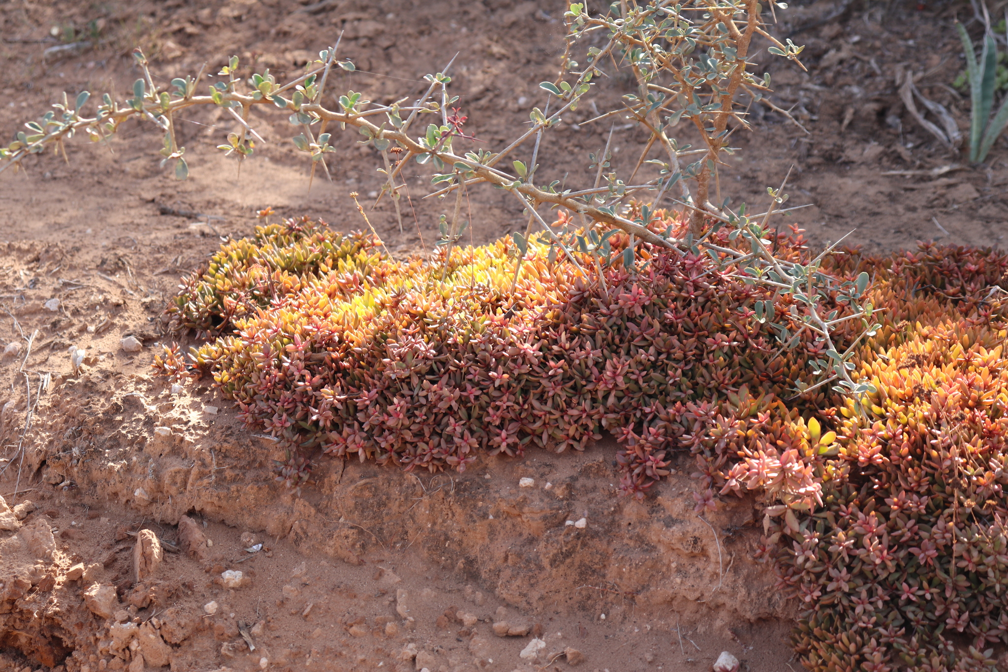 General notes: AT 6 Sundays Thicket. Slope: none. Semi-prostrate succulent mat-forming herb. Flowers in apical clusters on long peduncles. Height: 3-20 cm. Occasional but can be locally common. Flowered in cultivation in January 2012.
