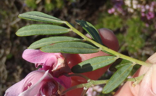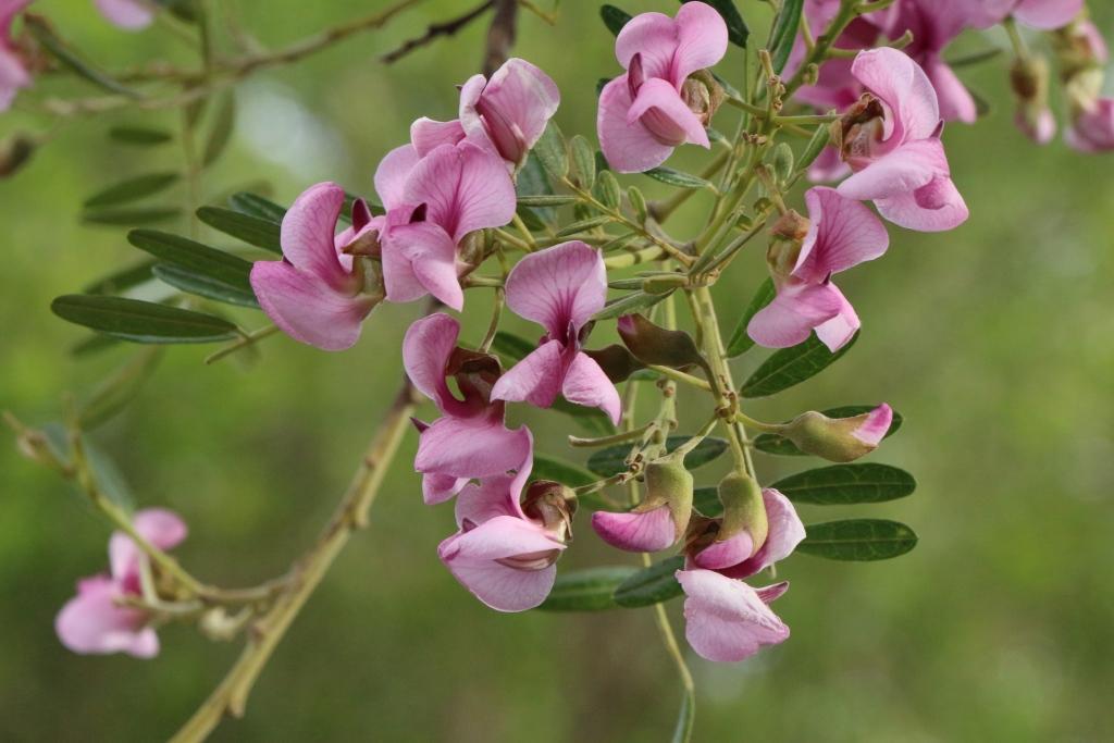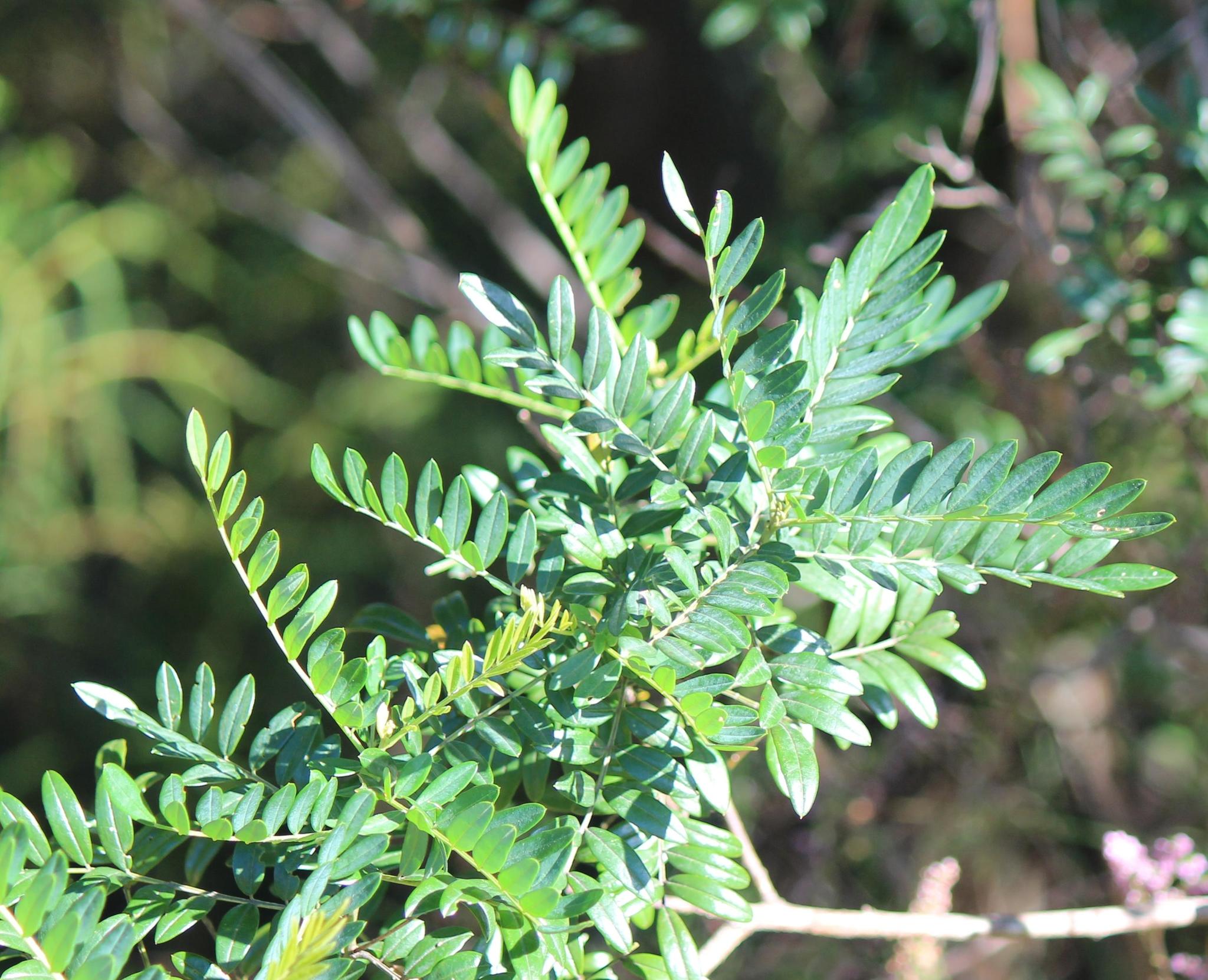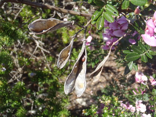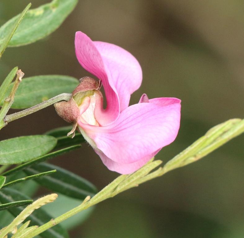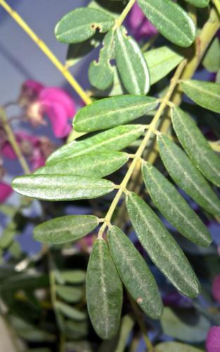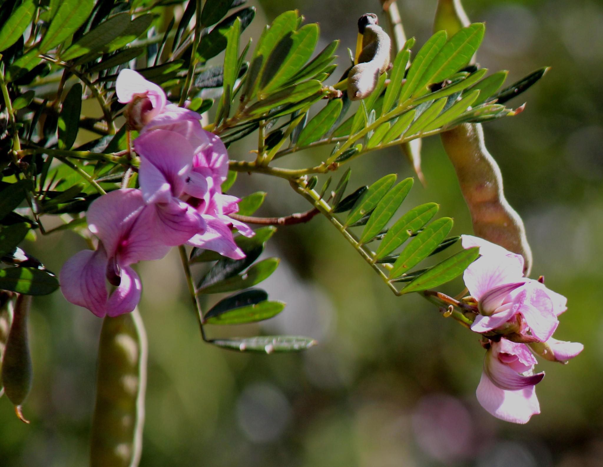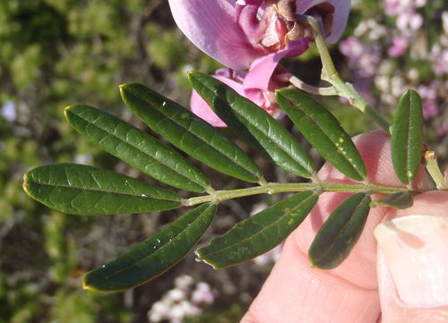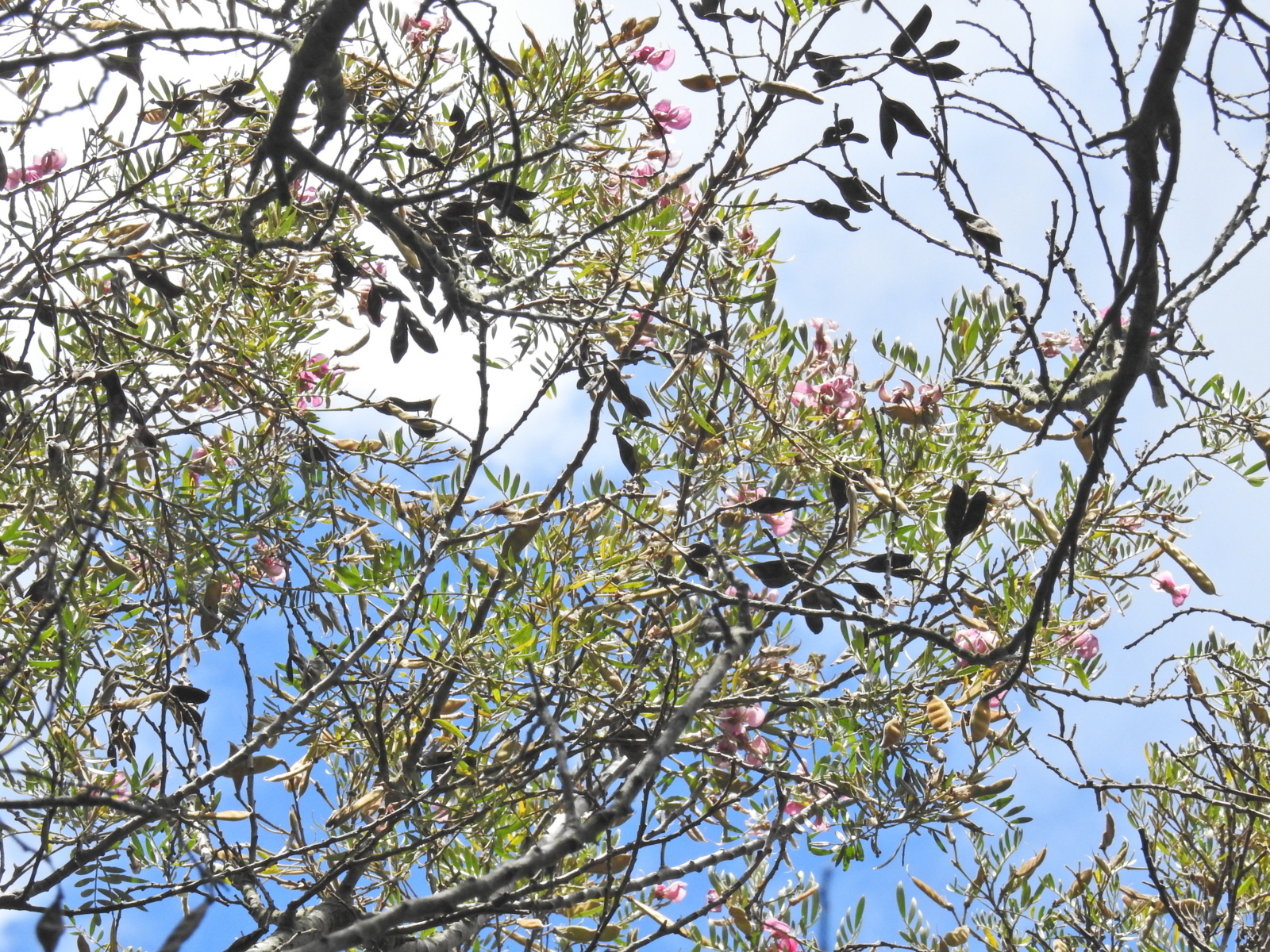 Small tree, 4-8(-16) m high, with crown narrow or spreading. Bark smooth. Leaves very variable, imparipinnate. Leaflets in (2-)7-9(-16) pairs, subsessile, linear to narrowly ovate, with a short, apical mucro, glabrescent at maturity or pubescent along midrib abaxially. Stipules linear, acuminate. Inflorescence an often congested and umbel-like raceme with flowers opening ± simultaneously. Flowers rose-violet or violet-purple, rarely pale pink, but then with beak dark purple; bracts small, caducous. Flowering time Aug.-Jan., with peak in Oct. Pod dehiscent, sometimes only along upper suture, coriaceous or sometimes woody, linear to linear-oblong, 2-valved. From: Boatwright, JS; et al. 2019. Fabaceae. In: CL Bredenkamp (ed.), A Flora of the Eastern Cape Province. Strelitzia 41(2): 926-1066. South African National Biodiversity Institute, Pretoria. [CC BY]