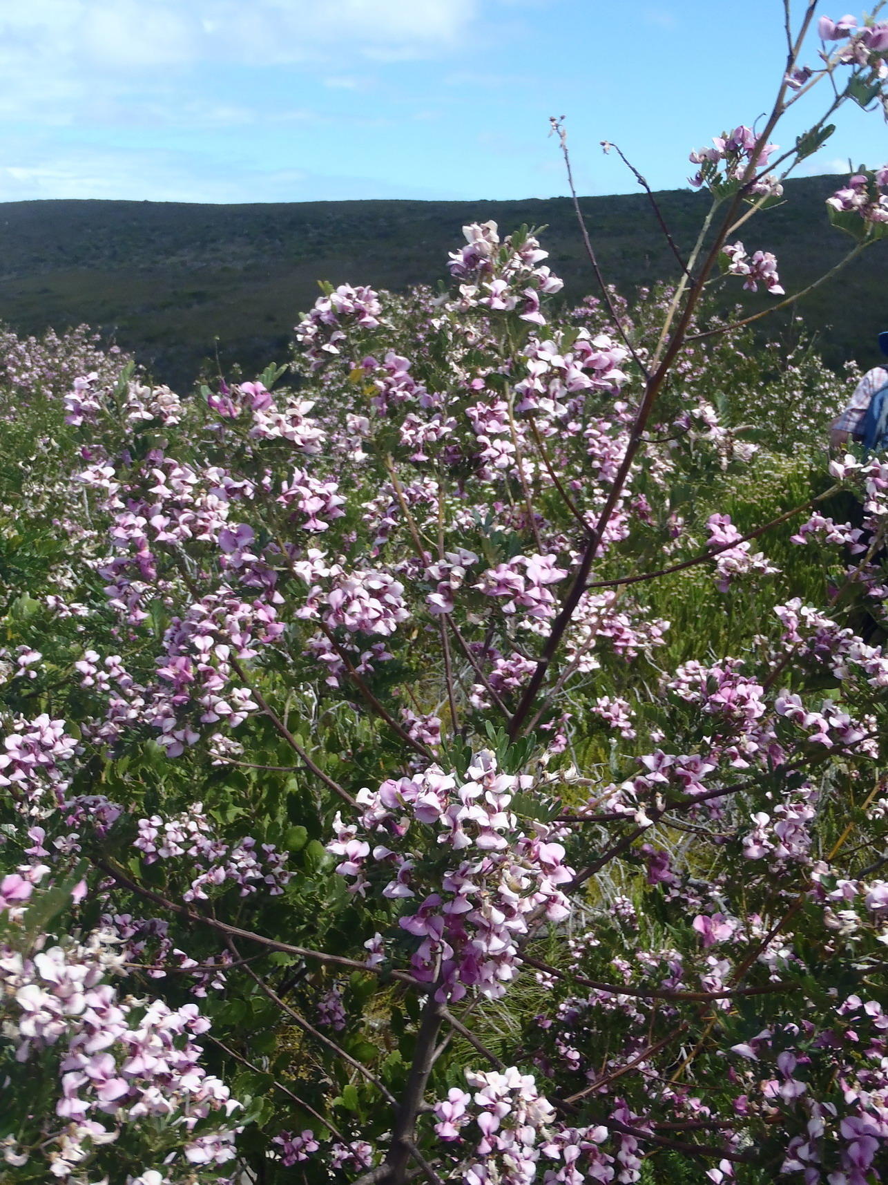 Limited to the eastern part of the distribution area of the genus, from George to Port Elizabeth and very frequent along the southern Cape- and Tsitsikamma coastal plain and mountains. The population at Ladismith (type locality) is rather isolated, but similar forms of the species occur in the northern (drier) localities, e.g. the Langkloof area. The species is extremely variable, and at least two other forms may be distinguished: around Baviaanskloof and Port Elizabeth (pale pink flower with dark purplish-red pollen guide) and the widespread Tsitsikamma and southern Cape form (rose-violet or violet-purple flower, with dark purple pollen guide). From: Van Wyk, AE. 1986. A revision of the genus Virgilia (Fabaceae). S. African J. Bot. 52: 347-356. [Copyright held by the South African Association of Botanists (1986); http://www.sciencedirect.com/science/journal/02546299] [CC BY]