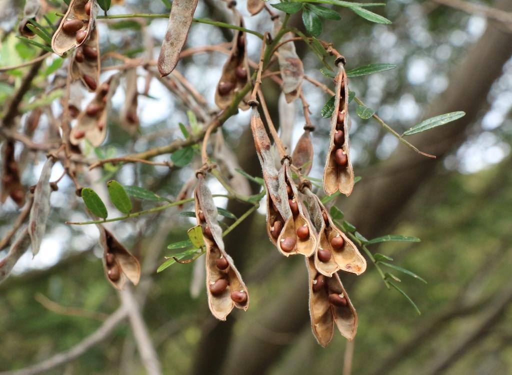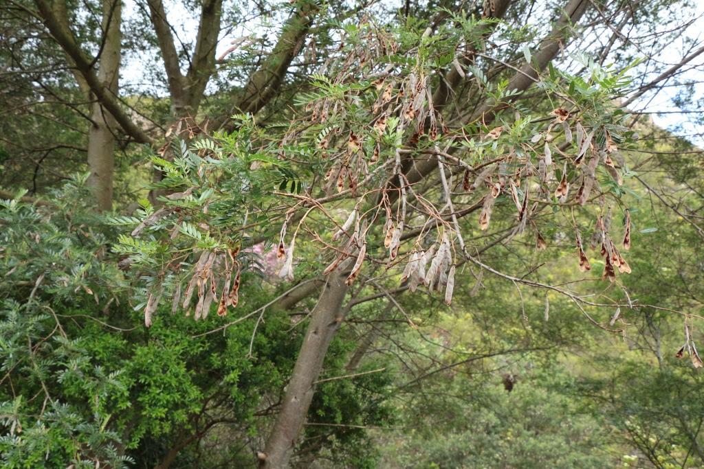 General notes: Uncultivated white sandy soil. Tree 15 ft high, 15 ft wide. Crown leaves with pale purple with dark purple veins, foliage leaves dark green above and light green at the bottom. Bark brown, younger ends of branches green. Known as Keurboom. Mostly found in Keurboom Valley, Knysna. Not indigenous in this area, but thrives well.