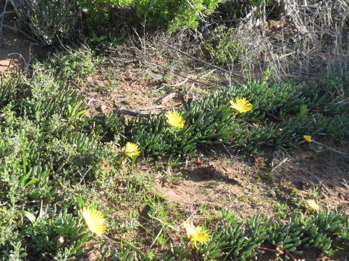 General notes: Fair drainage. Prostrate, creeping succulent (± 6 cm x 1.5m). Large, bright yellow flowers. Only plant seen in area. Attracts bees and other insects. Voucher for slides.