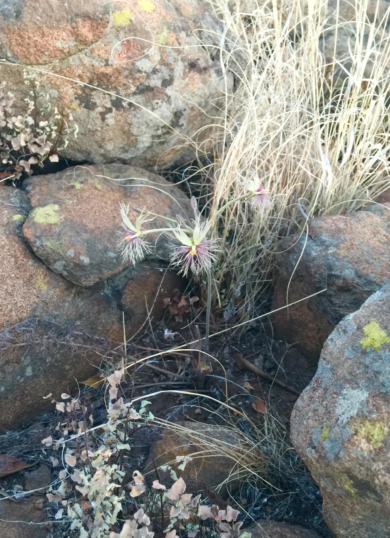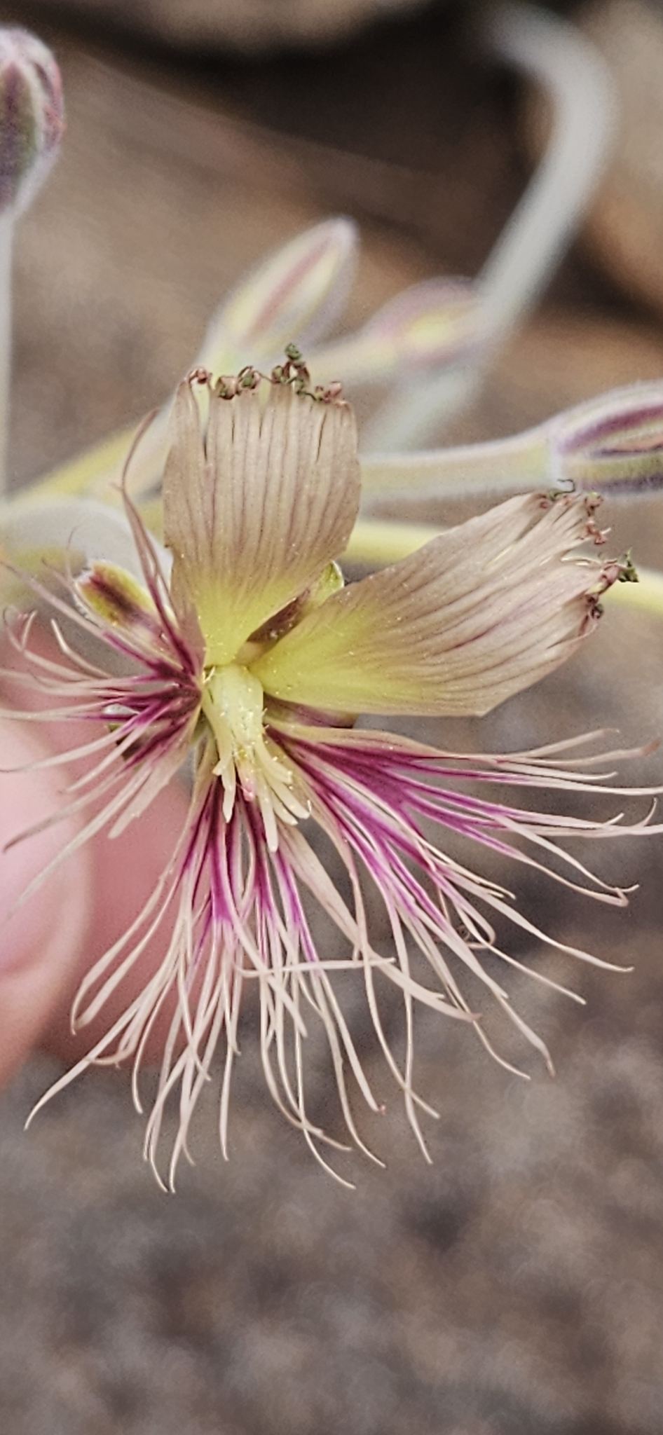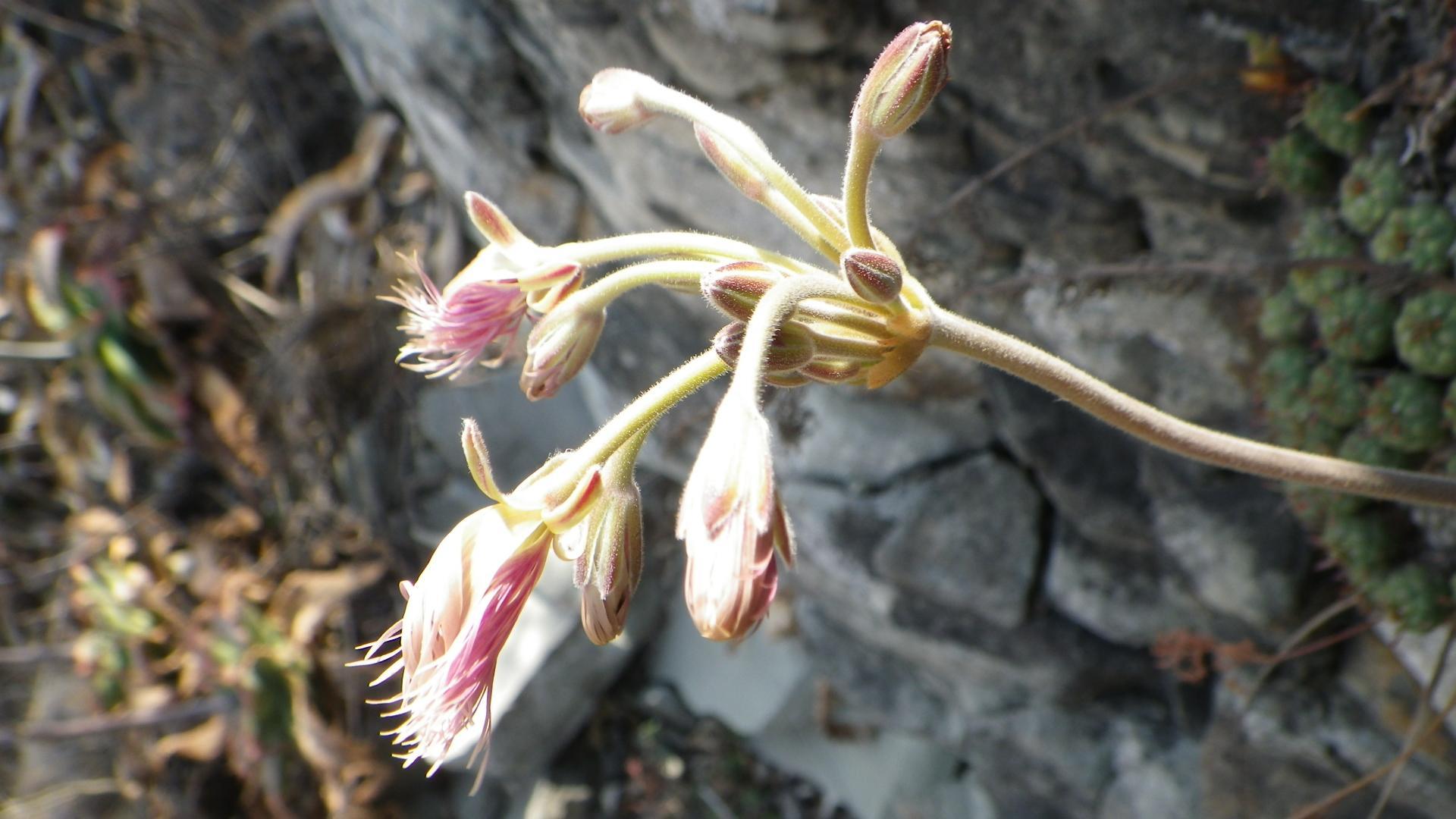 General notes: Found on rocky hillside growing between rocks in open. Appear to be many plants, greenish flowers with reddish markings - not all flowering at once.
