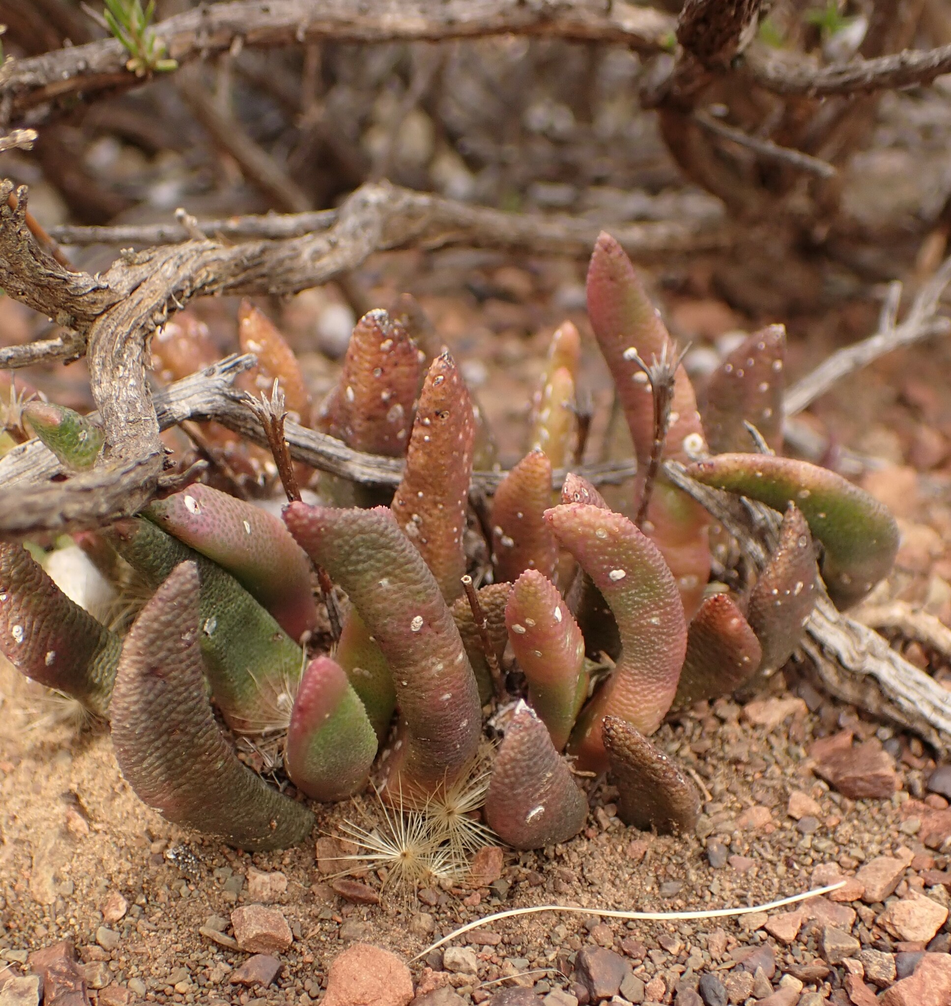 Flats and hills of karoo shales or siltstones. Sub-Escarpment Grassland, Dry Highveld Grassland, Upper Karoo. From: Burgoyne, PM; Bredenkamp, CL. 2019. Aizoaceae: Hereroa (Schwantes) Dinter & Schwantes. In: CL Bredenkamp (ed.), A Flora of the Eastern Cape Province. Strelitzia 41(1): 230-231. South African National Biodiversity Institute, Pretoria. [CC BY]