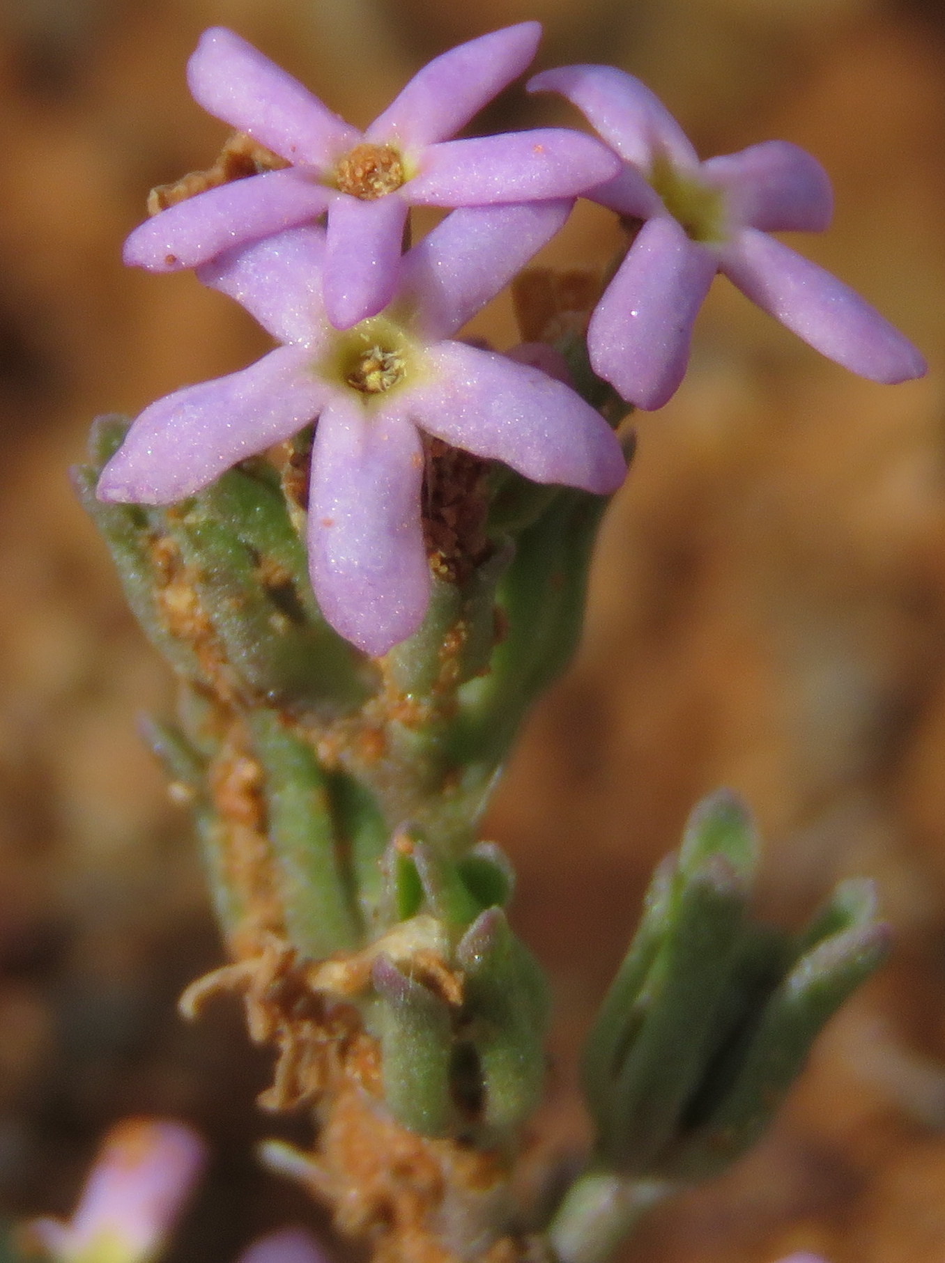 General notes: Biome: Succulent Karoo. Vegetation type: Lowland Succulent Karoo. Flowers white with some with a tinge of purple (even on the same plant). Aromatic, pleasantly scented.