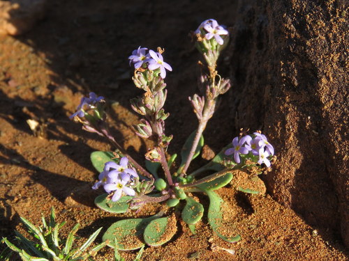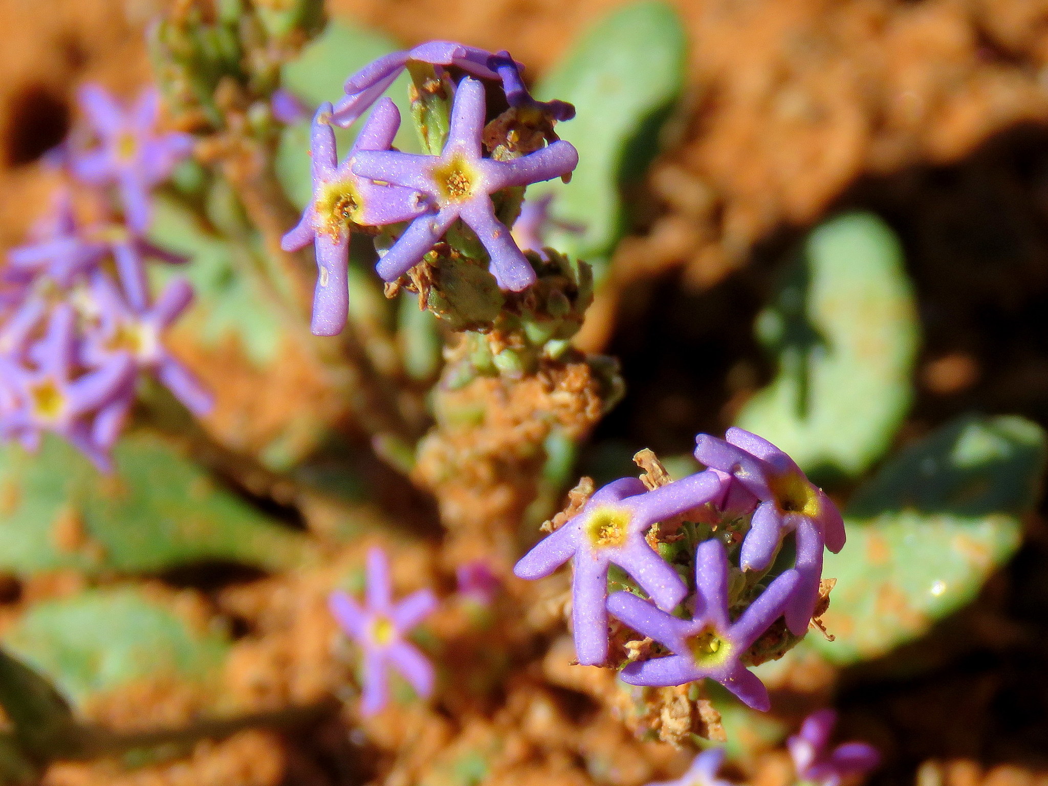 General notes: Habitat: Karoo, veld type 28. Well-drained soil, red-brown sandy soil. Plateau. Roadside. Herb, 0.03m. Annual, prostrate. Flowers: white, yellow, purple. Local, common.