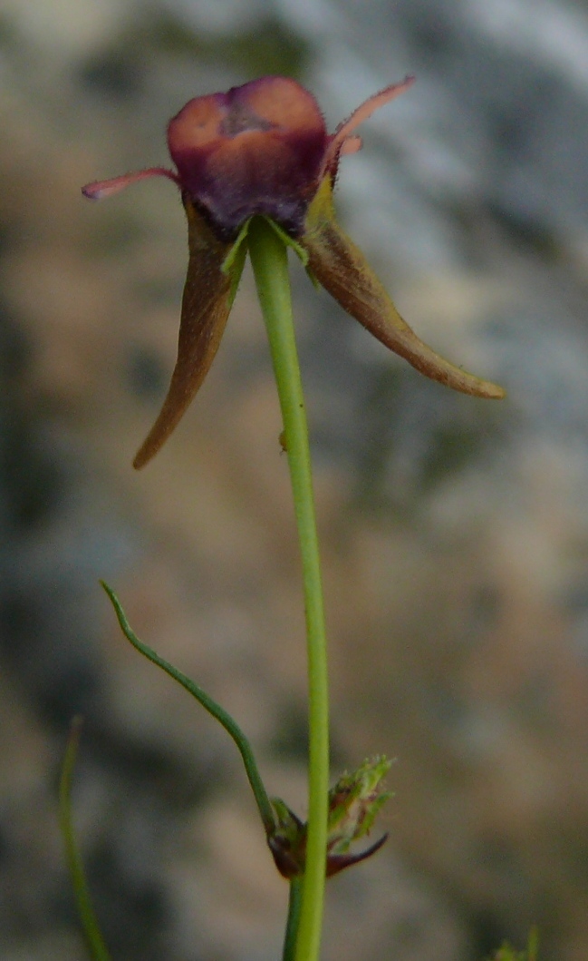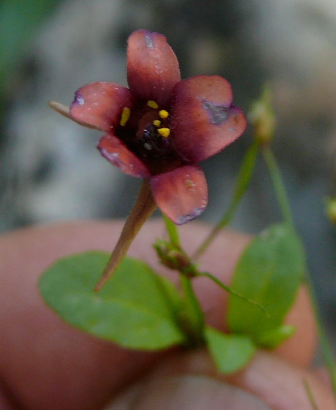 General notes: Herb, growing in moist rock pocket. Flowers reddish-purple with darker centre. Small dense population.