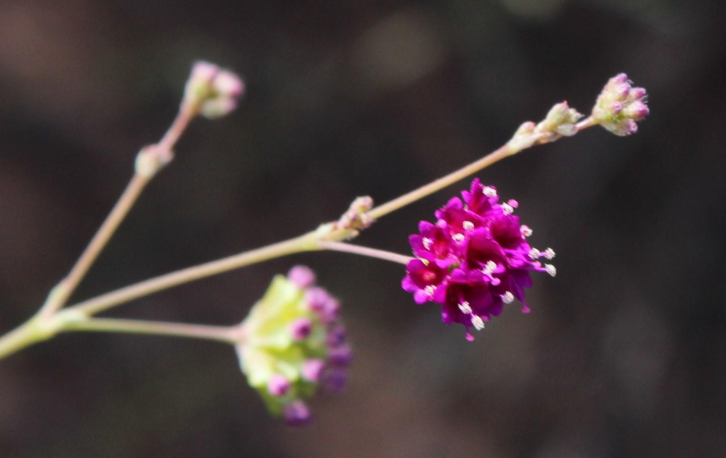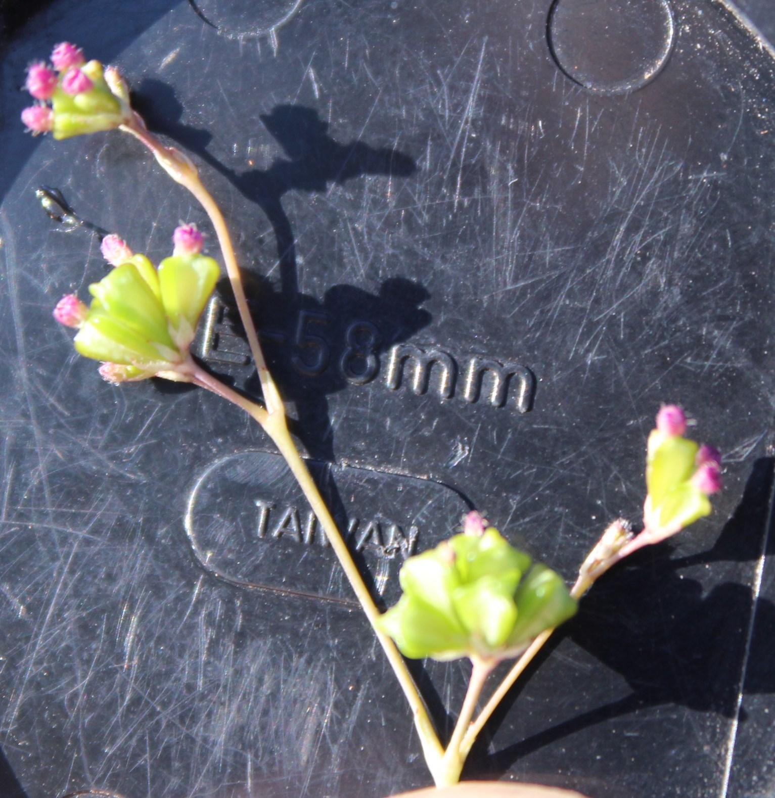 General notes: Small shrub 0.020 m tall. Tiny 2 mm red flowers in clusters on stalk.