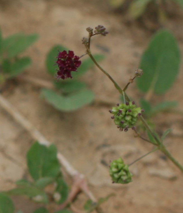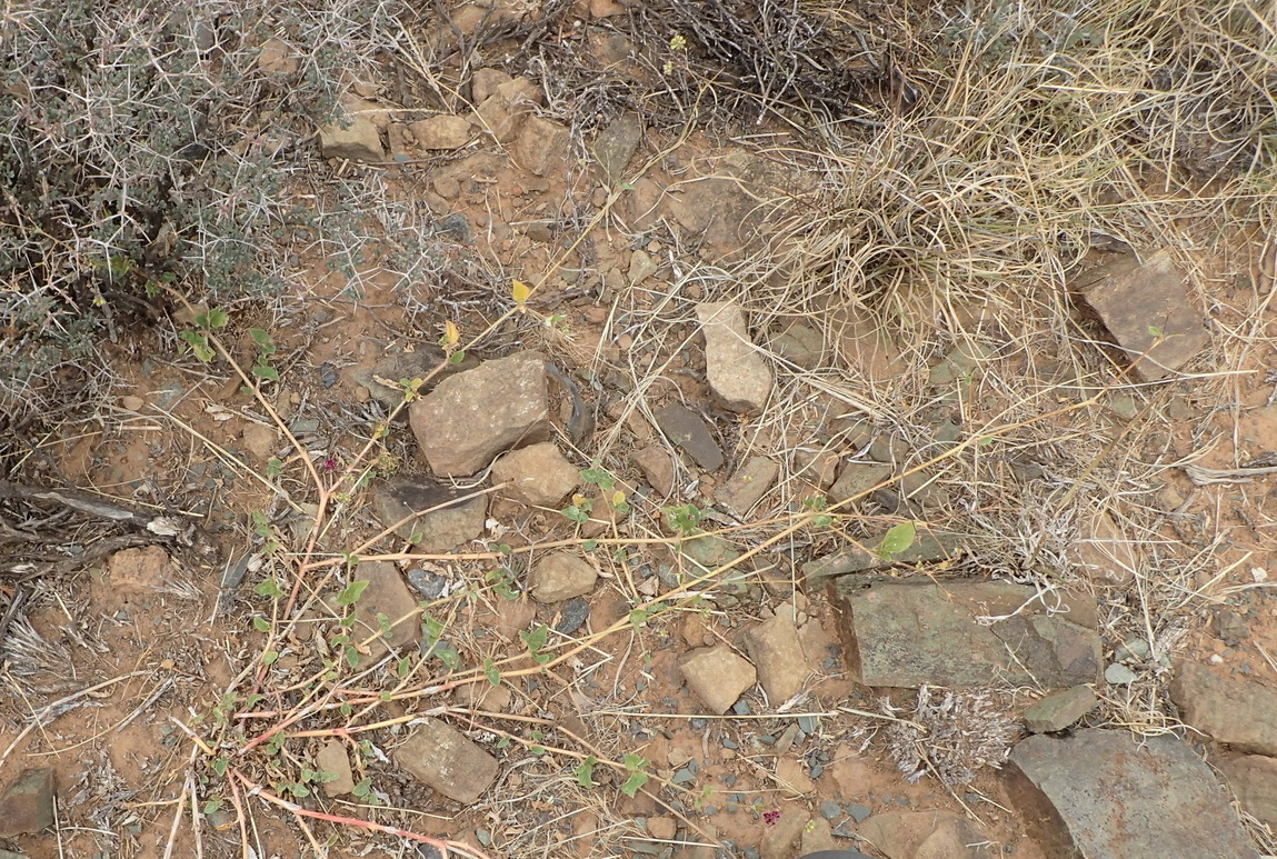 General notes: Arid karroo and false grassveld. Sandy soil. Flat slope. Prostrate herb. Long trailing stems, reddish tinged. Flowers small purple, axillary.