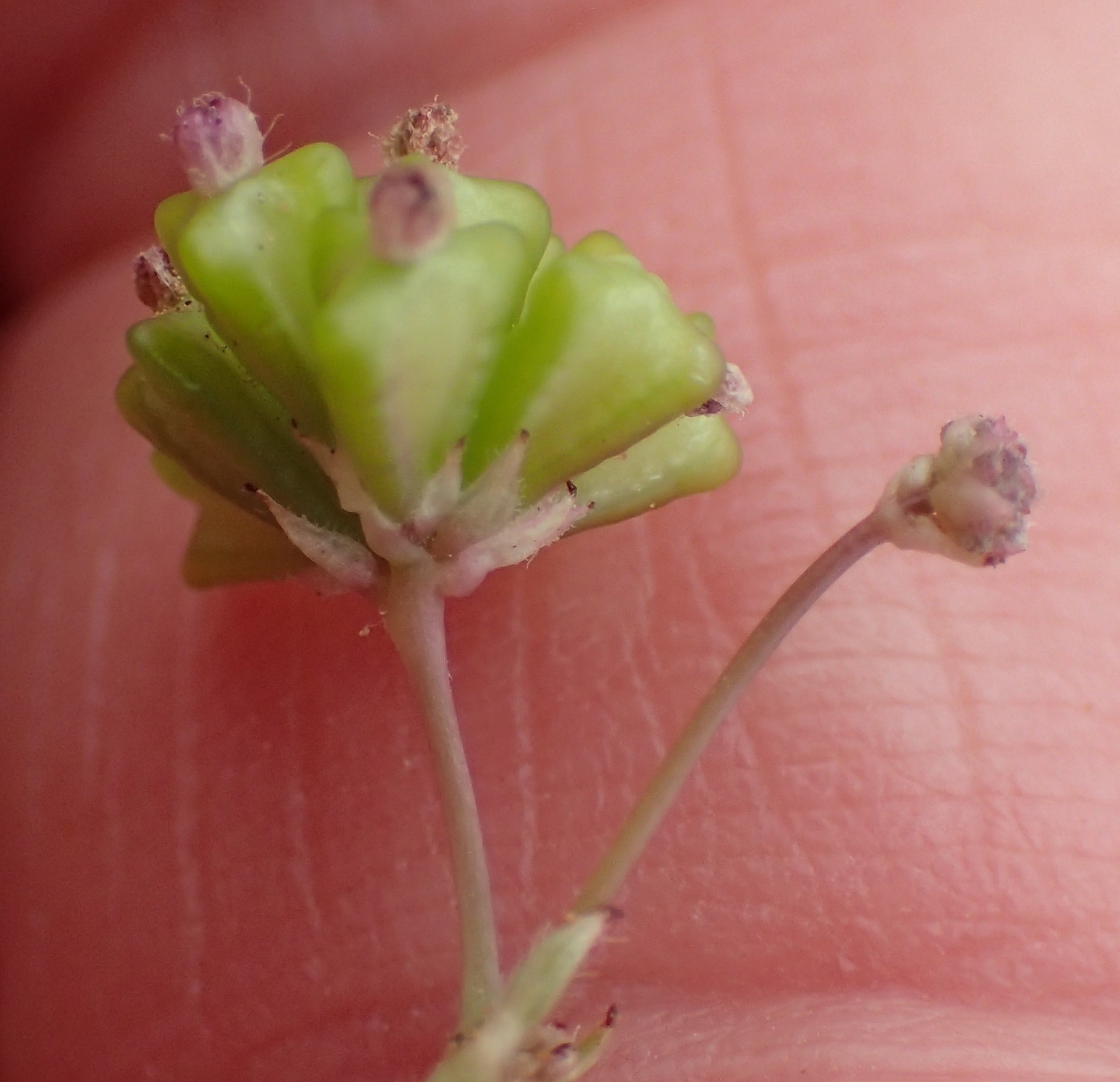 B. cordobensis can be distinguished from other members of Boerhavia in southern Africa by the clavate anthocarp with 3 or 4 wings and a broadly truncate apex. From: Struwig, M; Siebert, SJ. 2013. A taxonomic revision of Boerhavia (Nyctaginaceae) in southern Africa. S. African J. Bot. 86: 116-134. [Copyright held by the South African Association of Botanists (2013); http://www.sciencedirect.com/science/journal/02546299] [CC BY]
