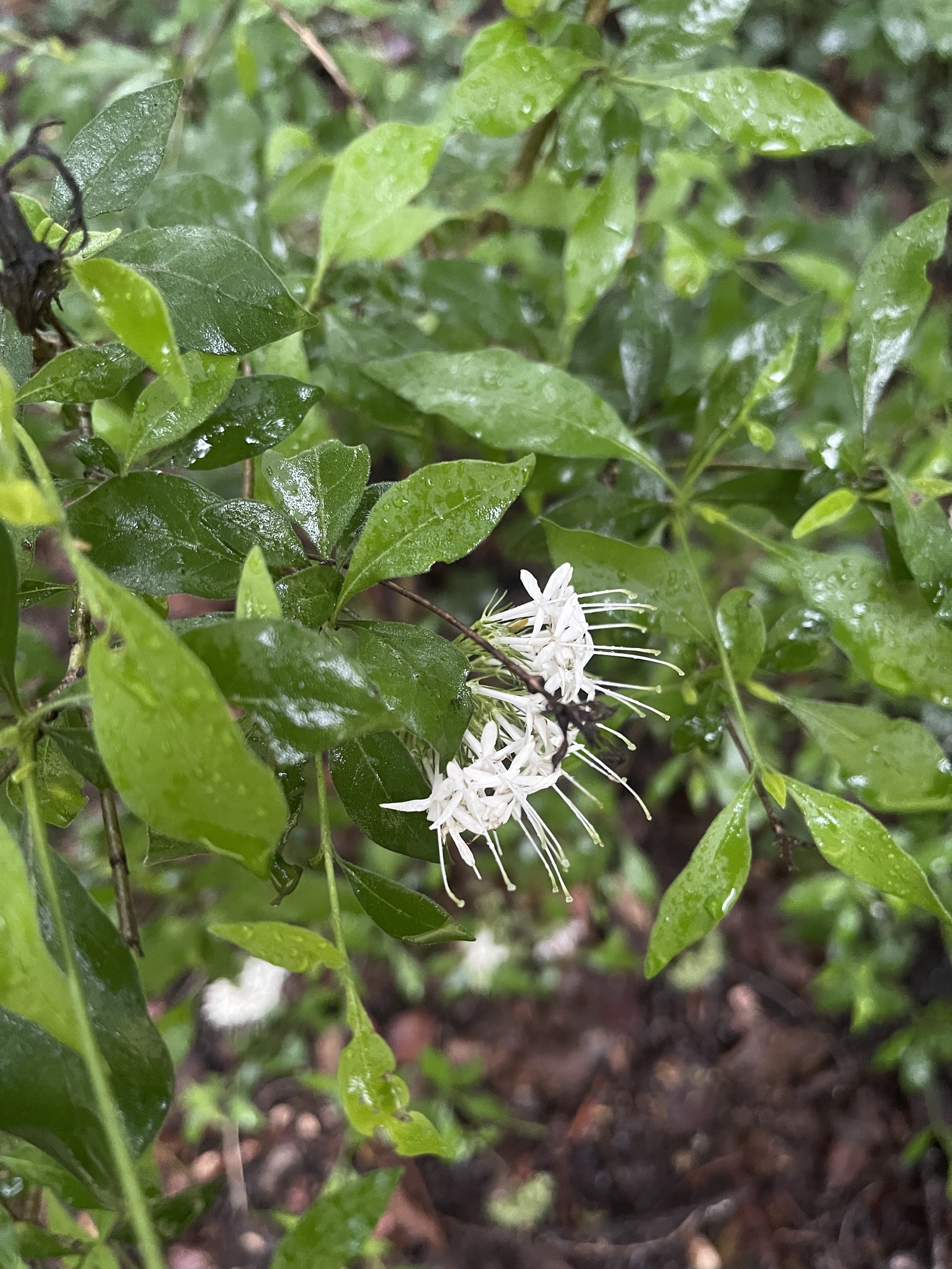 General notes: Shrub, up to c. 1.5m tall; Flowers white. Vegetation type: rocky woodland. Substrate: soil. Moisture regime: well drained. Soil type: loam. Exposure: partial shade. Slope: moderate. Aspect: South East. Notes: occasional.