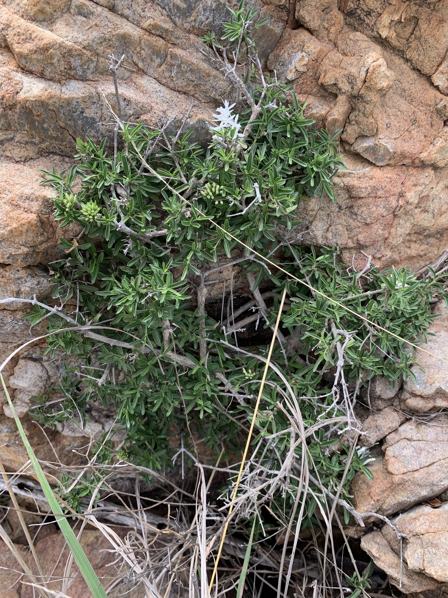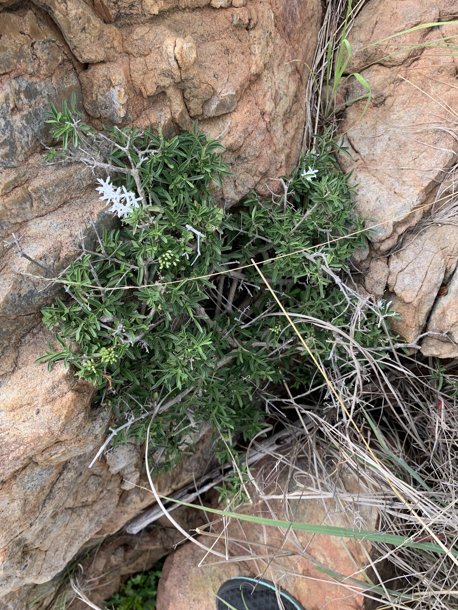 General notes: Dwarf shrub, up to c. 0.80m tall; Flowers white. Vegetation type: Rocky woodland. Substrate: soil. Moisture regime: well drained. Soil type: loam. Exposure: full sun. Slope: moderate. Aspect: North West. Notes: occasional.