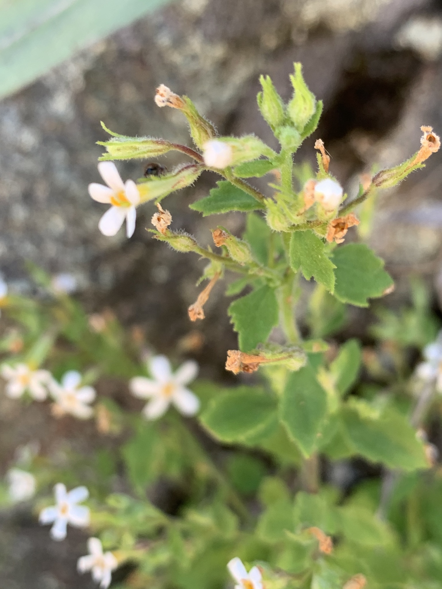 Perennial herb, up to 1 m tall. Leaves usually ovate, largest blades 10-40 x 10-30 mm, short-petiolate, with shortly toothed margins. Inflorescence a panicle with flowers arranged in cymes or cymose racemes. Flowers with lobes white or creamy white to shades of mauve, tube yellow. From: Retief, E; Herman, PPJ. 1997. Plants of the northern provinces of South Africa: Keys and diagnostic characters. Strelitzia 6: 1-681. National Botanical Institute, Pretoria. [CC BY] As: Sutera floribunda (Benth.) Kuntze