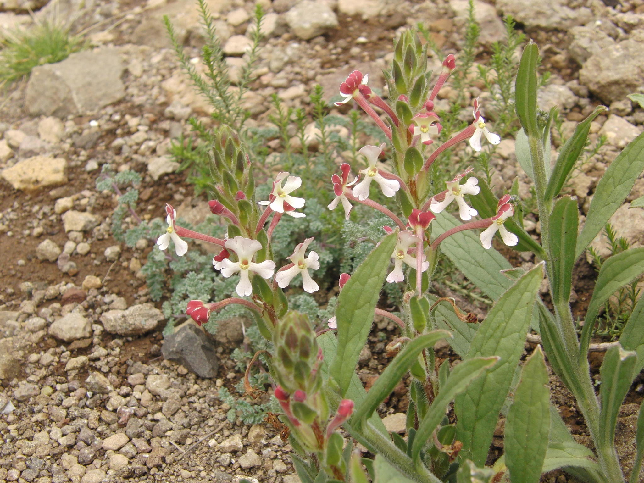 General notes: Grassland. In loam. Full sun. Aspect: NE. Erect herb ca 15 cm tall. White flowers. Petals red undersurface.