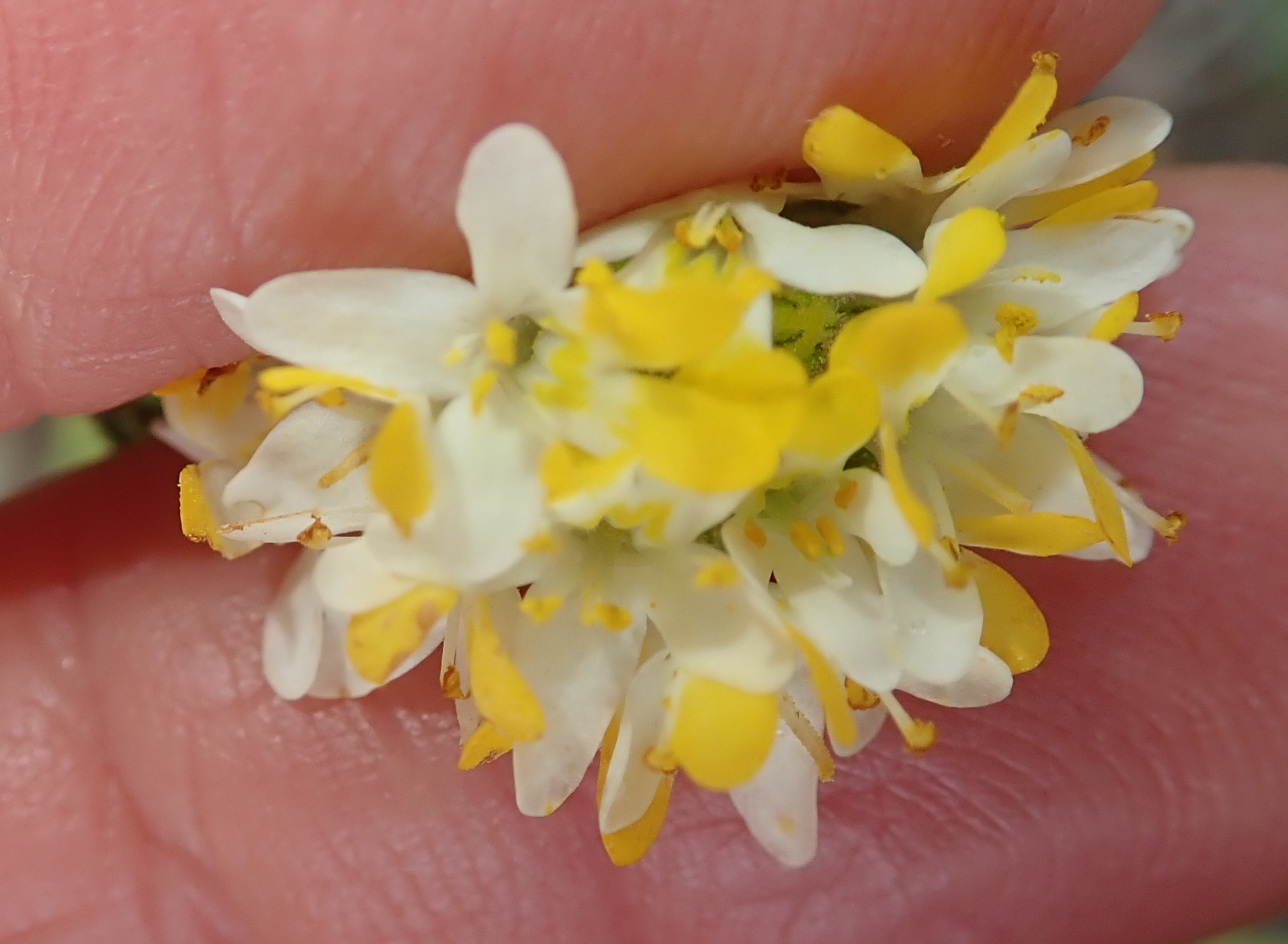 Shortly glandular-hairy annual to 20 cm. Leaves narrow and sparsely toothed. Flowers in small, terminal heads, yellow or upper lip white tipped yellow, tube short and glabrous, 3-6 mm long. From: Manning, JC; Goldblatt, P. 2012. Scrophulariaceae: Polycarena Benth. In: J Manning & P Goldblatt (eds), Plants of the Greater Cape Floristic Region 1: The Core Cape flora. Strelitzia 29: 752-752. South African National Biodiversity Institute, Pretoria. [CC BY]