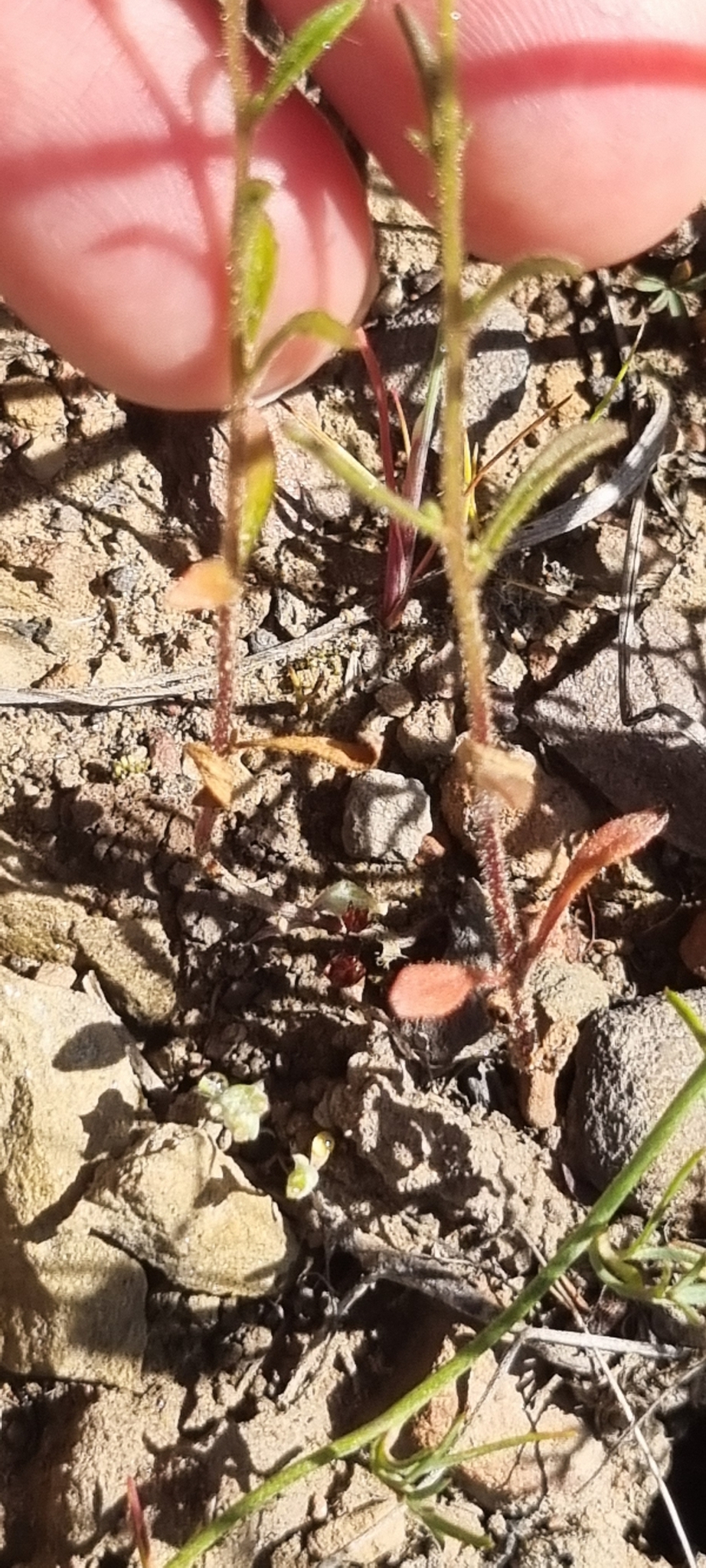 General notes: Karoo vegetation. River/streambank. Temporary free water above ground. Grey-brown, sandy, stony soil. No disturbance. No aspect. Level slope. Local occasional. Annual, erect herb. Flowers white. No fruit. Plant height: 0.10m.