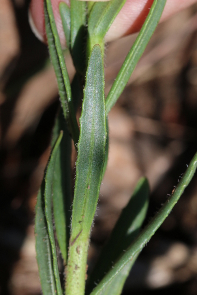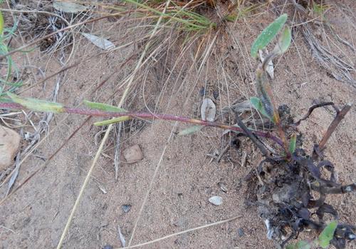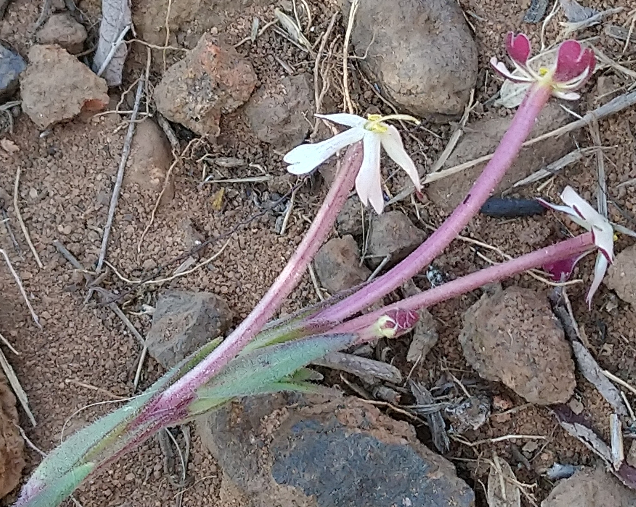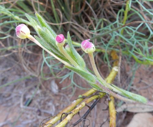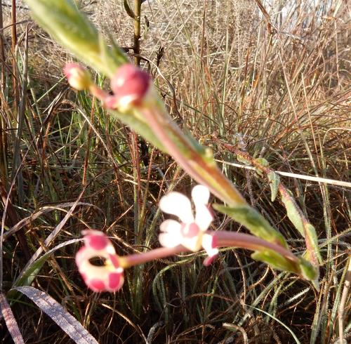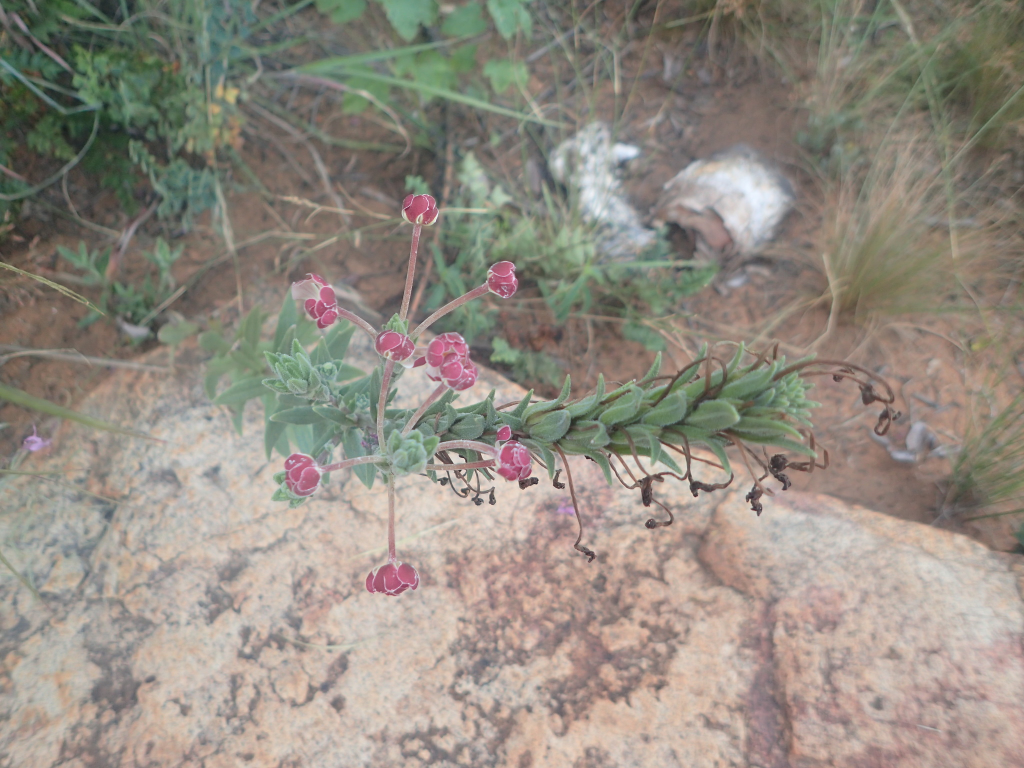 Perennial herb, up to 0.6 m high; vegetative buds, when present, small not developing into a thick clump. Stems several from crown of old plants; clad in retrorse white hairs. Leaves with blade oblong-elliptic to linear, 15-25 x 1.5 mm, margins entire or with few, small, callose teeth, glabrous with a few hairs on margins and midline. Flowers: slightly zygomorphic; many, arranged in lax, elongated spikes; corolla tube 30-40 mm long, limb held vertically, mouth with circlet of long unicellular hairs, lobes deeply notched, outer surface reddish pink to crimson, inner surface white; Oct.-Apr., opening at dusk or dull light. From: Bester, SP; Retief, E; Meyer, NL. 2017. Scrophulariaceae. In: E Retief & NL Meyer (eds), Plants of the Free State: Inventory and identification guide. Strelitzia 38: 755-793. South African National Biodiversity Institute, Pretoria. [CC BY]