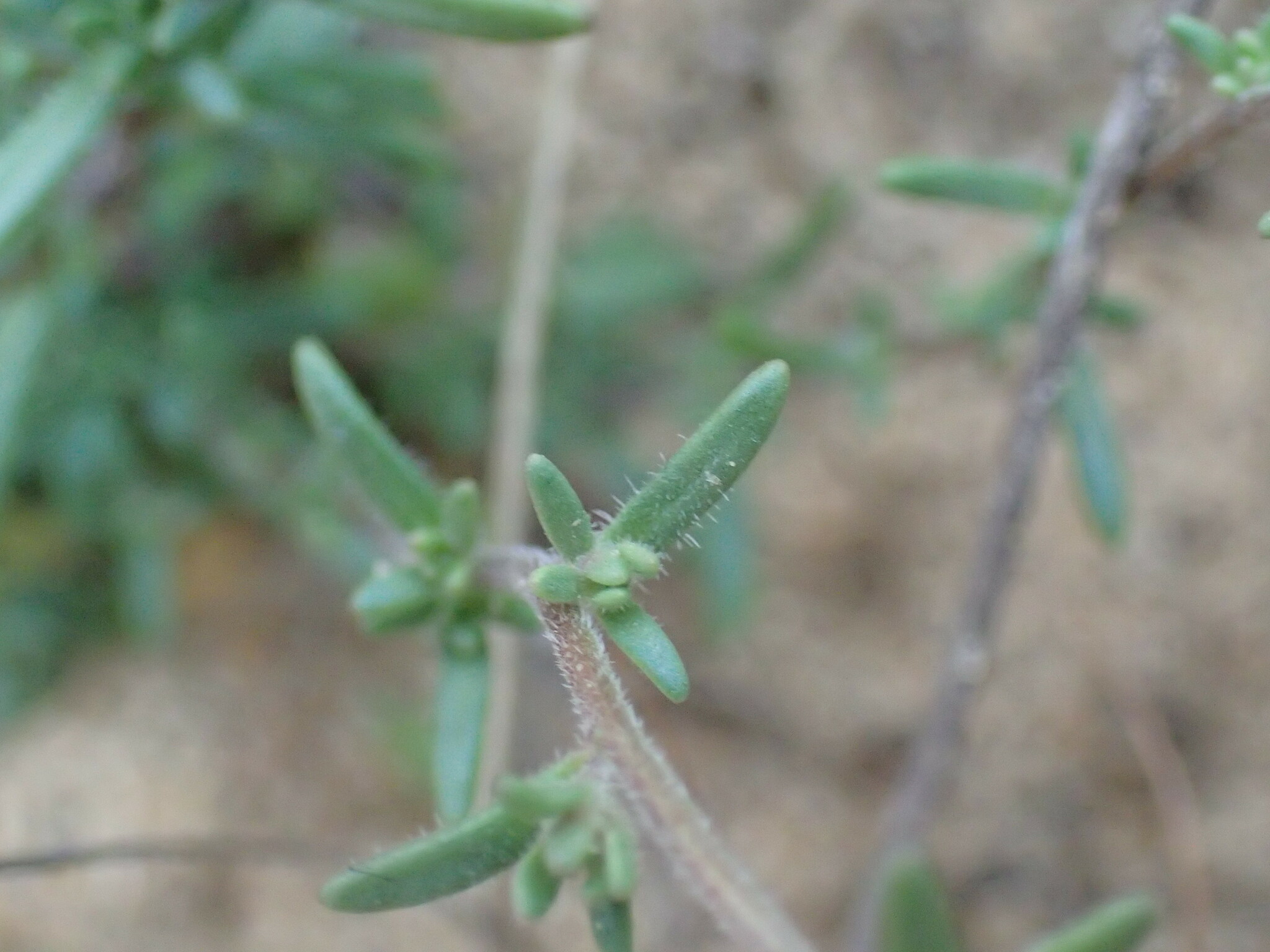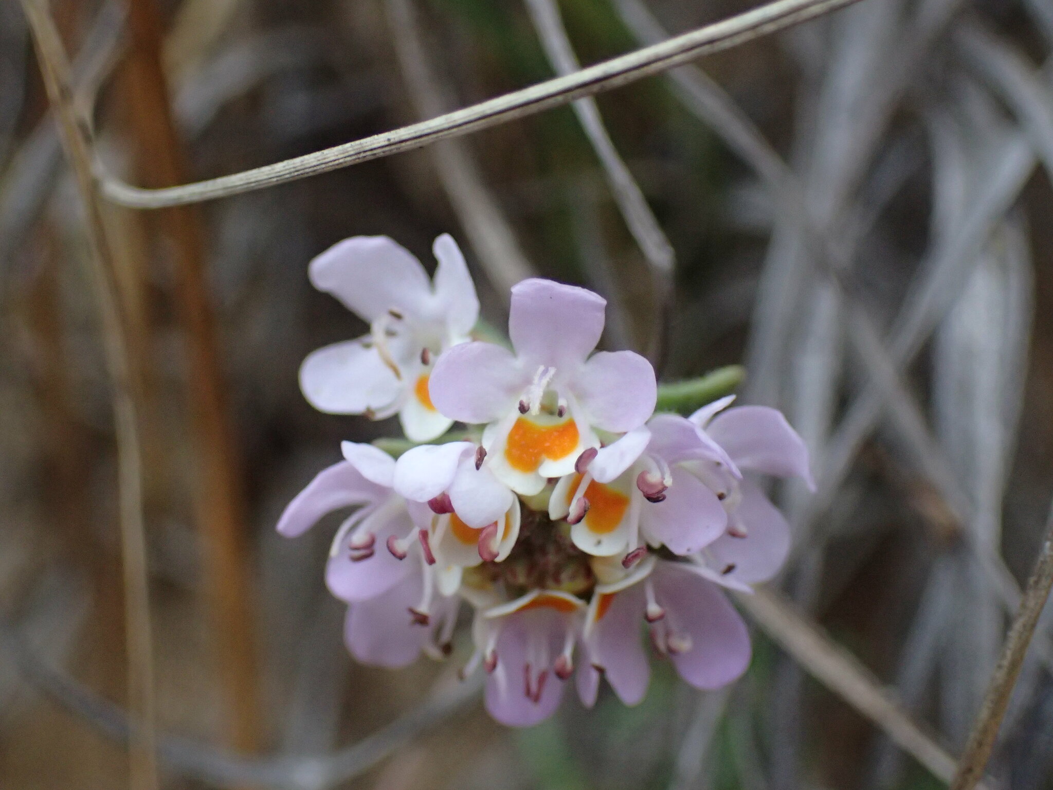 Decumbent annual herb, up to 150 mm tall, much-branched, viscid-pubescent, very leafy. Spikes dense, globose in flower. Flowering calyx or nearly equalling bract. Flowers mauve and orange. From: Retief, E; Herman, PPJ. 1997. Plants of the northern provinces of South Africa: Keys and diagnostic characters. Strelitzia 6: 1-681. National Botanical Institute, Pretoria. [CC BY]