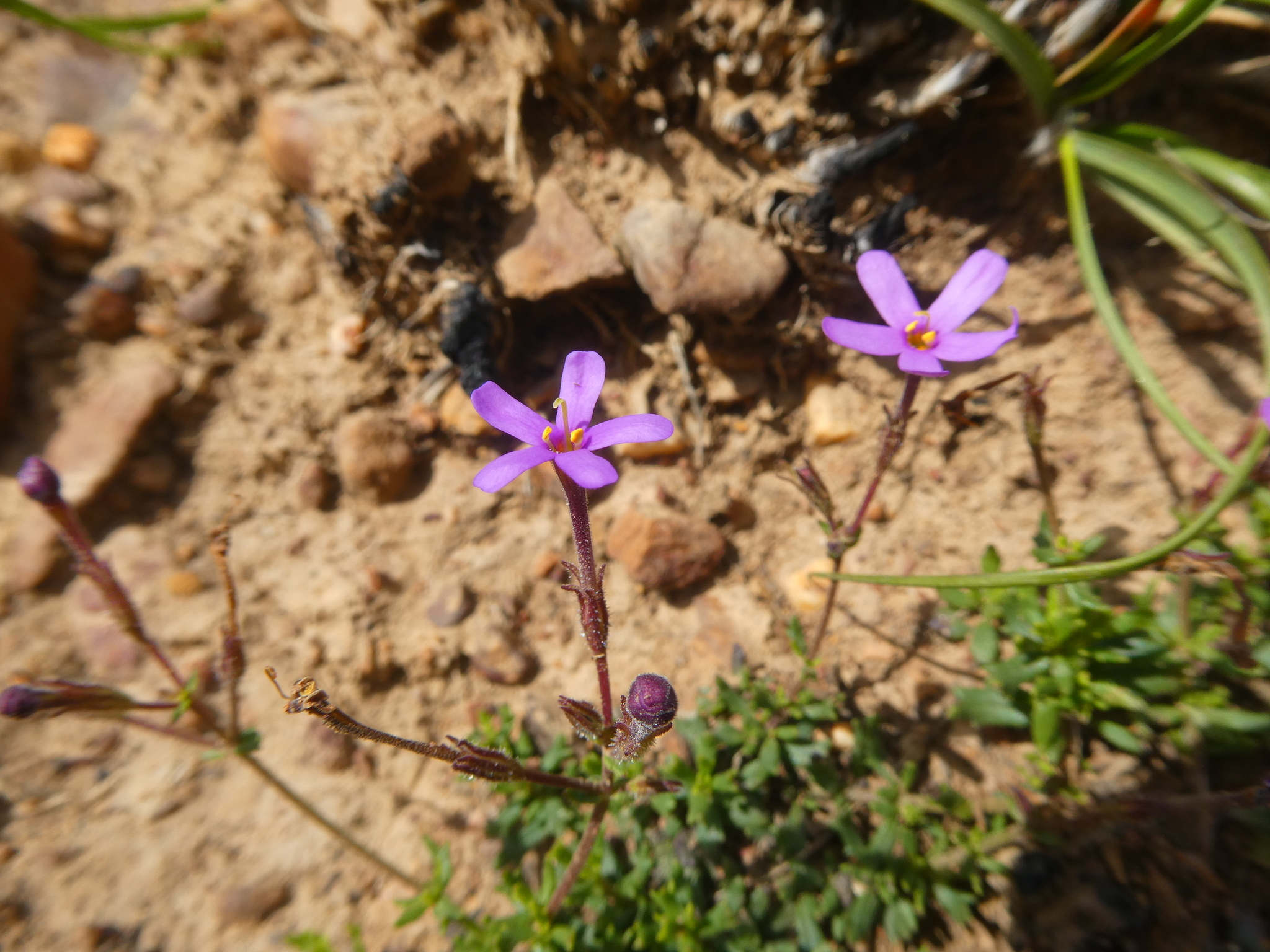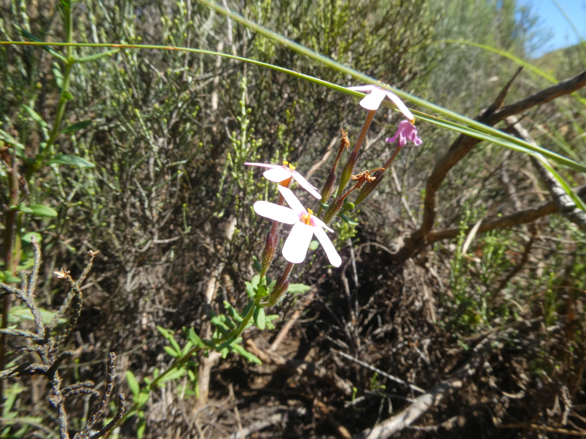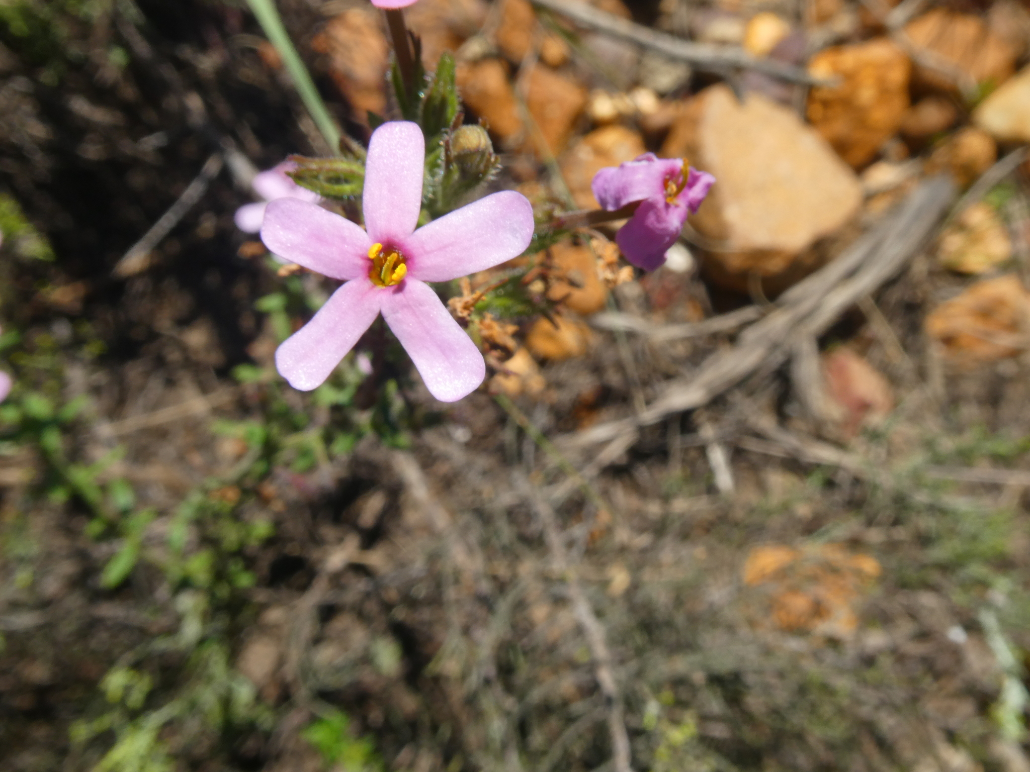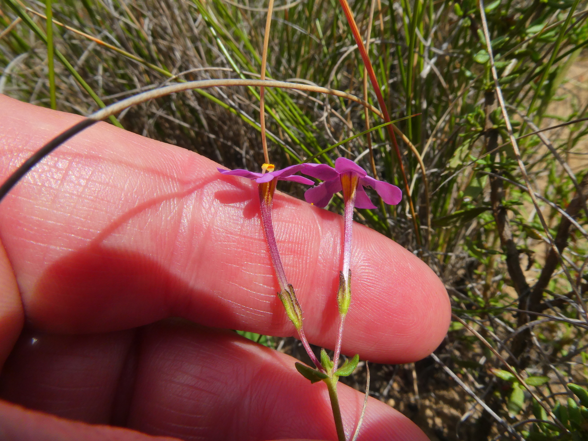 General notes: Shaly clay ground with short scattered rhenosterbos. Local group of scattered annuals. Tube purple/mauve, lobes white with long deep purple marklings.