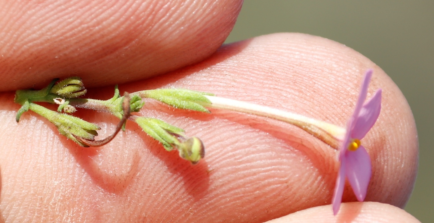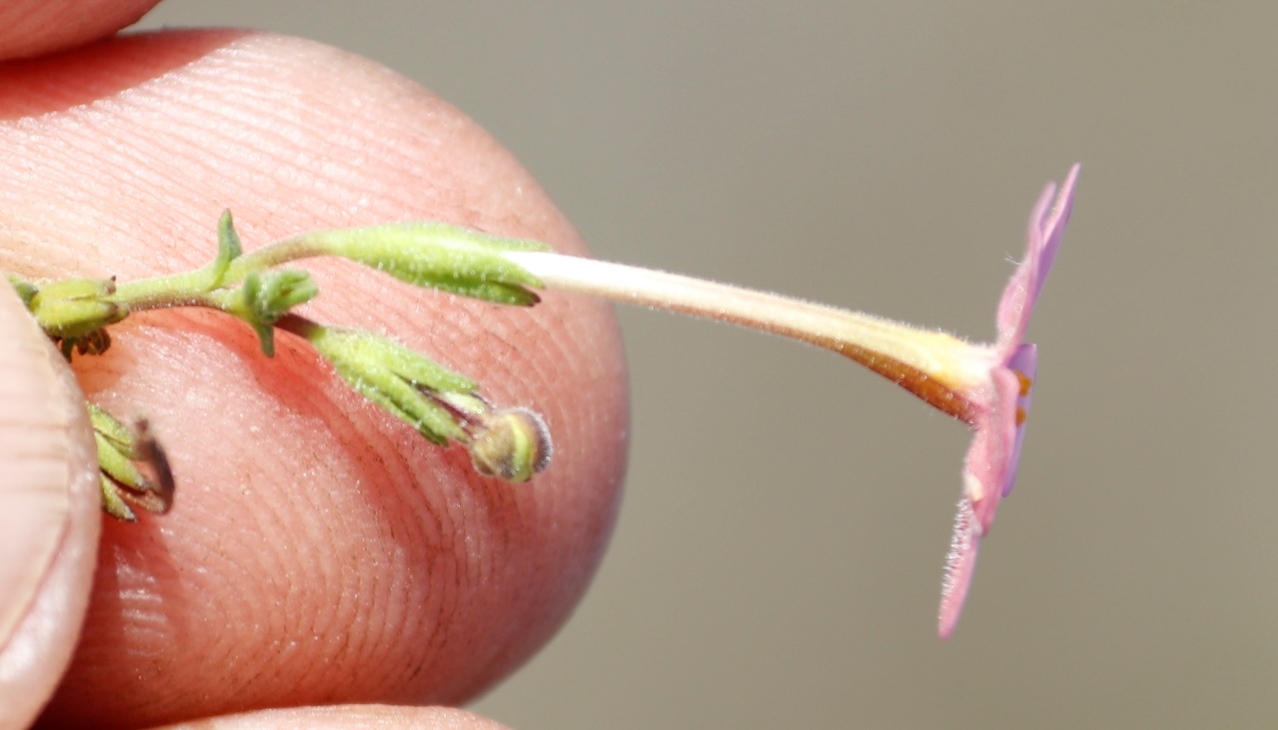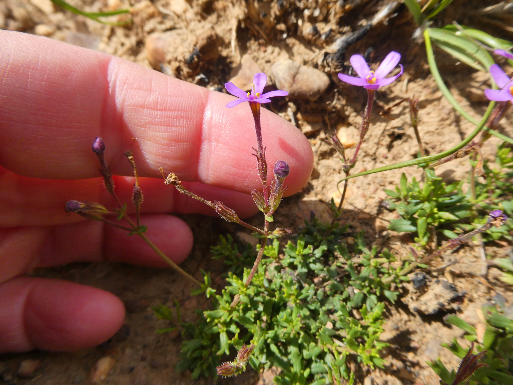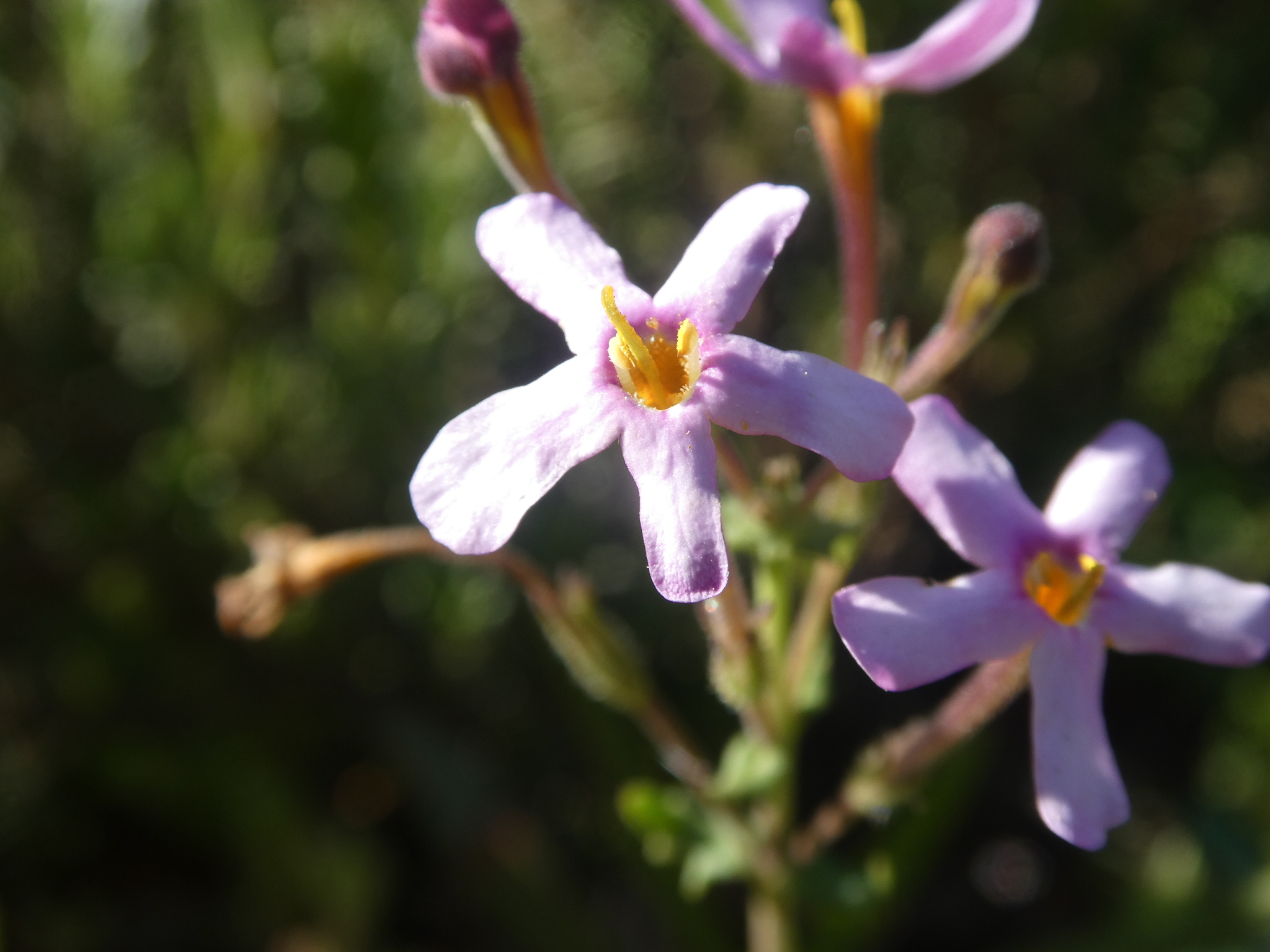 General notes: Shaly clay ground with short scattered rhenosterbos. Local group of scattered annuals. Tube purple/mauve, lobes white with long deep purple marklings.