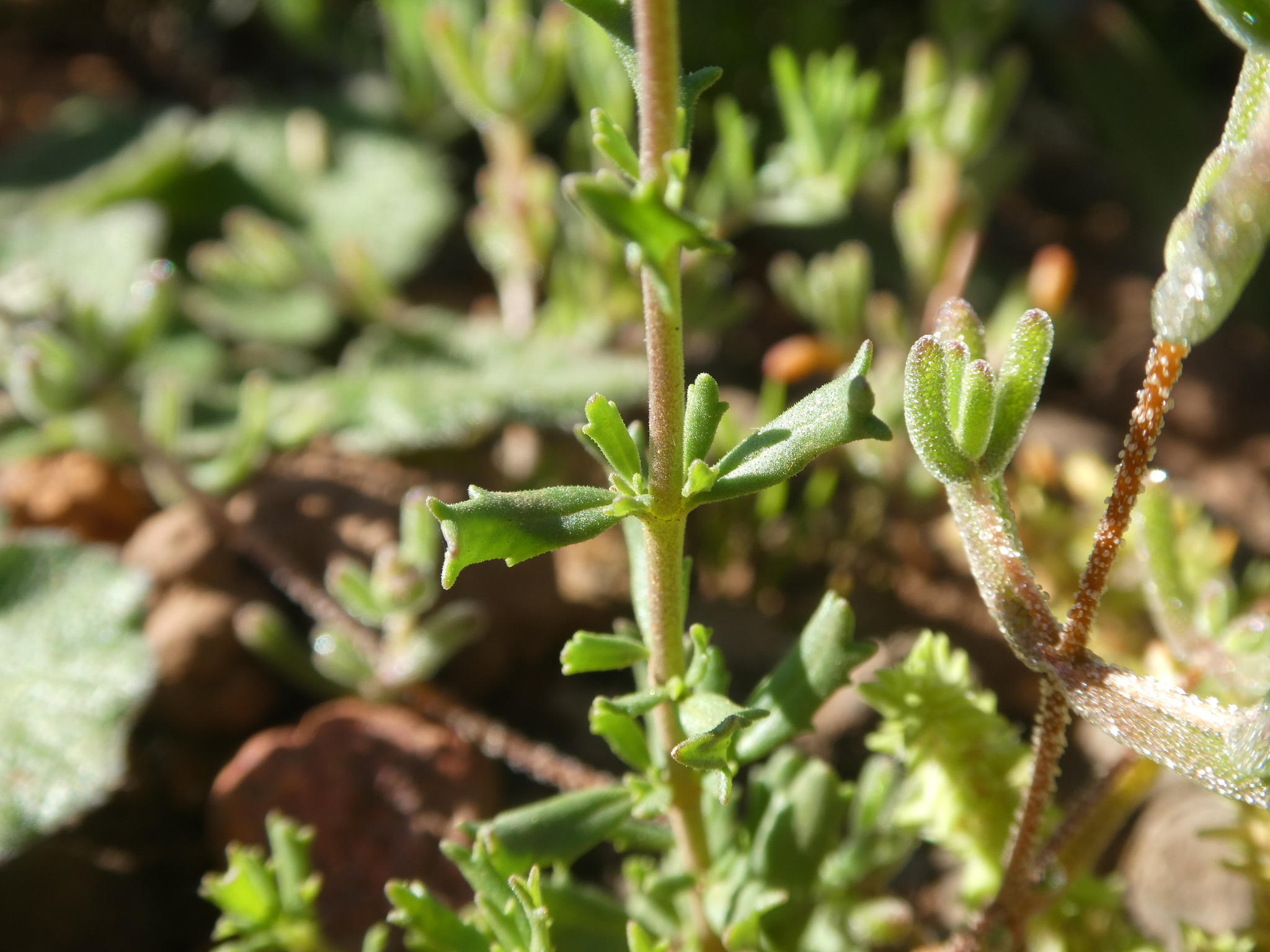 Twiggy, minutely glandular-hairy shrublet to 30 cm. Leaves crowded above, mostly coarsely toothed above. Flowers in short racemes, tube long, narrowly funnel-shaped, white, pink to violet with yellow throat. From: Manning, JC; Goldblatt, P. 2012. Scrophulariaceae: Chaenostoma Benth. In: J Manning & P Goldblatt (eds), Plants of the Greater Cape Floristic Region 1: The Core Cape flora. Strelitzia 29: 733-735. South African National Biodiversity Institute, Pretoria. [CC BY]