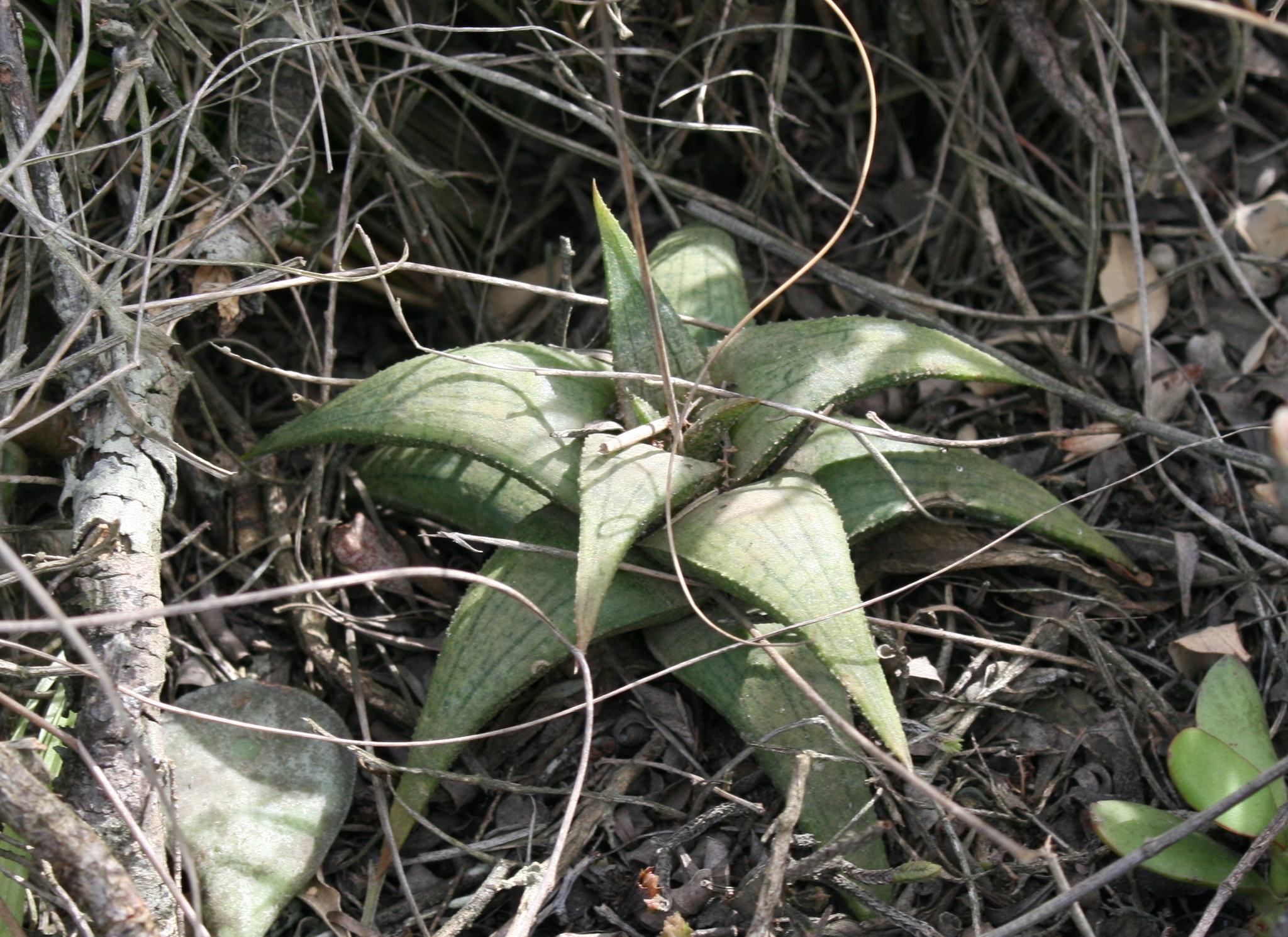 It occurs from near the coast to about 50 km inland, at altitudes up to 140 m. It is a constituent of Fynbos and grows in sandy soil in rock crevices which contain small deposits of very humus-rich soil derived from sandstone, mainly on east facing slopes. The annual rainfall, distributed throughout the year, is about 480 mm. H. venosa prefers a firm sandy soil with pH 6. From: Scott, CL. 1985. The genus Haworthia (Liliaceae): a taxonomic revision. Aloe Books, Johannesburg. [All rights reserved] As: Haworthia venosa (Lam.) Haw.
