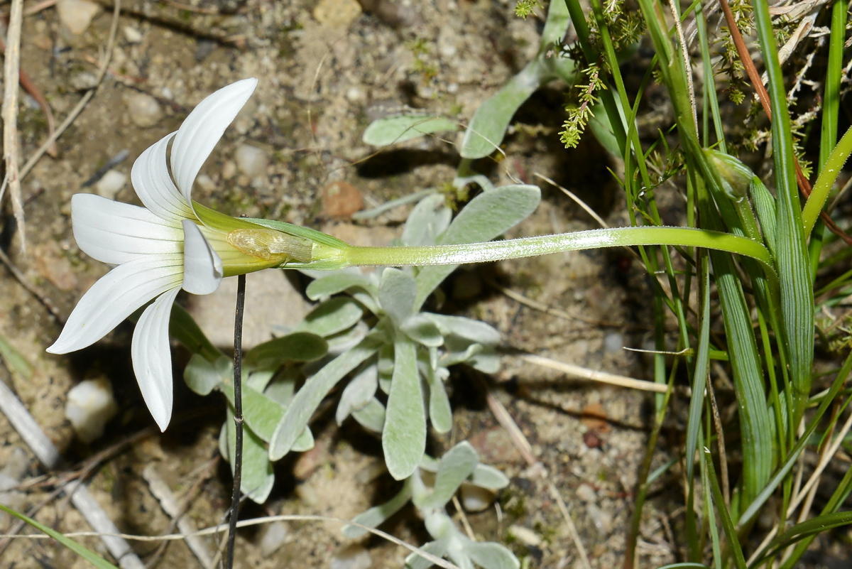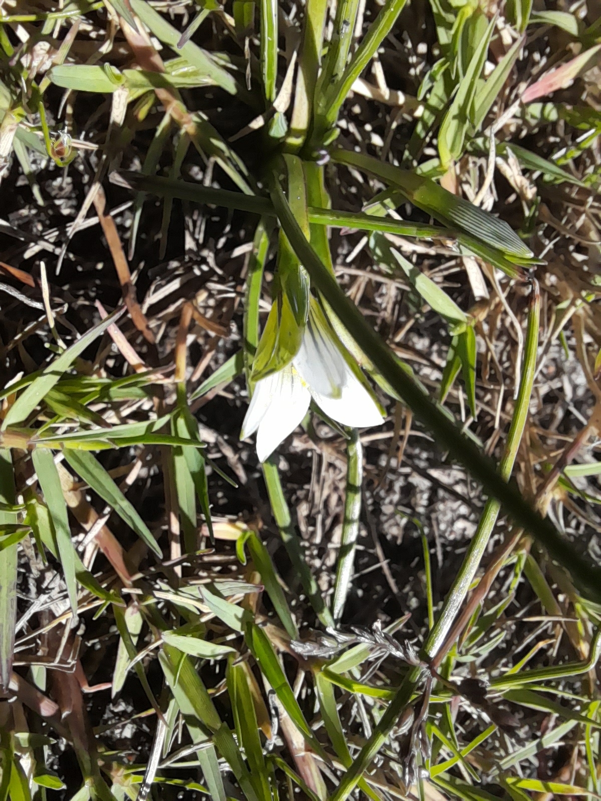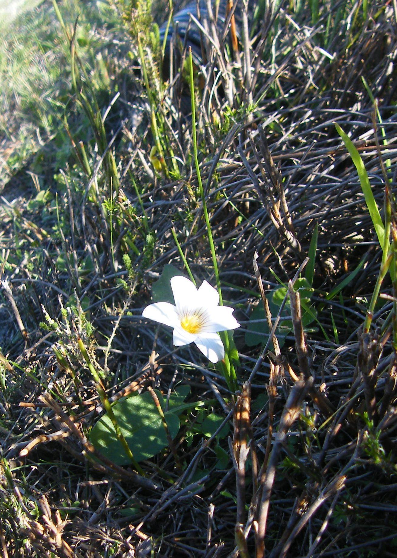 General notes: Fynbos biome. Vegetation type: Renosterveld. Well-drained, stony and clay soil. Granite. Full sun. Gentle slope. Abandoned land. Geophyte. Flowers: present. Plant height: 20 cm.