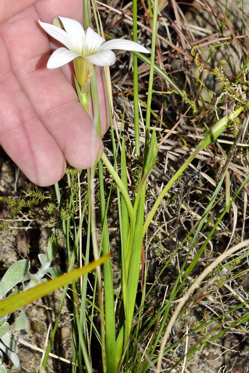 Recognised by the solitary, often rather swollen basal leaf, the cauline leaves typically with wide sheathing bases, the entirely membranous or submembranous inner bracts, and the canary-yellow or white to pale blue flowers. A common, widely distributed and polymorphic species varying greatly in size, growth form, leaf thickness and ciliation, and flower colour. Flower colour is genetically determined but growth form is at least partly influenced by growing conditions. From: Goldblatt, P; Manning, JC. 2020. Iridaceae of southern Africa. Strelitzia 42: 1-1159. South African National Biodiversity Institute, Pretoria. [CC BY]