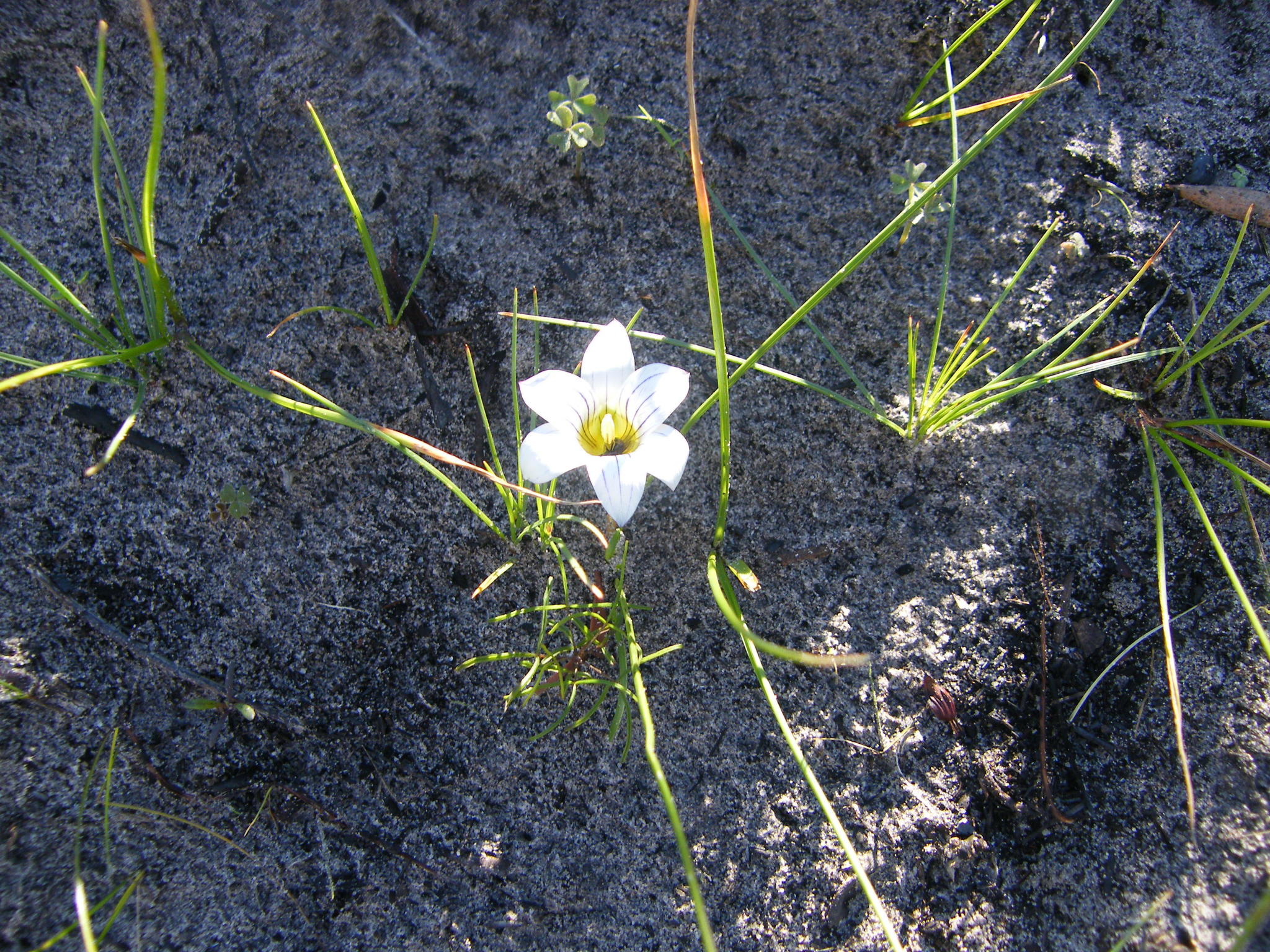 General notes: Both colour variants of this species frequently encounted throughout the Racecourse, especially within the portion burnt on 29th March, 2005; Here both variants growing in association with flowering plants of Moraea collina and Moraea flaccida, in moist, quartzitic sand with peatty accumulate; Flowers either with white tepals and yellow tube, or with an entirely yellow, both with a membranous bract.