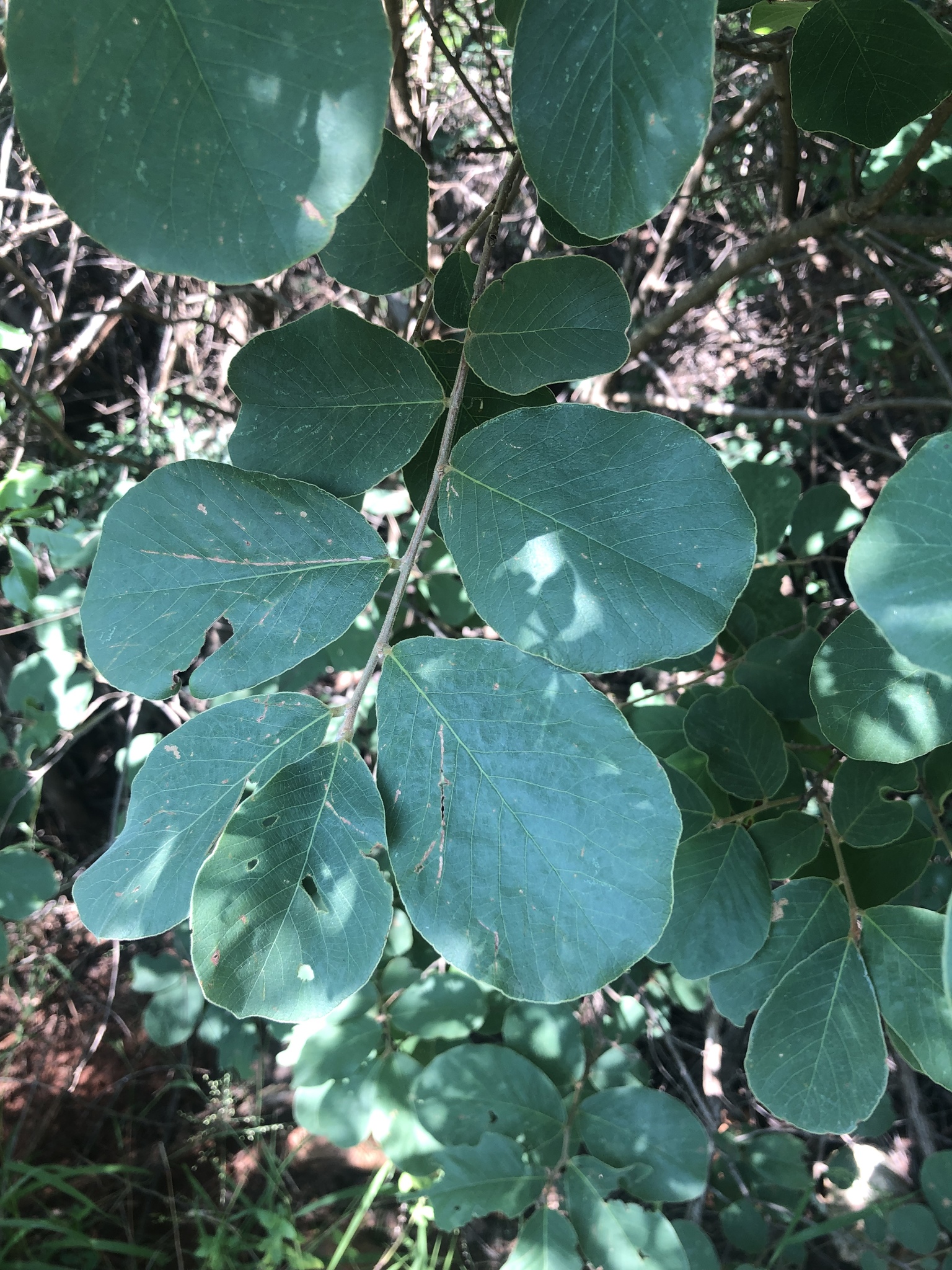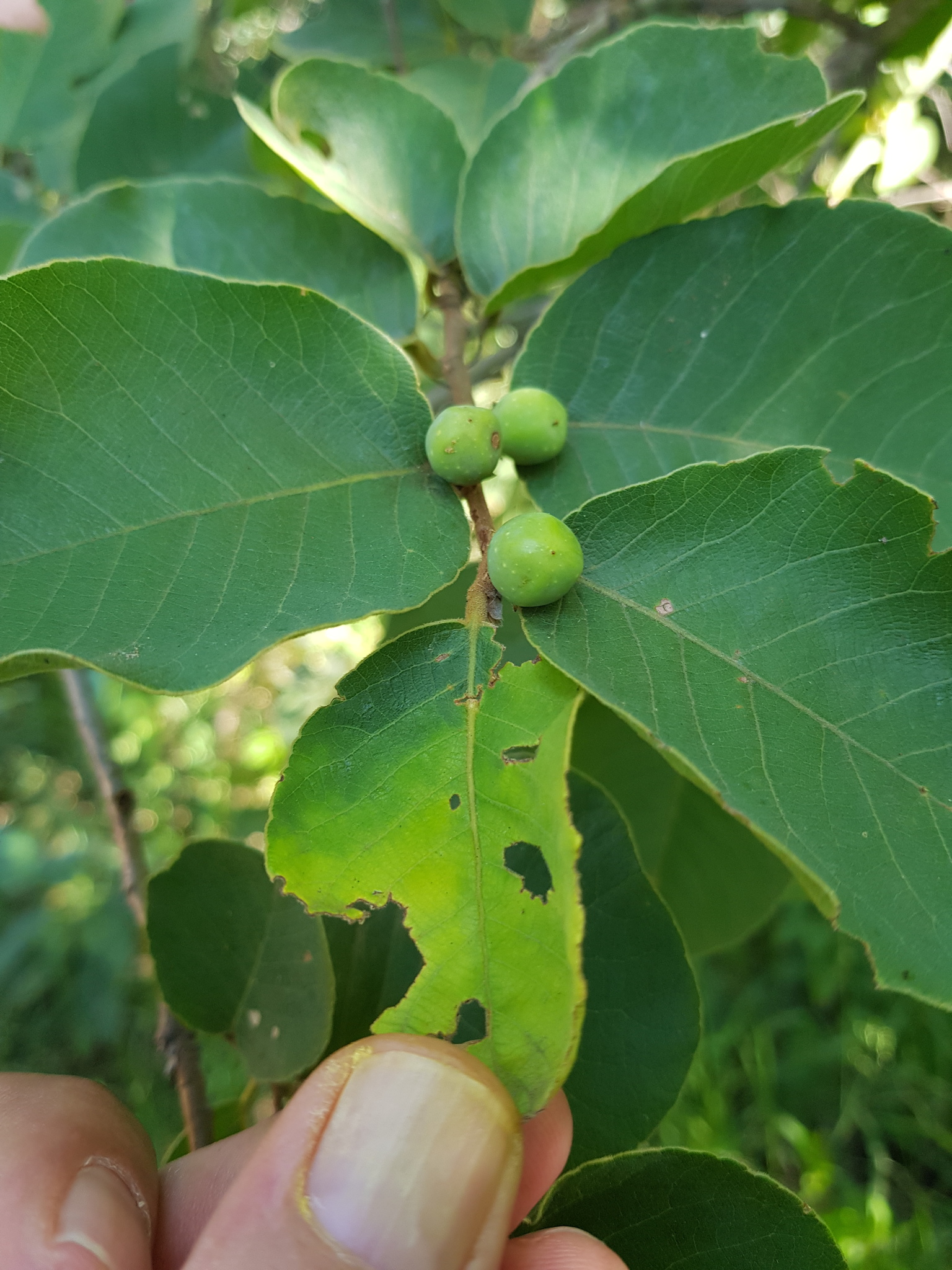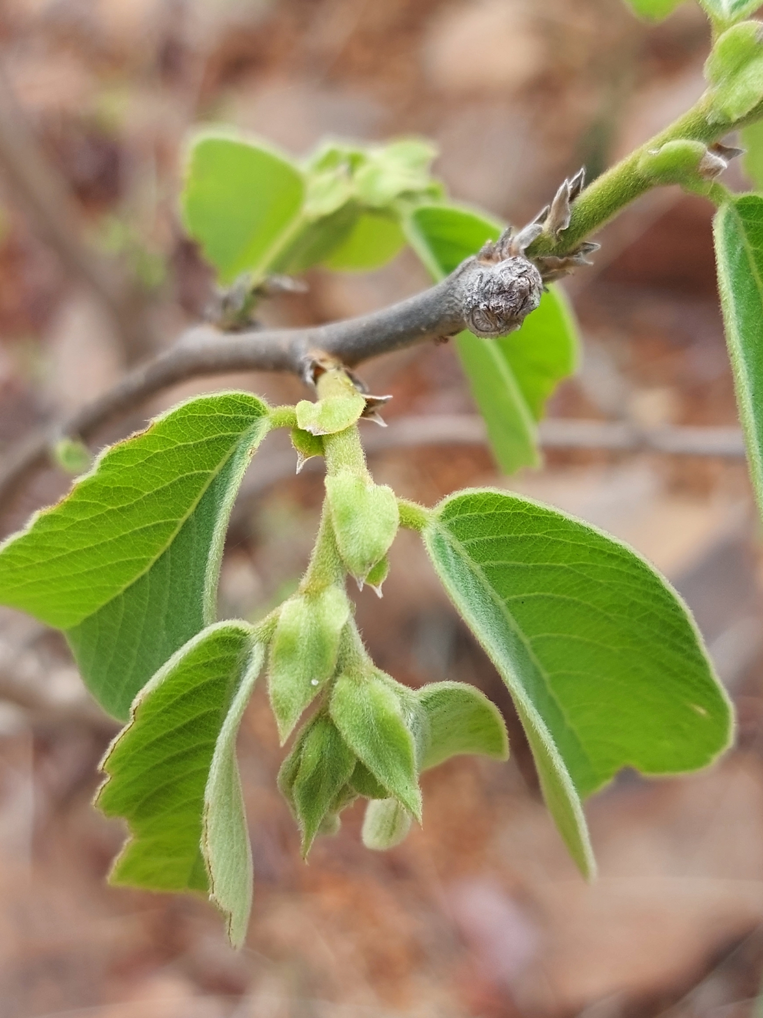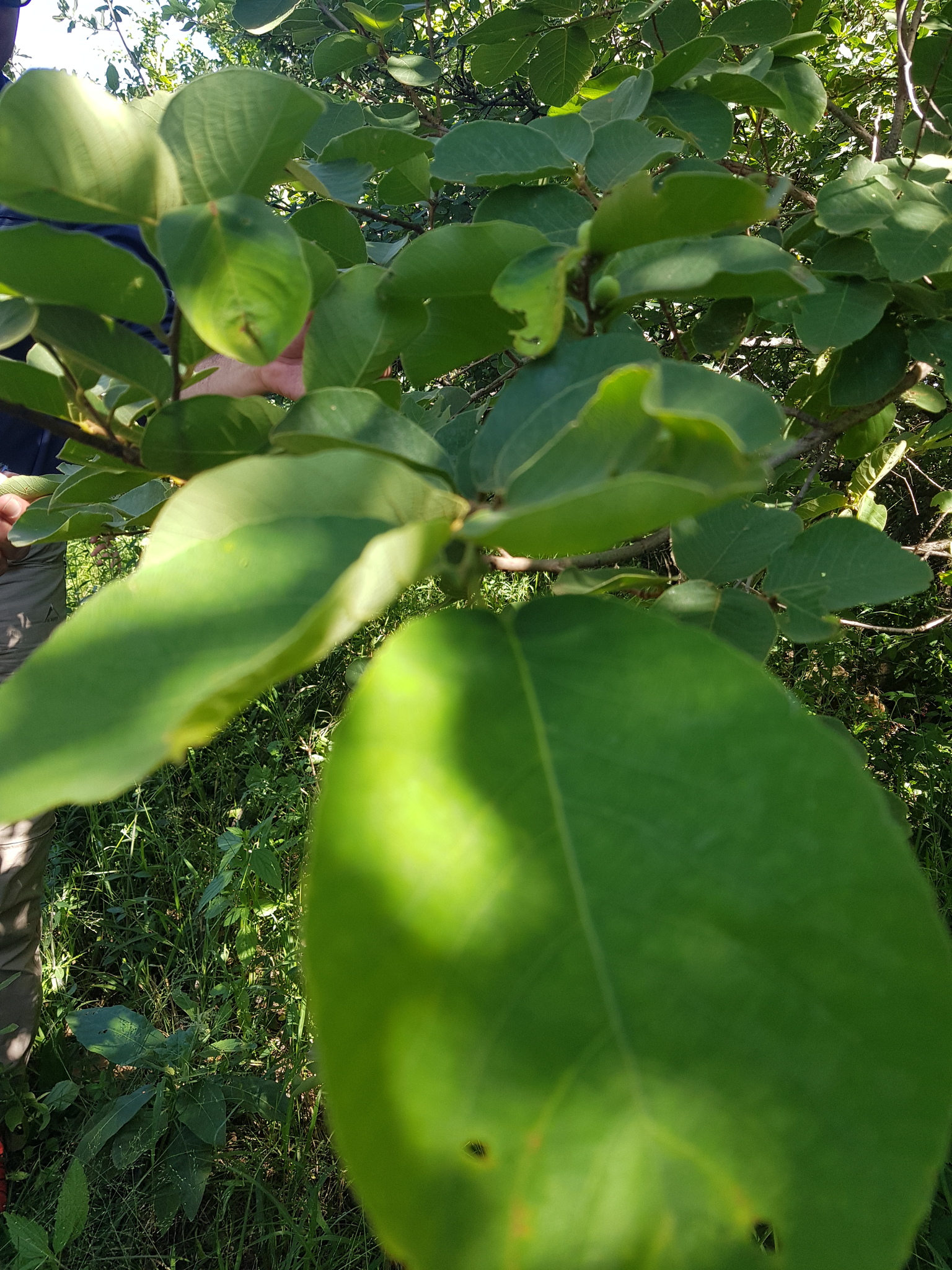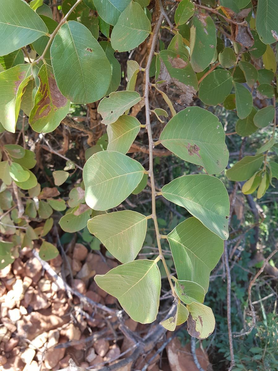 Shrub or small tree, up to 7 m high. Leaves ovate to obovate, 25-130 x 13-90 mm, apex broadly tapering and often notched, both leaf surfaces with dense velvety hairs, lateral veins terminating in margin. Flowers greenish yellow. From: Retief, E; Herman, PPJ. 1997. Plants of the northern provinces of South Africa: Keys and diagnostic characters. Strelitzia 6: 1-681. National Botanical Institute, Pretoria. [CC BY]
