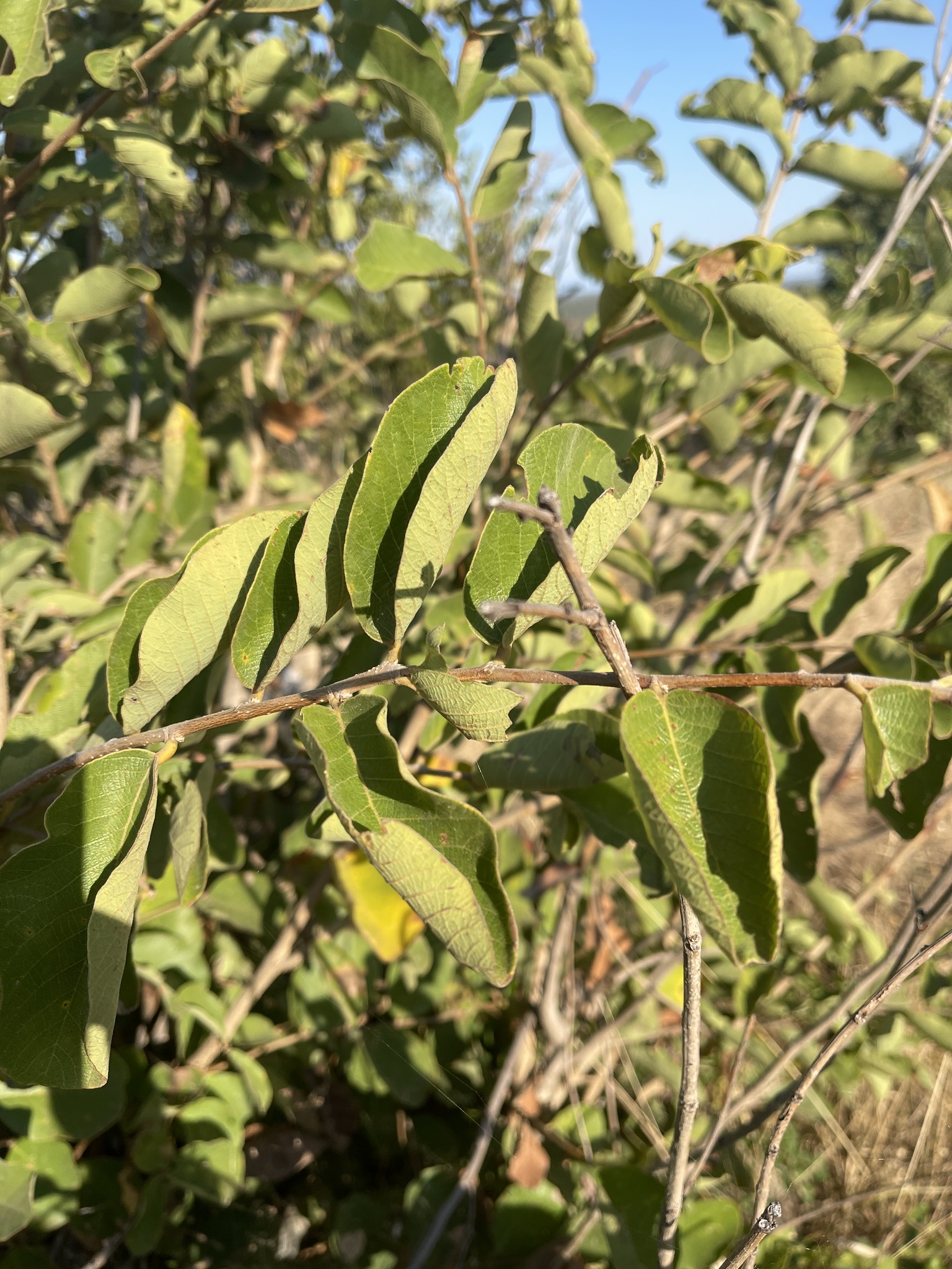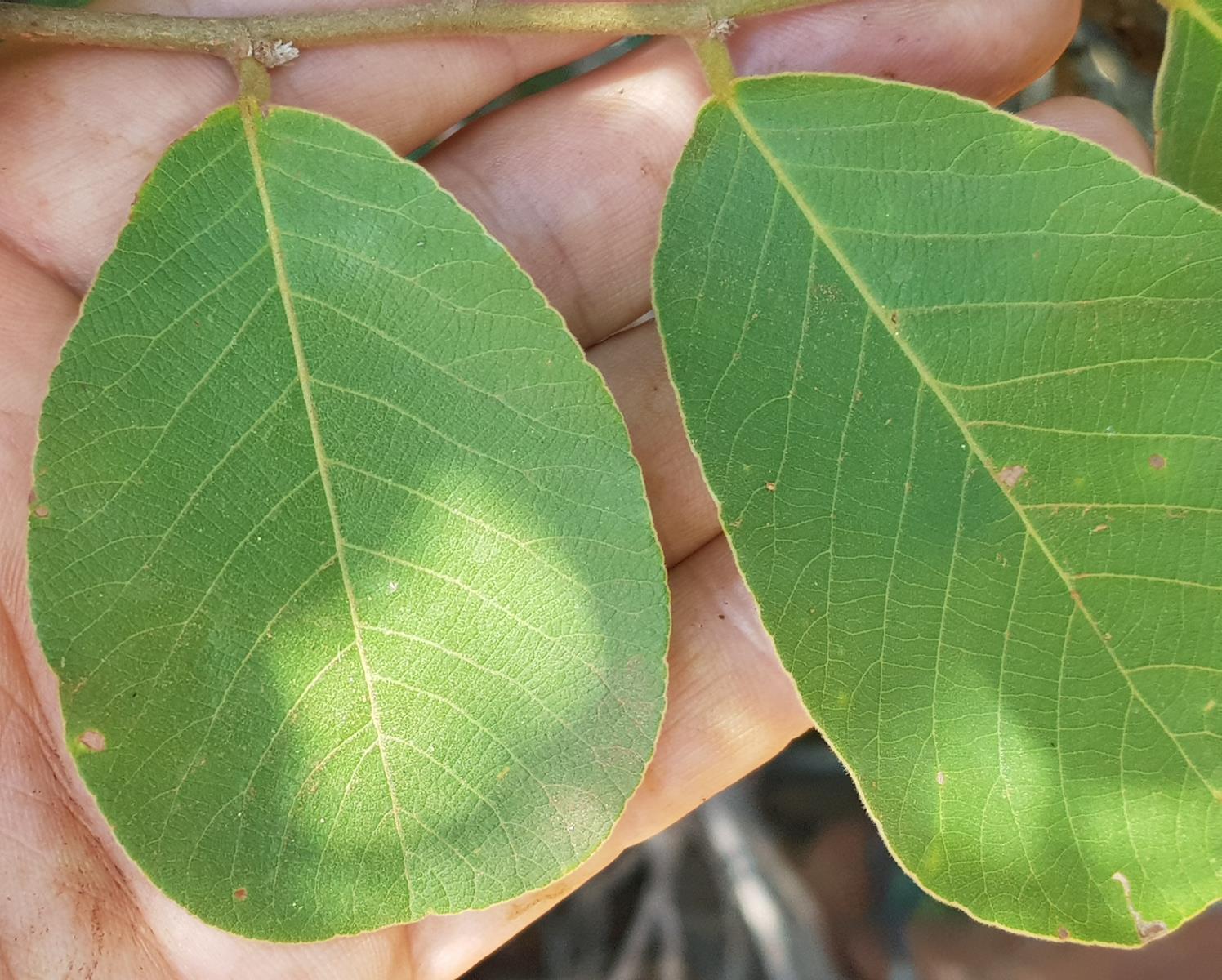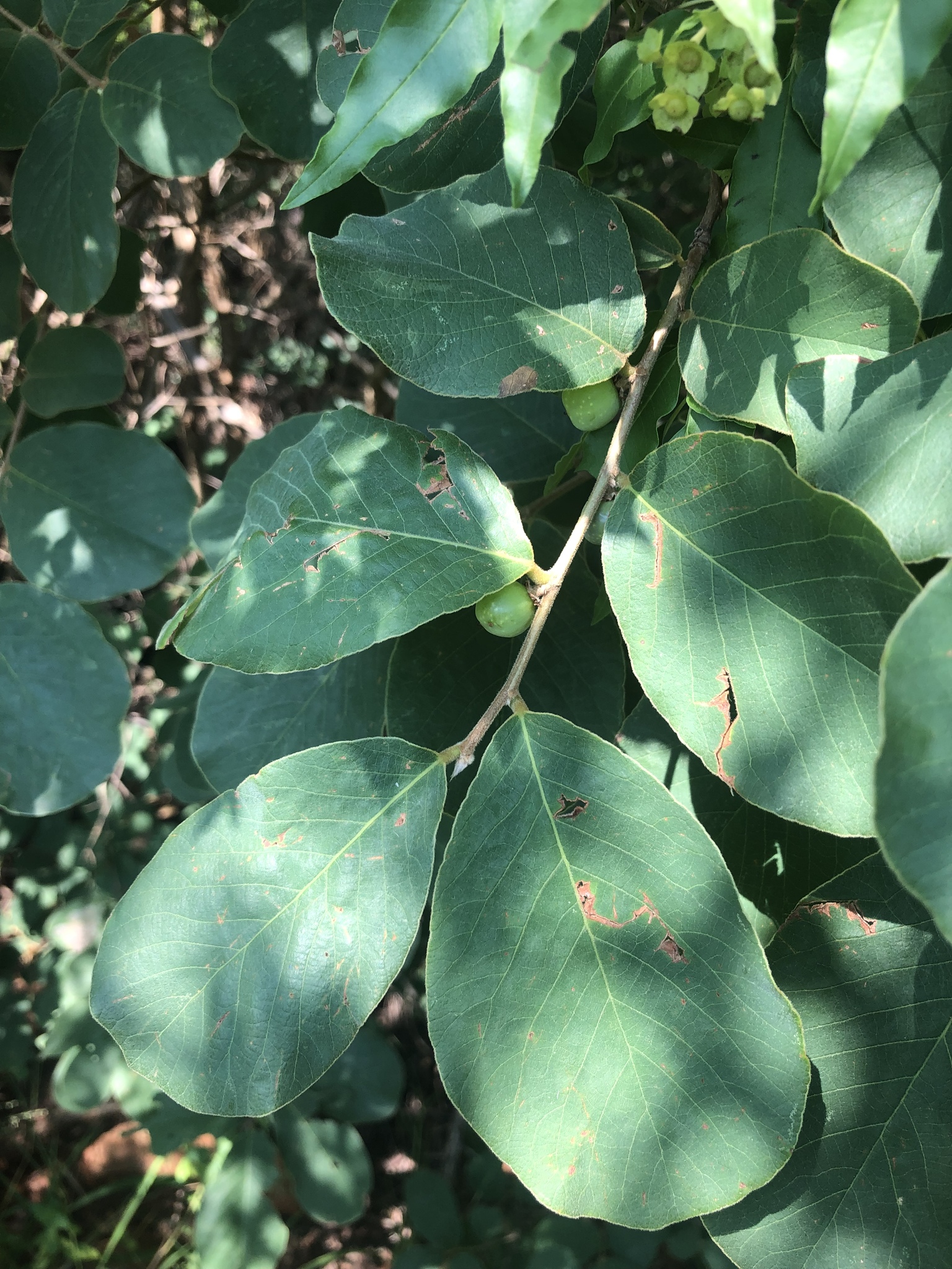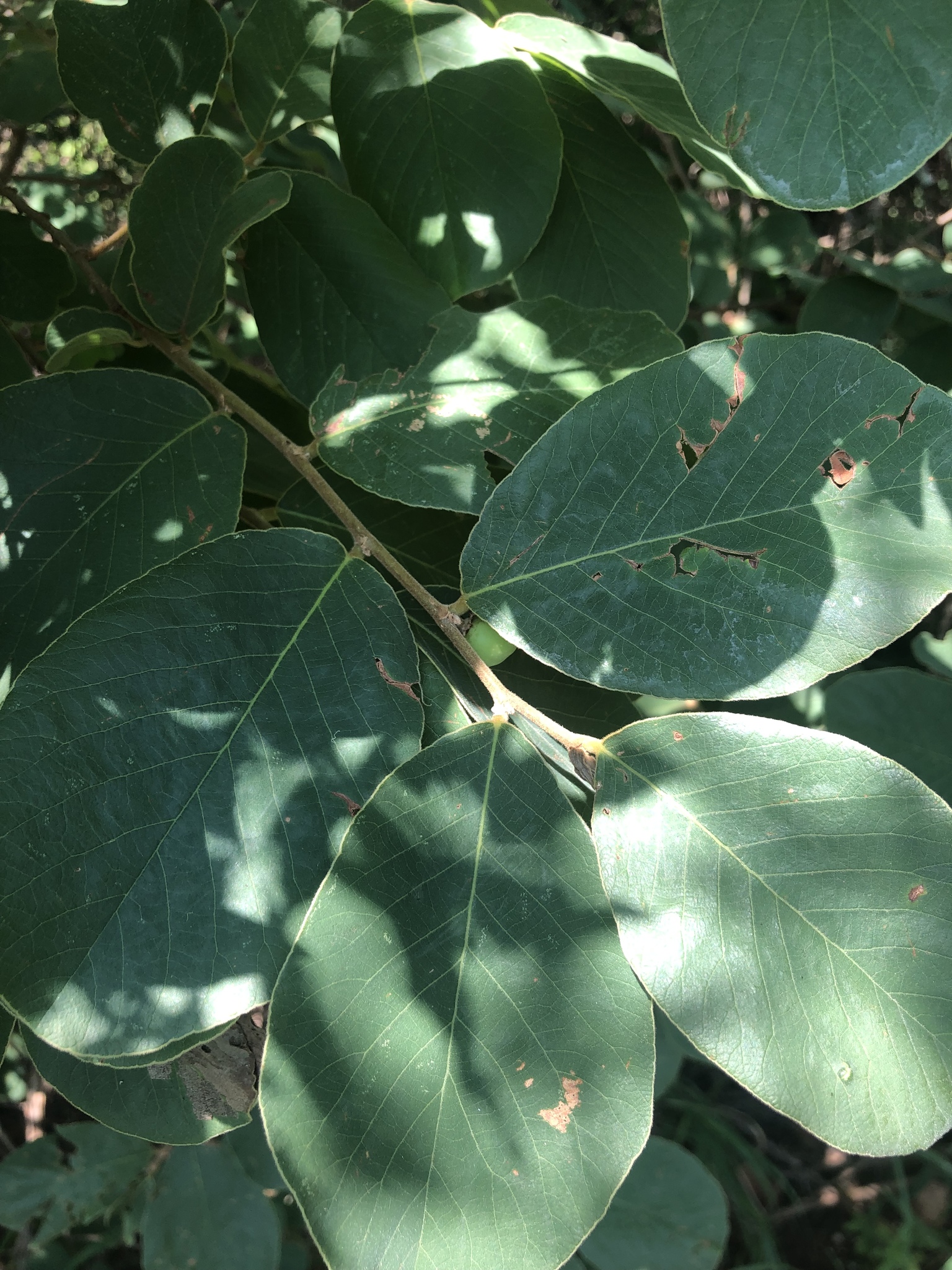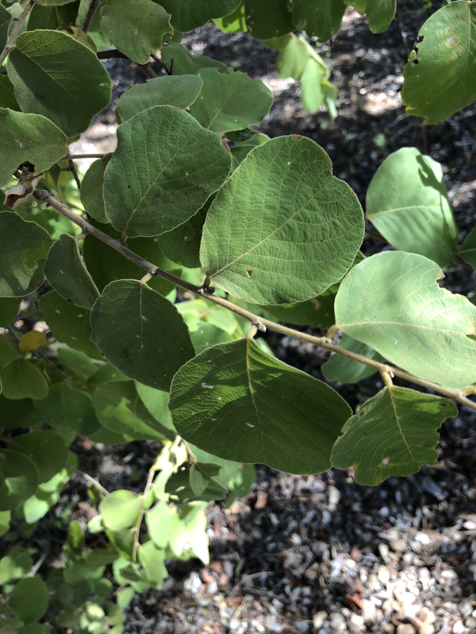 Shrub or small tree, up to 7 m high. Leaves ovate to obovate, 25-130 x 13-90 mm, apex broadly tapering and often notched, both leaf surfaces with dense velvety hairs, lateral veins terminating in margin. Flowers greenish yellow. From: Retief, E; Herman, PPJ. 1997. Plants of the northern provinces of South Africa: Keys and diagnostic characters. Strelitzia 6: 1-681. National Botanical Institute, Pretoria. [CC BY]