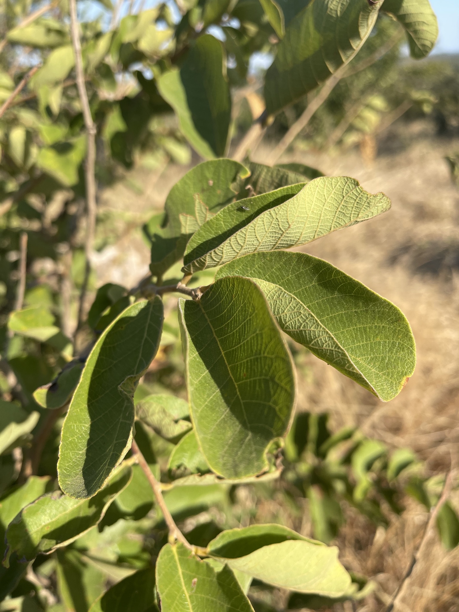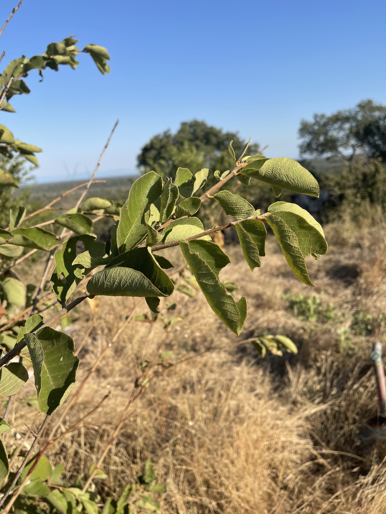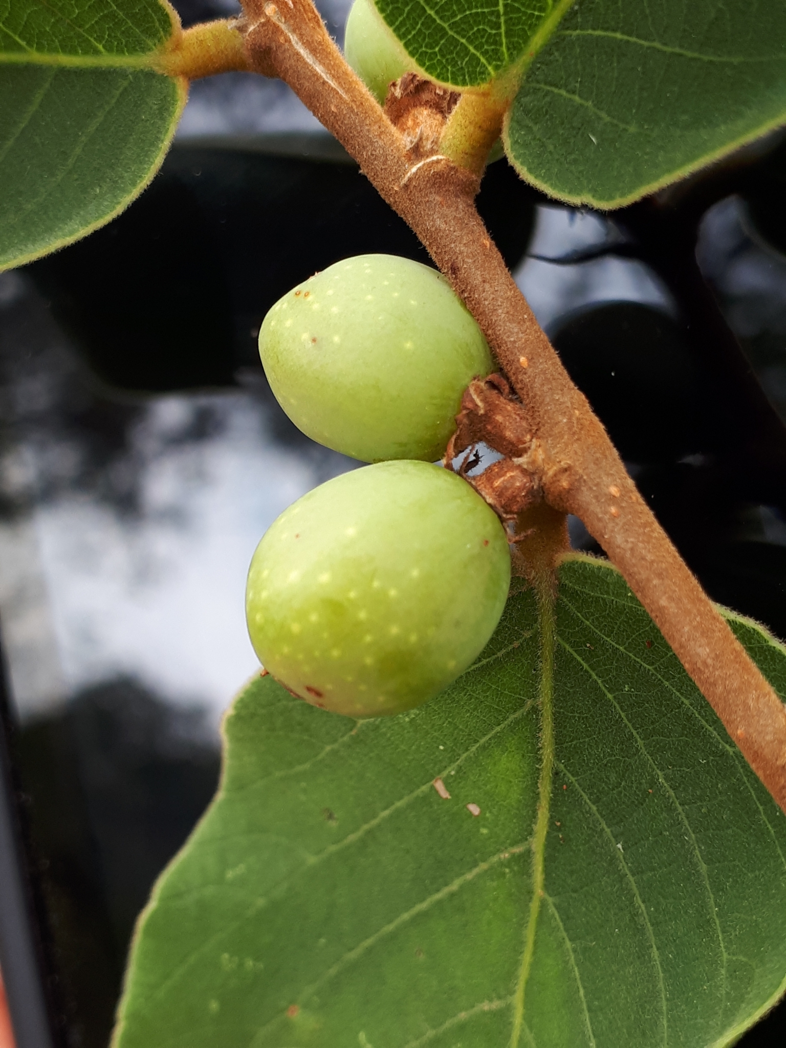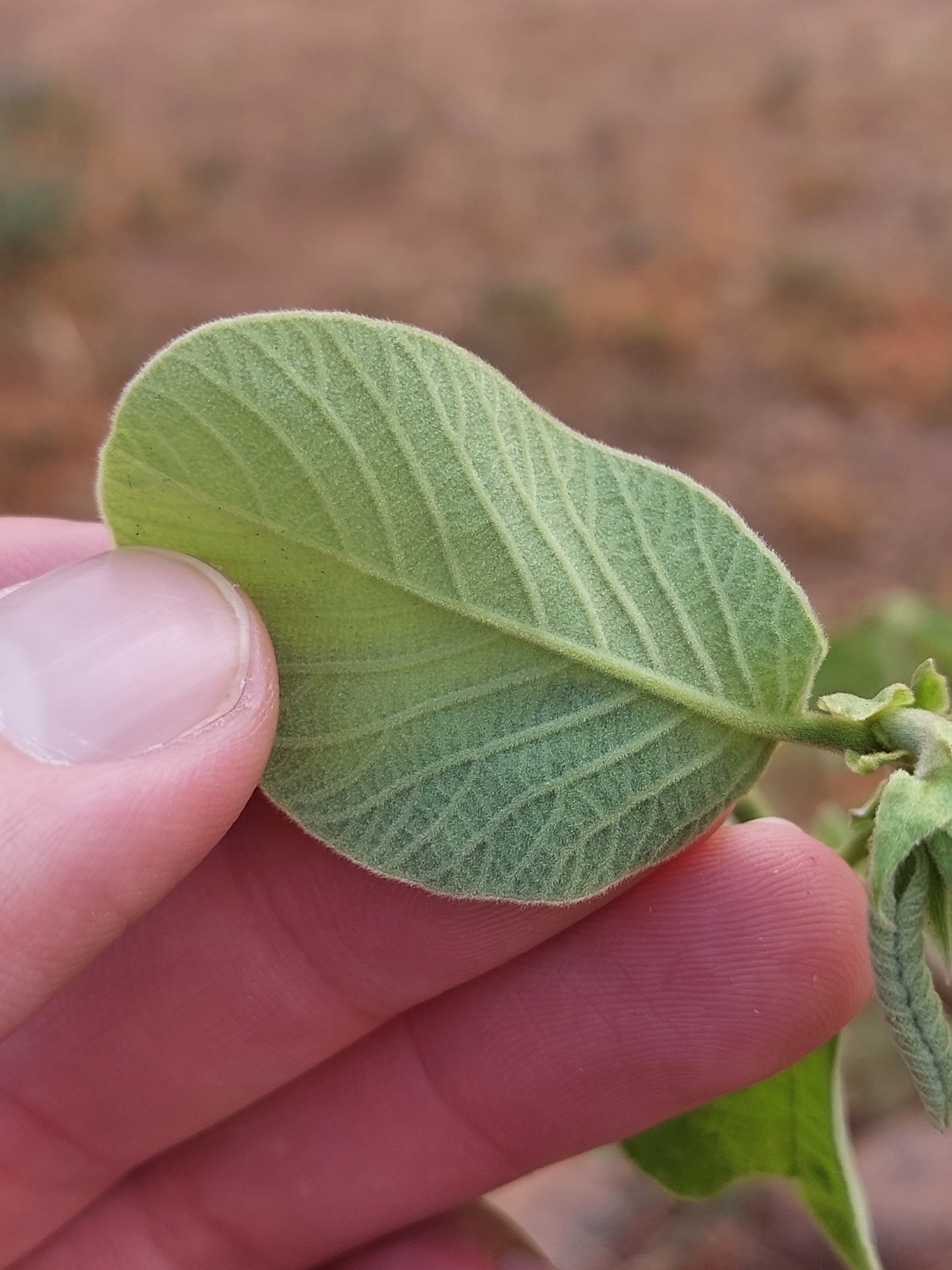 General notes: Woodland on sandy stony soil on bank of dry stream, in full sun. Moderate south-west slope. Small tree c. 3 m tall, with green fruit; 3 adhering stigmas at top of each fruit. Small and large leaves on the same tree. Occasional.