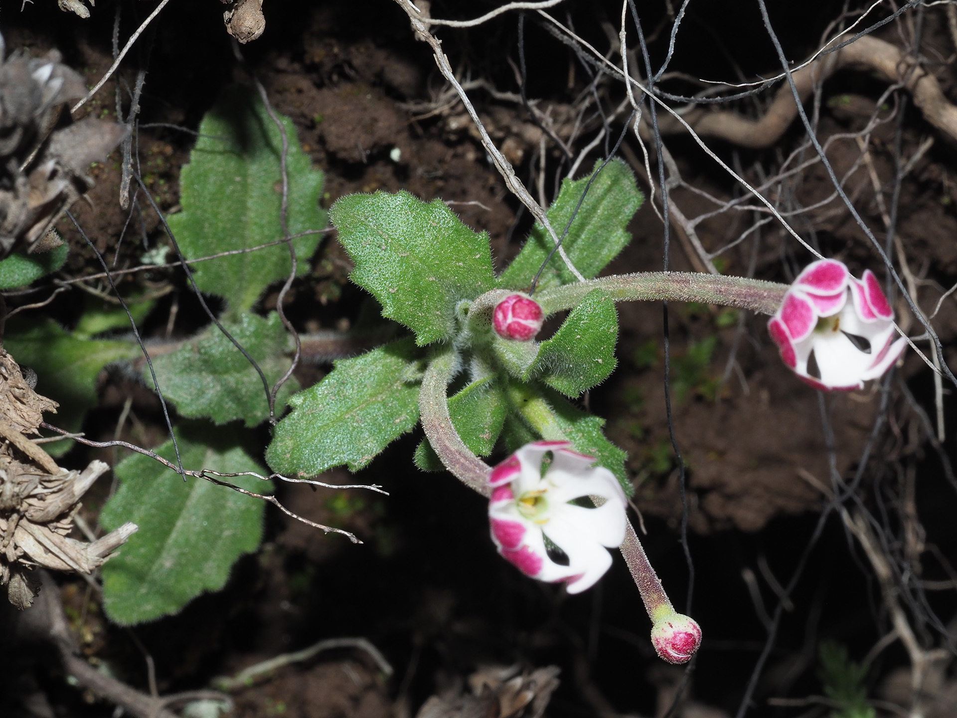 Twiggy shrublet to 45 cm, usually coarsely hairy. Leaves shaggy. Flowers few in spikes, tube 30-60 mm long, lobes deeply notched, white inside (sometimes orange in centre) and red outside, opening at dusk, stamens 4. From: Manning, JC; Goldblatt, P. 2012. Scrophulariaceae: Zaluzianskya F.W.Schmidt. In: J Manning & P Goldblatt (eds), Plants of the Greater Cape Floristic Region 1: The Core Cape flora. Strelitzia 29: 762-763. South African National Biodiversity Institute, Pretoria. [CC BY]