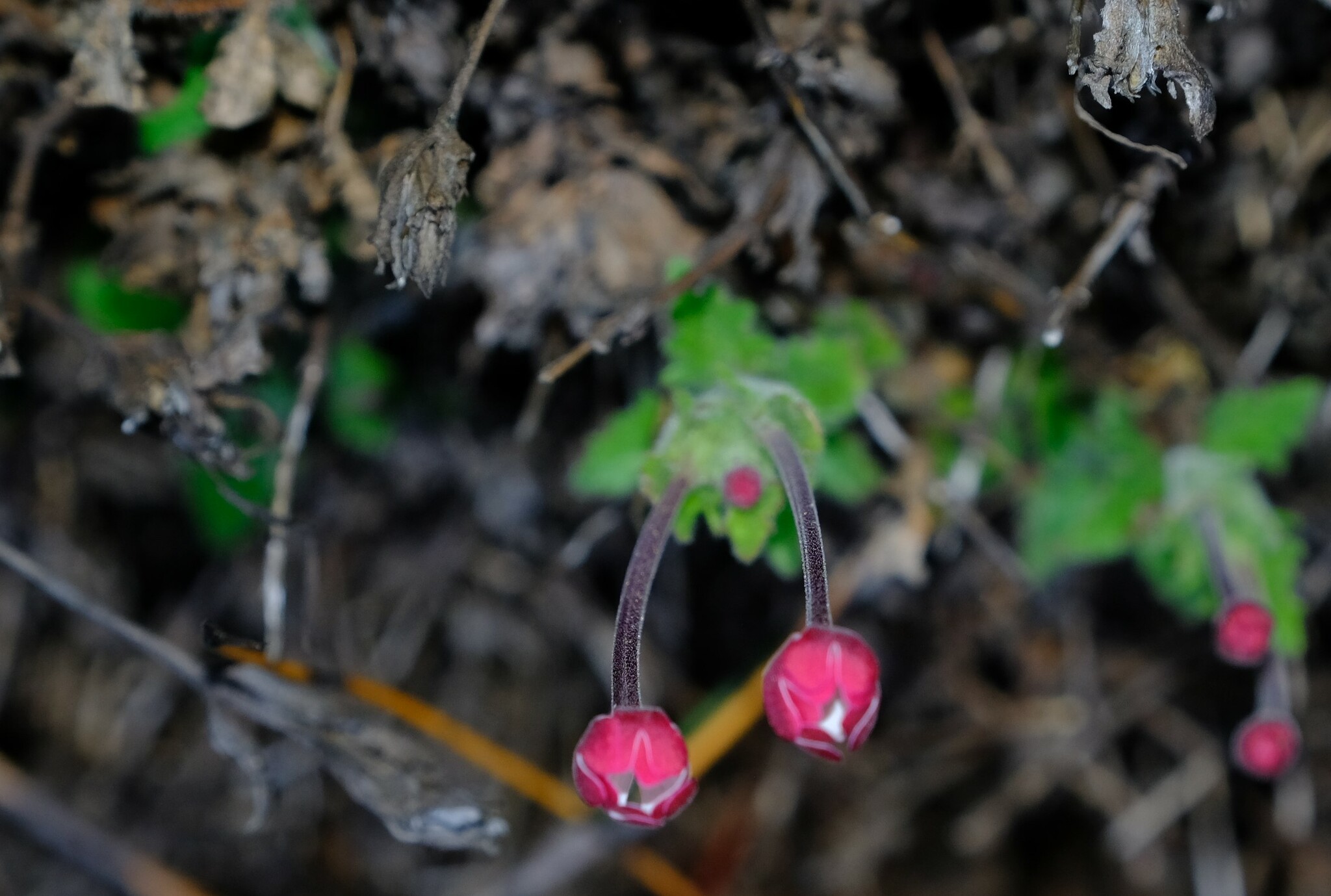 General notes: Well drained grassland, soil, sand, dolerite, Shade, South Eastern aspect, very steep slope, recently burnt, tucked under a rock. Maroon/white flowers.