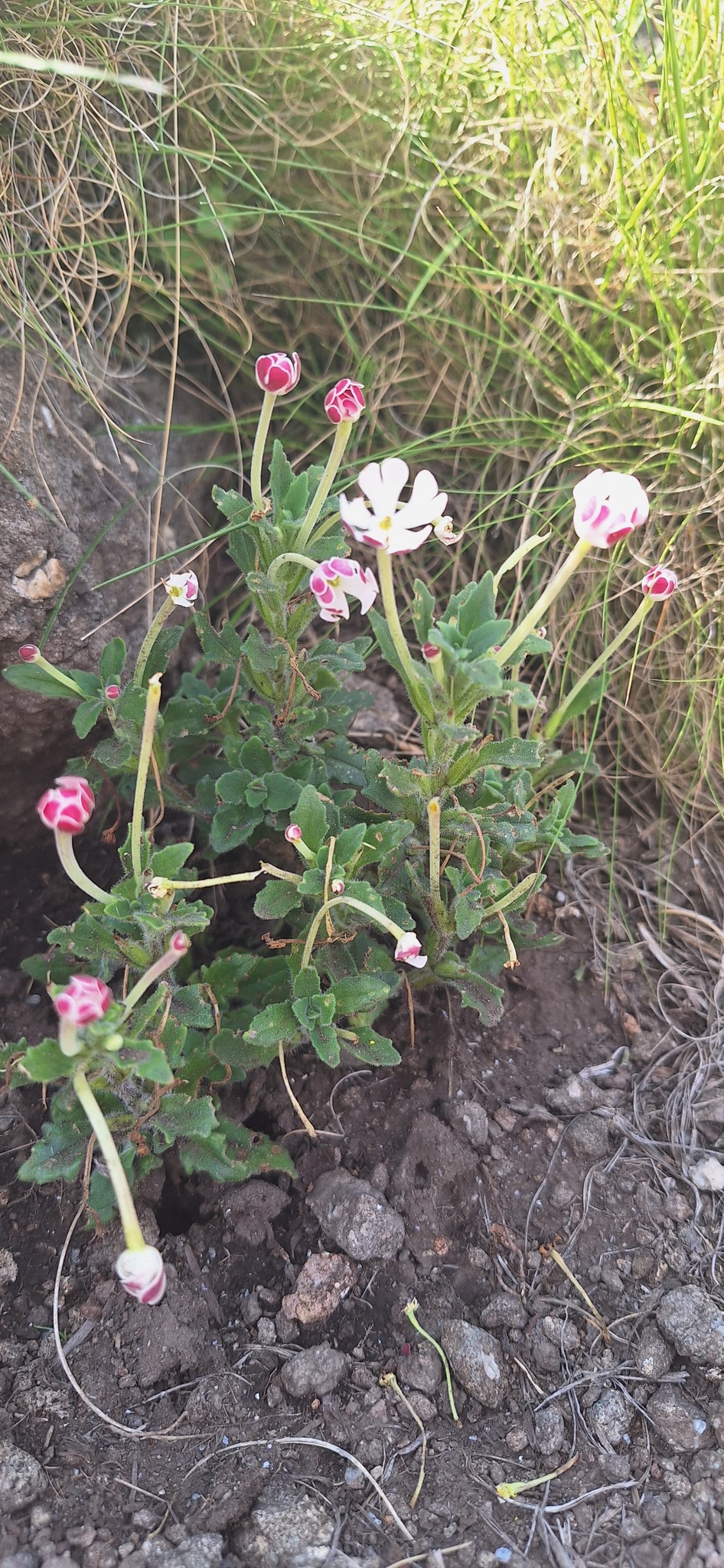 General notes: Sub Alpine. Humic-turf soil on streambank. Drakensberg(Basalt). Partial shade. Aspect: East. Steep slope. Disturbed - not badly grazed. Herb 0,15m high. Flowers pink outside, white inside. Occasional.