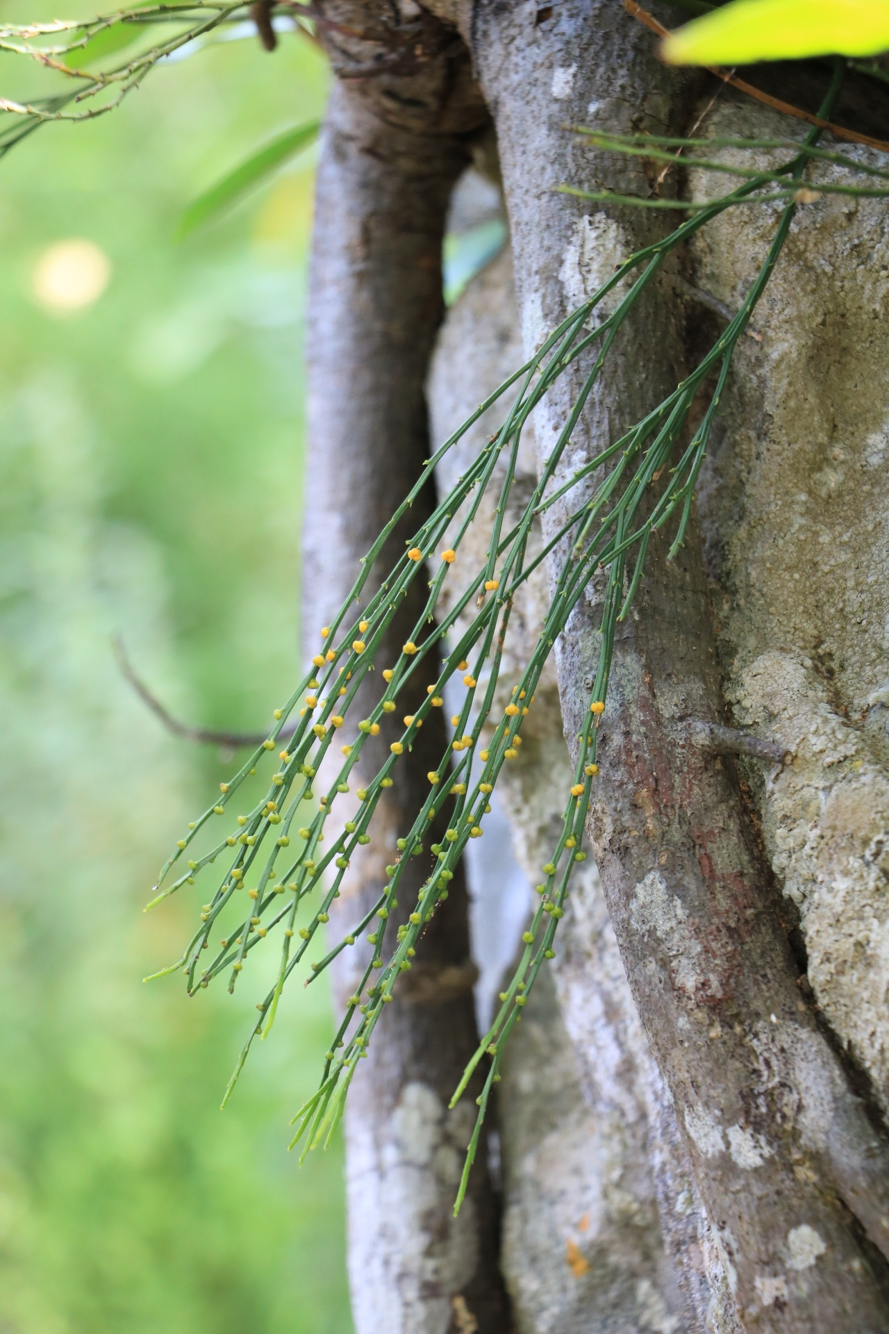General notes: Vegetation type: swamp forest. Substrate: tree stem. Slope: level. Other: on large On large horizontal branch of Ficus trichopoda. Plant locally common.