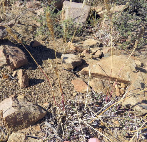 Kalahari Deciduous Acacia-wooded Grassland; Dry Grassland; Mesic Grassland; Dwarf Karroid Shrubland; Zastron Moist Grassland. Open veld; on a variety of soil types. From: Retief, E; Meyer, NL. 2017. Poaceae. In: E Retief & NL Meyer (eds), Plants of the Free State: Inventory and identification guide. Strelitzia 38: 987-1107. South African National Biodiversity Institute, Pretoria. [CC BY]