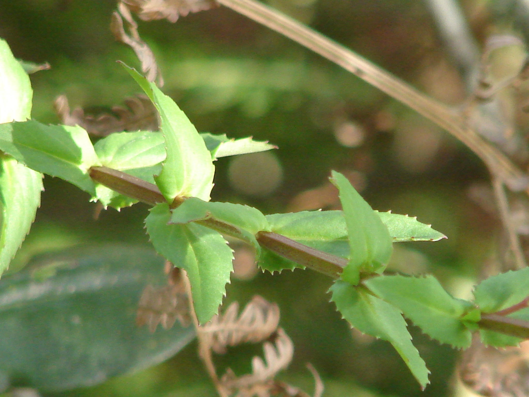 General notes: Valley thicket. Moderate slope. 1 - 1.5 m tall. Flowers borne on long spike - 2 horns underneath. Leaves alternate, margins toothed.