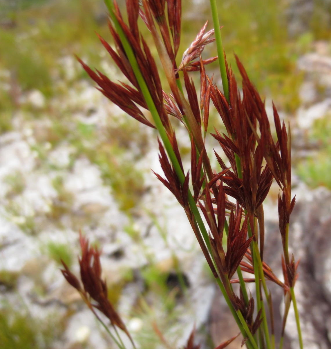 General notes: Alt.110 m. A scattered restio. Flower heads browny/gold, shiny. About 60 cm tall, with fine vegetative material.