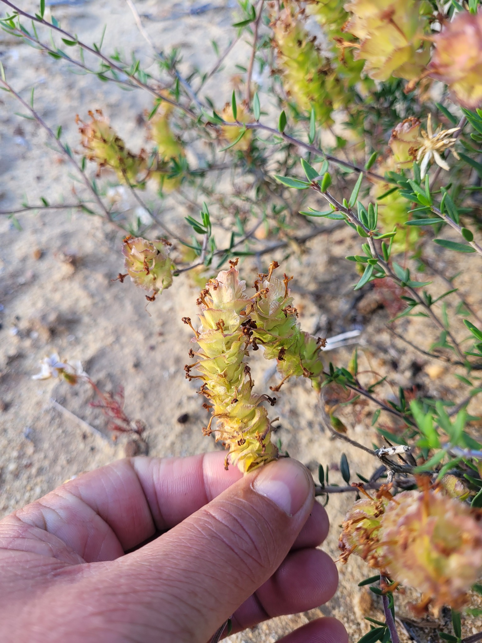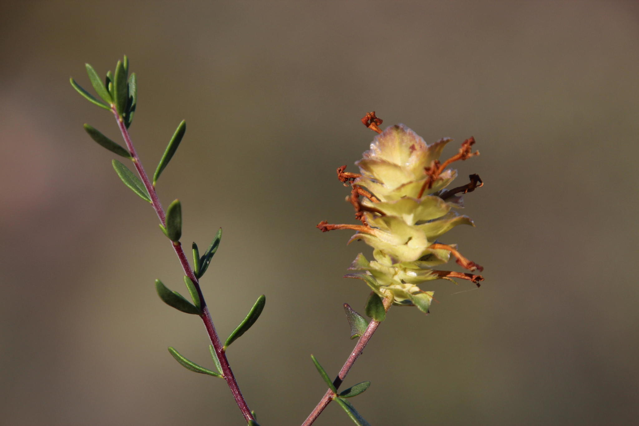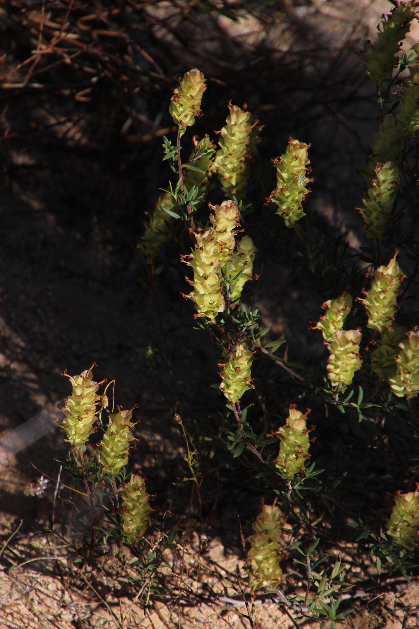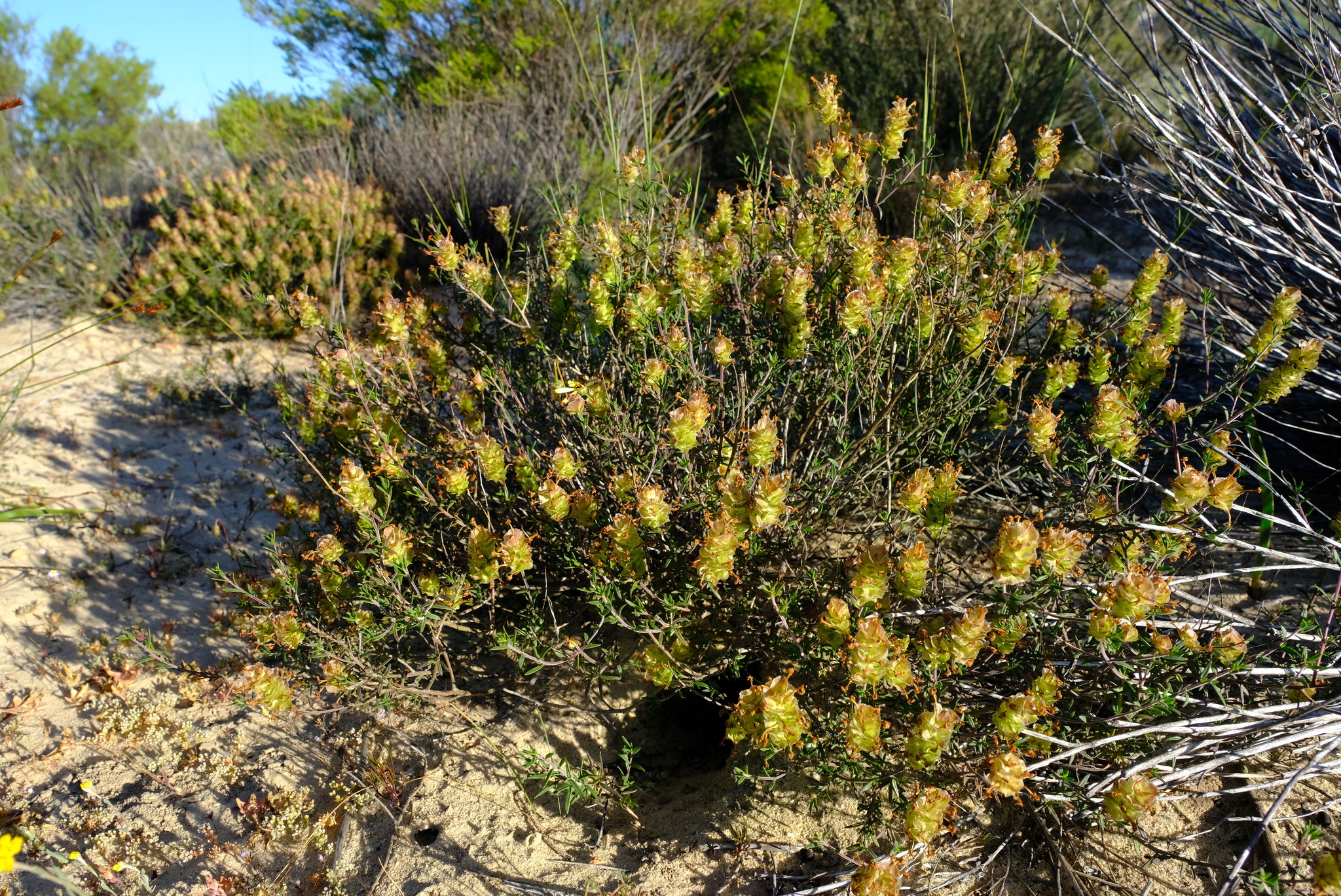 Twiggy shrublet to 30 cm. Leaves narrowly elliptic, bracts large, rounded, papery. Flowers in dense, ovoid heads, white. From: Manning, JC; Goldblatt, P. 2012. Scrophulariaceae: Microdon Choisy. In: J Manning & P Goldblatt (eds), Plants of the Greater Cape Floristic Region 1: The Core Cape flora. Strelitzia 29: 747-748. South African National Biodiversity Institute, Pretoria. [CC BY]